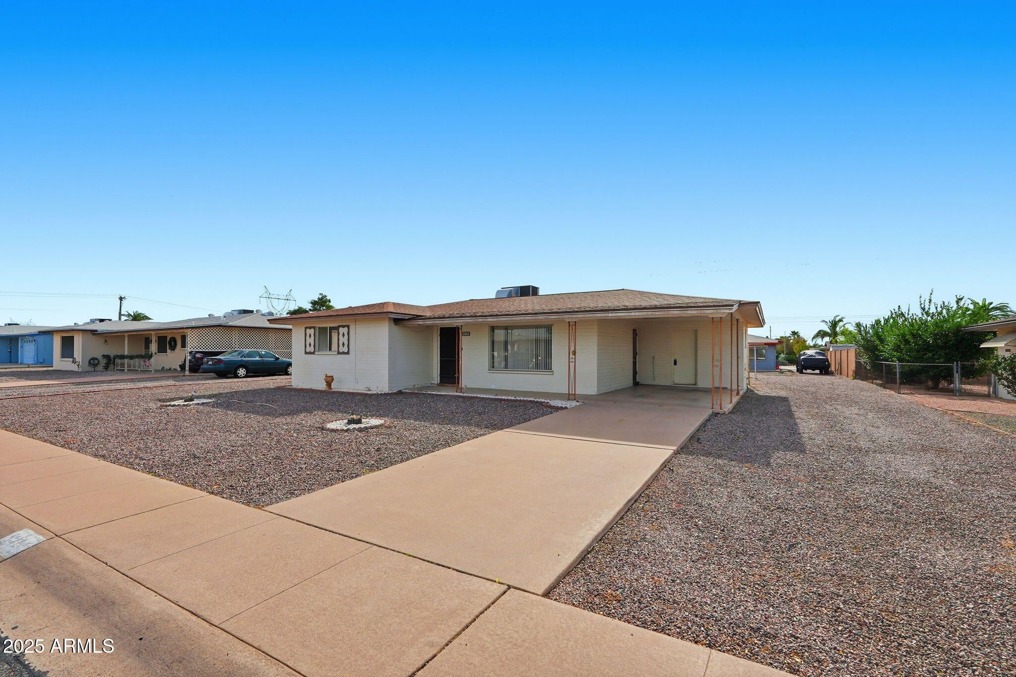 This inviting 2 bed, 2 bath home is nestled within the 55+ community of Dreamland Villas and offers a comfortable layout with great potential. The main living areas feature an open easy flow, creating a relaxed space for everyday living. One bedroom includes an en-suite bath, while the second bedroom is ideal for guests, a hobby room, or home office. The home has a classic, lived-in charm and has great potential & newer Roof/HVAC. Low-maintenance front and back yards provide outdoor space without the upkeep, perfect for enjoying Arizona's sunshine. Dreamland Villas offers an optional recreation fee, allowing residents to enjoy amenities including 3 pools, 2 spas, pickle & bocce ball, workout room, exercise classes and so much more.