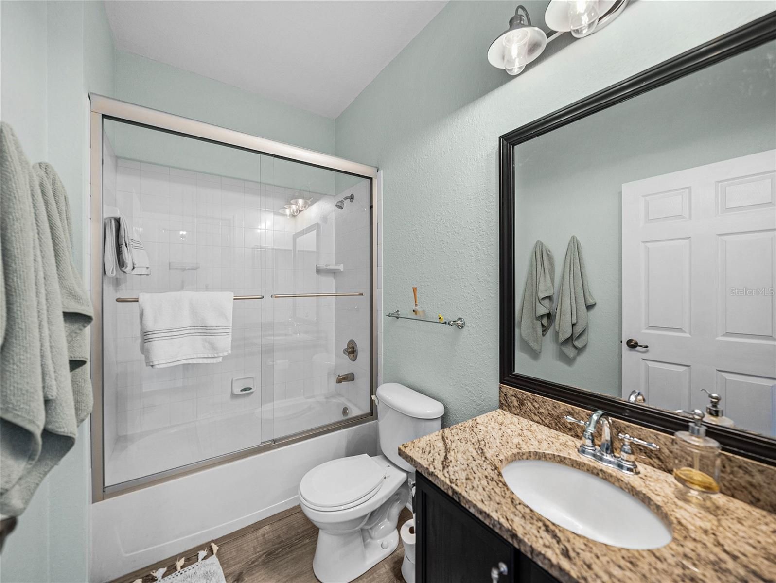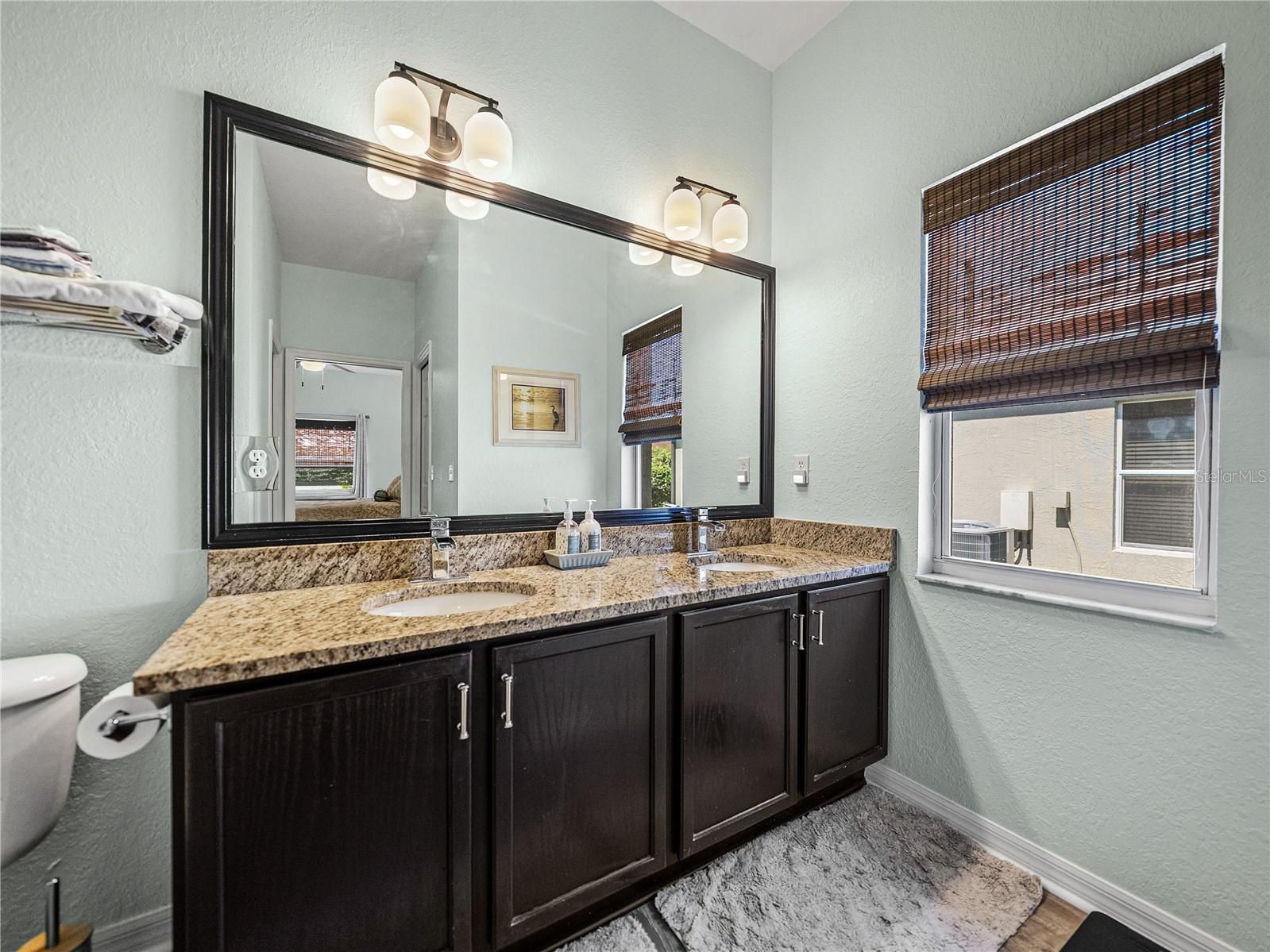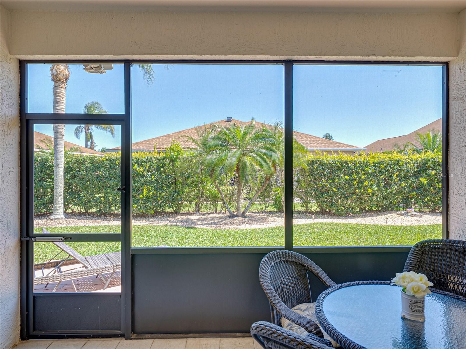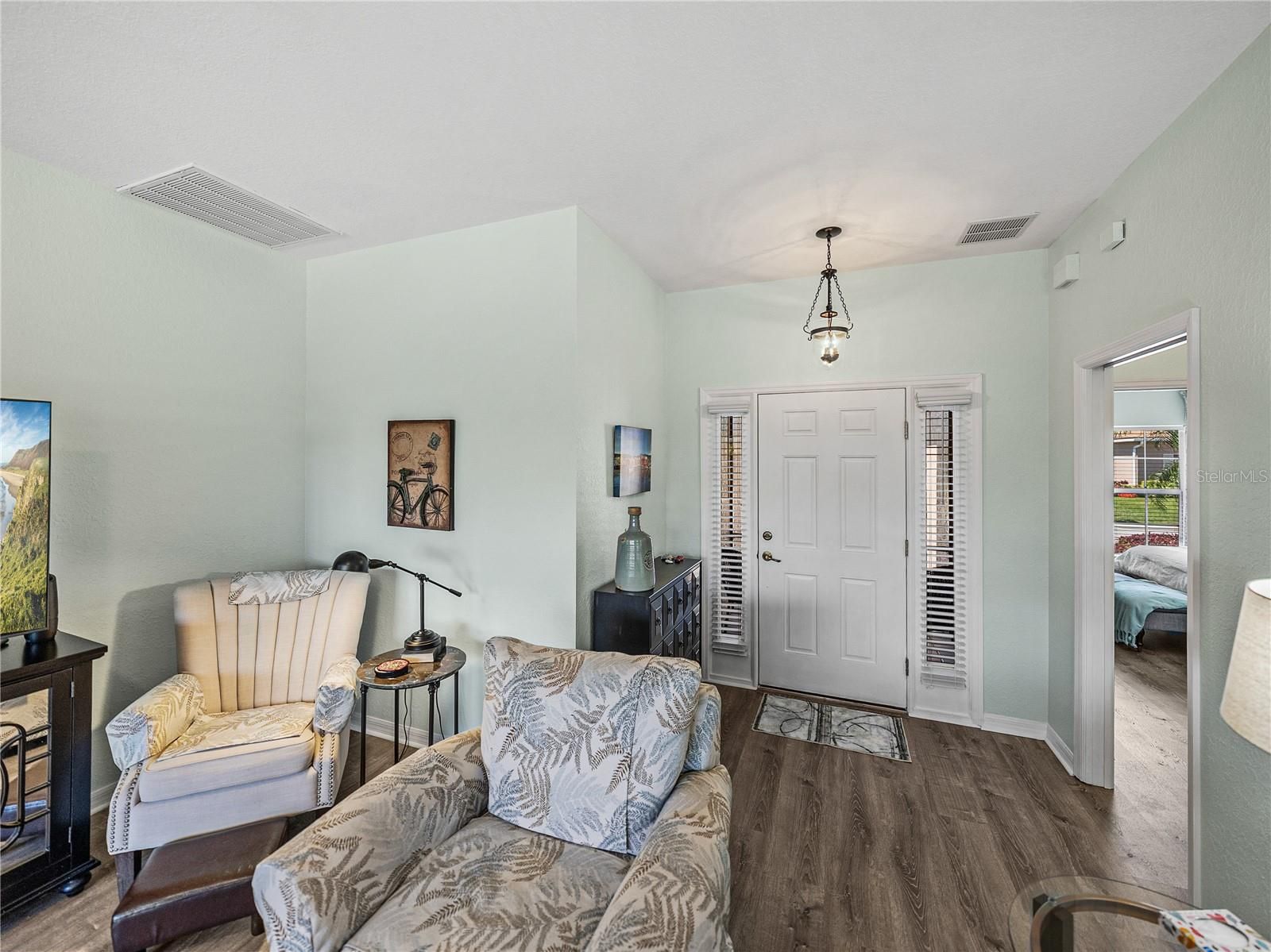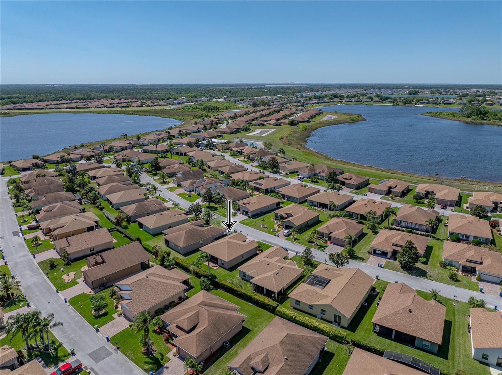 Pride of ownership is evident in this well-maintained "snowbird" owned Caribbean floor plan home. The curb appeal comes from the quality landscaping, which includes tasteful plantings, palms, and a paver walk and drive. All the landscaping is "watered" by an automatic irrigation system. The home has many special features and recent upgrades that frees up the new owners. The roof was replaced in 2023. The water heater was replaced in January 2025. The air conditioning system was totally replaced in 2022. New flooring was installed in 2021. The entire interior was repainted in 2021. The primary bath was remodeled in 2022. It just doesn't get any better. Walking up the wide paver walk to the front door, the screened and covered front entry provides both an additional area to enjoy the great Florida weather while also adding a layer of security. The screened front entry also makes cross ventilation a breeze. Upon entering, one notices that the welcoming foyer gets great natural light from the sidelights on the front door. Also evident is that this most efficient floor plan makes this home seem much larger than its stated square footage. The living room is the central focal point of this home. The north wing holds the guest and primary bedroom suites. The south wing has the garage, kitchen, and dining room. The living room has a designer rotating double fan with light. The triple slider at the end of the living room opens to the covered and screened lanai. The lanai has a ceiling fan with light and ceramic tile flooring. Just outside the lanai is a large paver open patio that looks out to an ample backyard bordered by a privacy hedge. Having options for enjoying the outdoors is always a plus. The kitchen features high quality stainless steel appliance, granite counter tops, crown molding on wood cabinetry, a snack bar, and a closet pantry. Also in the kitchen is the laundry closet. The washer and dryer stay for the new owners. Adjacent to the kitchen is the dining room which has plenty of space for your dining room furniture. Having both a dining room and a snack bar gives options for dining. The dining room also has a double slider that opens to the covered and screened lanai. The attached 2 car garage is accessed from the kitchen and features an opener and painted floor. The guest suite is at the front of the home and can be isolated from the rest of the home by using the handy pocket door. The large guest bedroom has a ceiling fan with light and a large reach-in closet. The short hallway from the bedroom holds the linen closet and the guest bath. The guest bath has a combination tub and shower with a glass shower door and ceramic tile surround. The wood vanity has a granite counter top. The primary suite is at the rear of the home and features a large bedroom with enough space for your bedroom furniture. The primary bedroom has a ceiling fan with light and a large window area. There is also a hallway that connects it to the primary bath. This hallway is home to 2 walk-in closets. The primary bath was remodeled 2022 and features a wood vanity with a granite counter top with 2 sinks, an elongated stool, stall shower with ceramic tile surround, a corner seat and glass shower door. This is the perfect home at a great price which gives the owner access to all of Lake Ashton's many amenities and outstanding resort style living lifestyle. Why not enjoy the good life. Some of the furnishing are available in the ready to move-in, must see home.