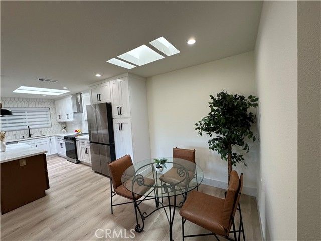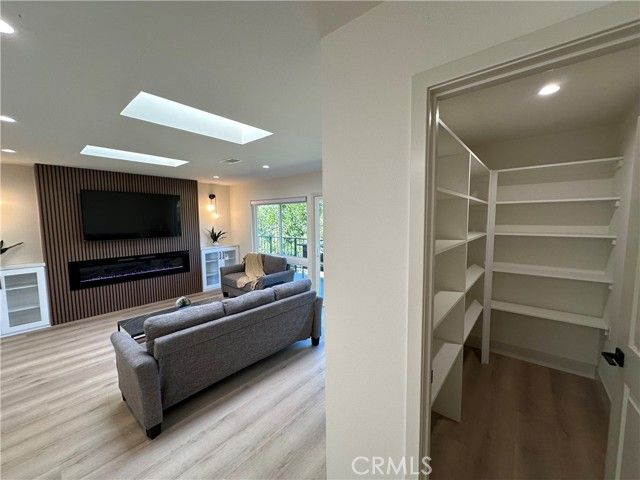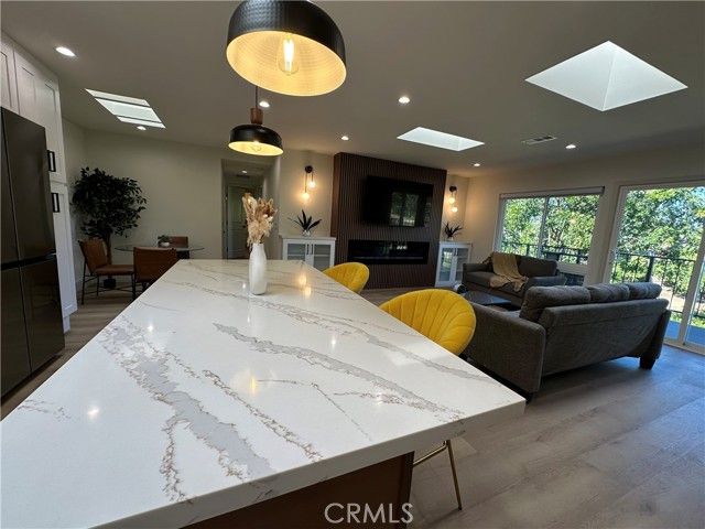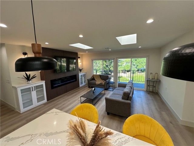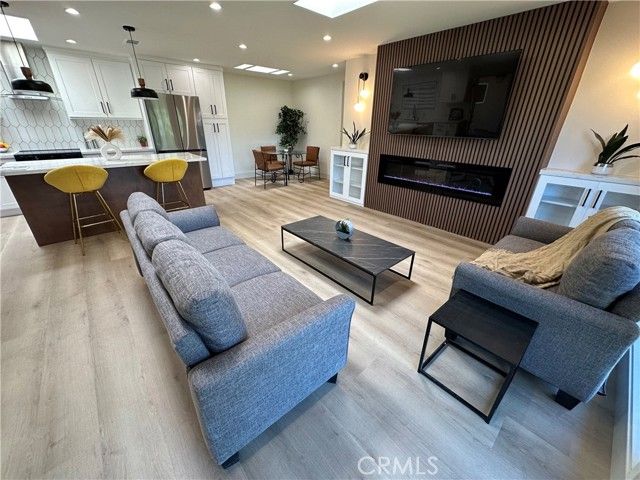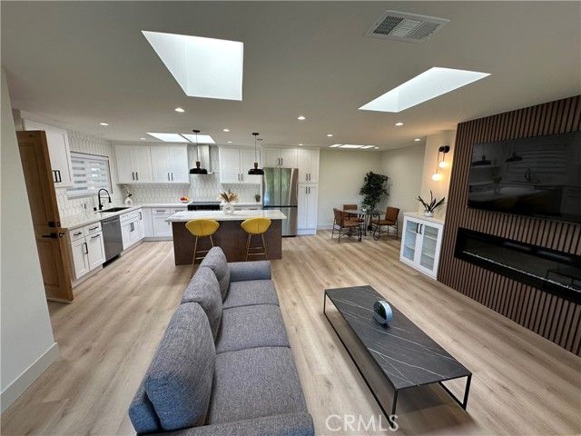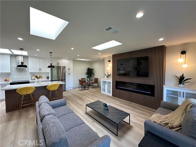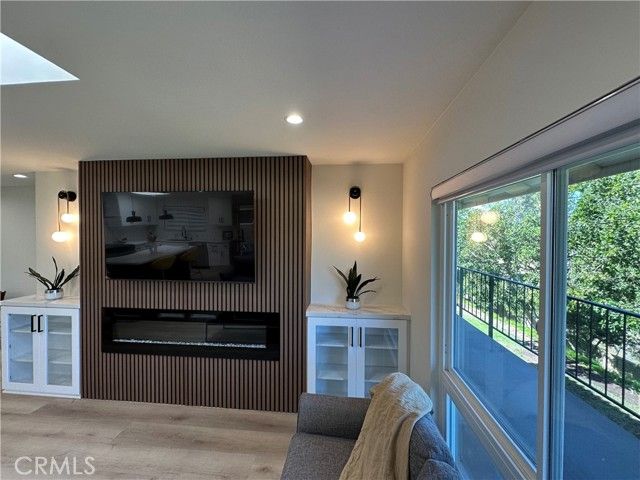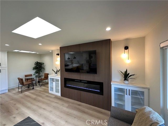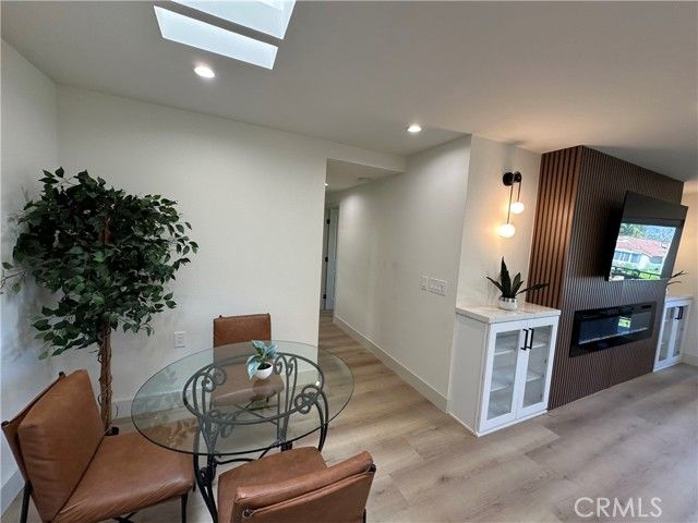 This Casa Vista Stunner has been tastefully remodeled to modern expectations with an open floor plan featuring multiple skylights in kitchen, dining and living room with fantastic privacy in the rear balcony. Enjoy warm summer evenings and cool ocean breezes from your balcony which offers some views of the surrounding hills and treetops. This home is also equipped with an HVAC system to keep you cool in the summertime and warm during chilly winter months. No expense has been spared with new windows, sliders, LVP flooring, recessed lighting, remodeled kitchen and bathrooms as well as custom blinds for the bedrooms. A spacious walk-in-pantry closet has been added for convenience. Living room features a unique Slat styled wall with cable hookups ready to go, along with custom end cabinets and lighting on both sides with a new electric fireplace below. Master Bedroom is spacious and features direct access to the beautiful master bathroom suite and walk in closet. Both bathrooms have been completely remodeled into modern styled bathrooms featuring frameless glass shower doors, porcelain tiles, shaker cabinets, new sinks, faucets, quartz countertops, vanity lights, and mirrors. NO STAIRS OR STEPS from assigned carport nearby to front door. New solid wood front door with window for additional lighting and conveniently located walking distance to clubhouse 6 and just down the street from Gate 10 entrance. Come enjoy the incredible amenities Laguna Woods has to offer those seeking an Active living style or retirement with the security of a Gated Community. This street has really beautiful views of the surrounding hills, making it great for long walks. A very quiet part of Laguna Woods nestled in the corner of the community with not a lot of traffic. Laguna Woods Village is a Golfers Haven featuring 27-holes of championship golf. Residents are allowed to drive within the community in their golf carts as well. Other amenities include: 24-hour gated community with attendant, bus transportation, Equestrian center, 10-tennis court complex, pickle ball courts, Laguna Woods Village is close to beaches, shopping, restaurants, freeways, toll-roads, and medical facilities. Your monthly HOA includes water, trash, basic cable, landscaping, insurance and exterior building maintenance. Located only 6-7 miles from world class Laguna Beach and a couple miles from the fabulous Irvine Spectrum, this home and community are truly a special place to live!!