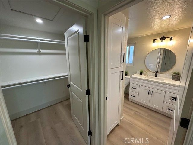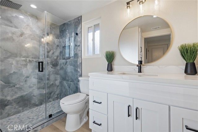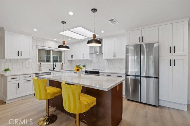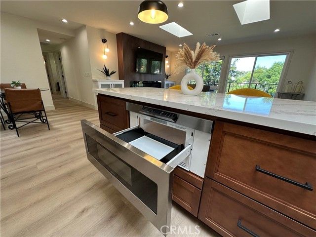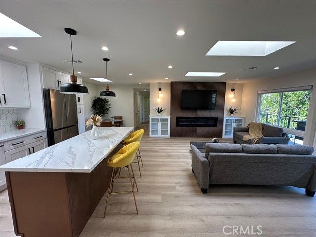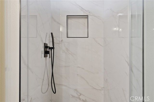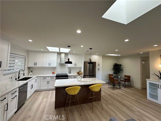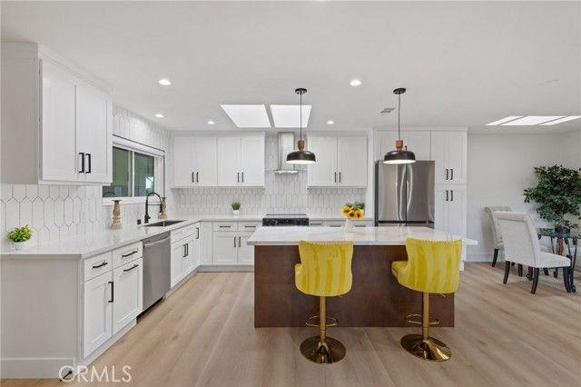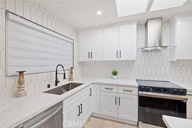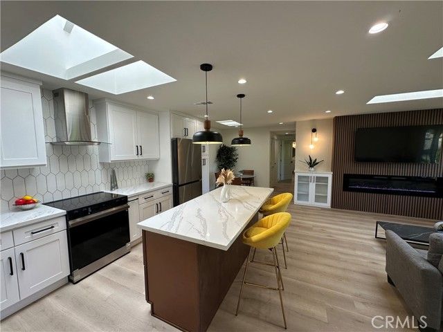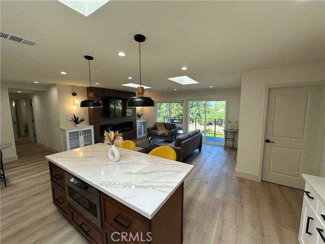 This Casa Vista Stunner has been tastefully remodeled to modern expectations with an open floor plan featuring multiple skylights in kitchen, dining and living room with fantastic privacy in the rear balcony. Enjoy warm summer evenings and cool ocean breezes from your balcony which offers some views of the surrounding hills and treetops. This home is also equipped with an HVAC system to keep you cool in the summertime and warm during chilly winter months. No expense has been spared with new windows, sliders, LVP flooring, recessed lighting, remodeled kitchen and bathrooms as well as custom blinds for the bedrooms. A spacious walk-in-pantry closet has been added for convenience. Living room features a unique Slat styled wall with cable hookups ready to go, along with custom end cabinets and lighting on both sides with a new electric fireplace below. Master Bedroom is spacious and features direct access to the beautiful master bathroom suite and walk in closet. Both bathrooms have been completely remodeled into modern styled bathrooms featuring frameless glass shower doors, porcelain tiles, shaker cabinets, new sinks, faucets, quartz countertops, vanity lights, and mirrors. NO STAIRS OR STEPS from assigned carport nearby to front door. New solid wood front door with window for additional lighting and conveniently located walking distance to clubhouse 6 and just down the street from Gate 10 entrance. Come enjoy the incredible amenities Laguna Woods has to offer those seeking an Active living style or retirement with the security of a Gated Community. This street has really beautiful views of the surrounding hills, making it great for long walks. A very quiet part of Laguna Woods nestled in the corner of the community with not a lot of traffic. Laguna Woods Village is a Golfers Haven featuring 27-holes of championship golf. Residents are allowed to drive within the community in their golf carts as well. Other amenities include: 24-hour gated community with attendant, bus transportation, Equestrian center, 10-tennis court complex, pickle ball courts, Laguna Woods Village is close to beaches, shopping, restaurants, freeways, toll-roads, and medical facilities. Your monthly HOA includes water, trash, basic cable, landscaping, insurance and exterior building maintenance. Located only 6-7 miles from world class Laguna Beach and a couple miles from the fabulous Irvine Spectrum, this home and community are truly a special place to live!!