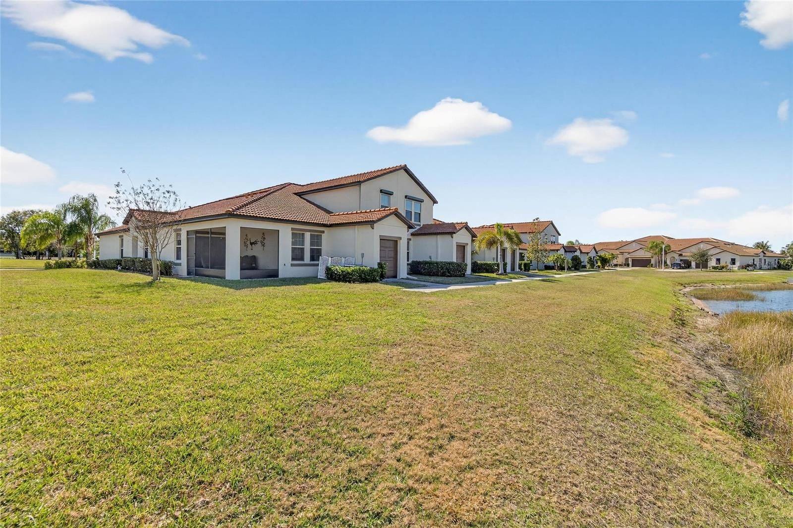 FABULOUS END UNIT ON THE WATER! WALK TO CLUBHOUSE AND LAGOON FROM THIS MOST DESIREABLE LOCATION! THIS VILLA LOOKS AND FEELS BRAND NEW! ONE CAR GARAGE PLUS A GOLF CART GARAGE! BEAUTIFUL UPGRADES INCLUDE MODERN LIGHT FIXTURES AND NEUTRAL BACKSPLASH! FLEX ROOM HAS DOORS AND A CLOSET AND IS A PERFECT THIRD BEDROOM! FANTASTIC VALUE FOR THE MONEY - BEST LOCATION IN THE COMMUNITY! MEDLEY AT SOUTHSHORE BAY IS A PRIVATE, GATED, 55+ FANTASTIC COMMUNITY WHERE YOU CAN DO AS MUCH OR AS LITTLE AS YOU WANT. THE RESORT STYLE CLUBHOUSE FEATURES A BALLROOM, GYM, CARD ROOMS, SHOWS AND ENTERTAINMENT. LIVE MUSIC, DJ AND KARAOKE PARTIES, PICKLE BALL, BOCCE BALL, A TROPICAL BEACH ENTRY POOL, INDOOR AND OUTDOOR DINING AND FULL BAR SERVICE! YOU CAN ALSO PARTICIPATE IN MANY CLUBS AND OUTINGS WITH YOUR NEIGHBORS. AS AN OWNER IN MEDLEY YOU ALSO ENJOY FULL MEMBERSHIP AT THE 5+ ACRE SOUTHSHORE BAY CRYSTAL LAGOON! IN ADDITION TO THE TOT SPLASH PAD, OBSTACLE COURSES AND SWIMMING, YOUR WHOLE FAMILY WILL HAVE A BLAST AT THE MOVIE NIGHTS, POKER NIGHTS, CIGAR NIGHTS, DANCE PARTIES, FULL BAR, SWIM UP BAR, FOOD TRUCKS, FIREWORKS DISPLAYS, HOLIDAY CELEBRATIONS AND GOLF CART PARADES! ISN'T THIS WHY YOU MOVED TO FLORIDA? ALL DIMENSIONS APPROXIMATE. ALL INFORMATION CONTAINED HEREIN DEEMED ACCURATE BUT SUBJECT TO BUYER VERIFICATION. ONE TIME $2150 CAPITAL CONTRIBUTION DUE FROM BUYER AT CLOSING.