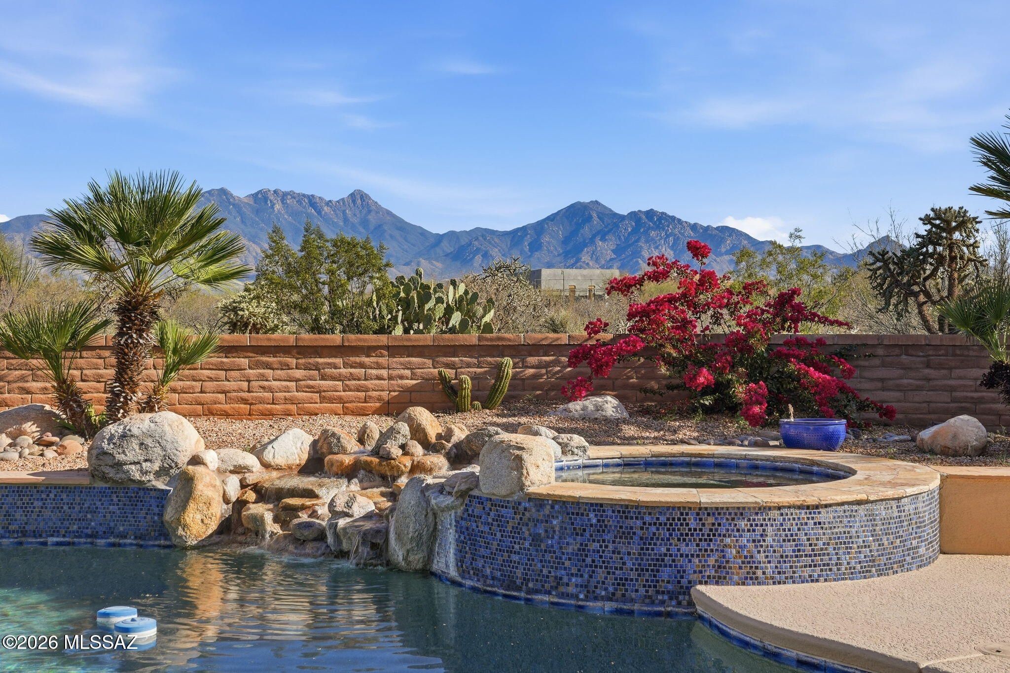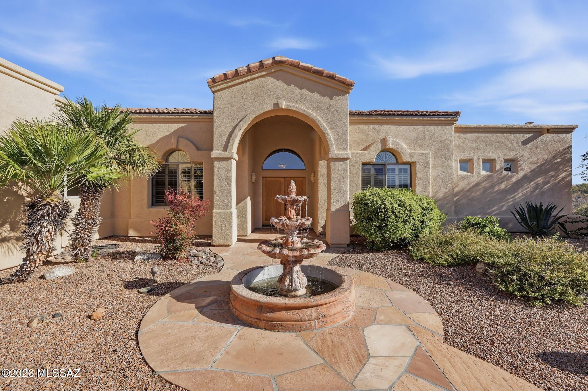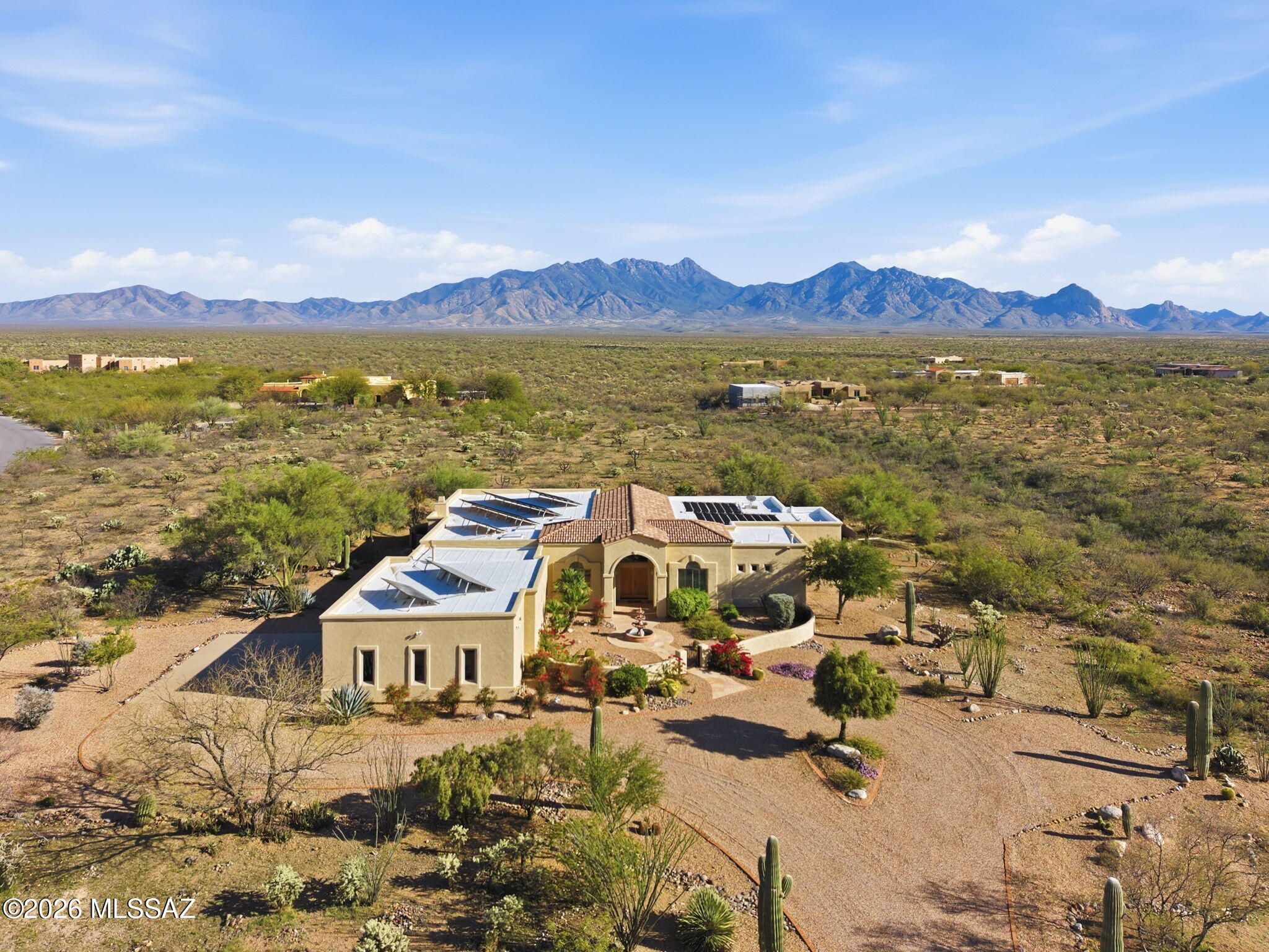 Framed by the breathtaking Santa Rita Mountains, this exceptional custom Dorn-built home in Pasadera sits on 4.14 private acres, offering sweeping desert views & refined Arizona living. A charming enclosed front courtyard with a decorative fountain welcomes you, setting the tone for the tranquility found throughout the property. The backyard is designed as a private desert retreat with a gas-heated pool & spa featuring a double waterfall, expansive Kool decking, a built-in BBQ, & a gas fire pit--perfect for entertaining while enjoying spectacular mountain sunsets. Inside, the home blends comfort & elegance. The gourmet kitchen features granite countertops, abundant custom cabinetry, double ovens, trash compactor, & under cabinet lighting. The adjoining family/game room is an entertainer's