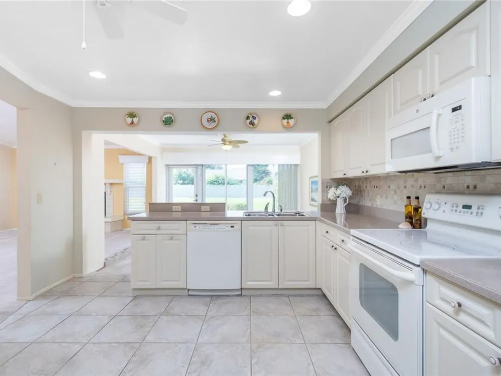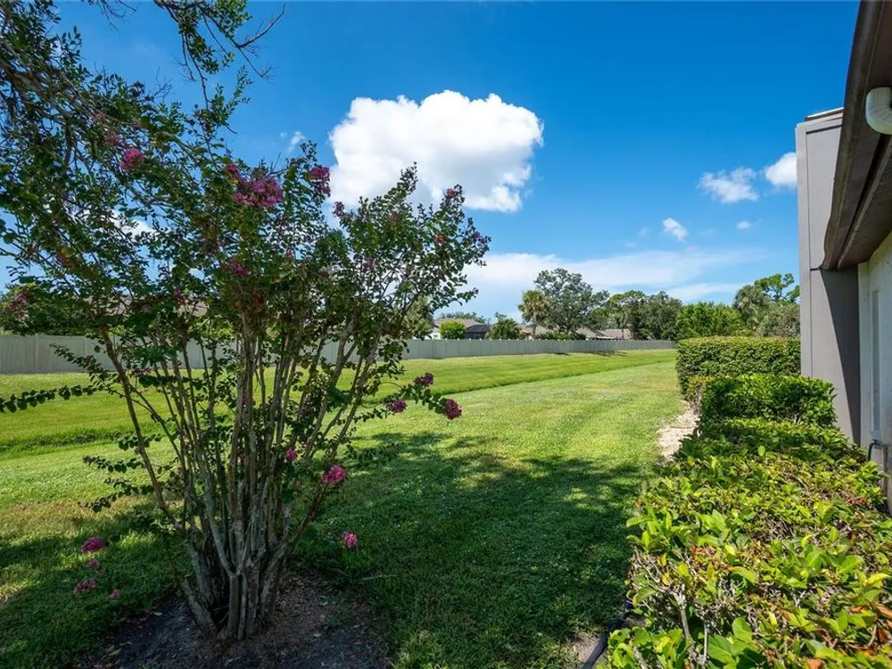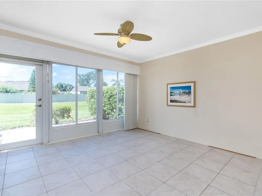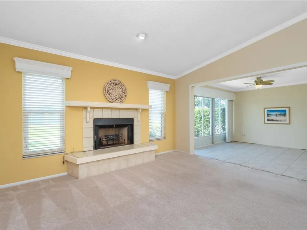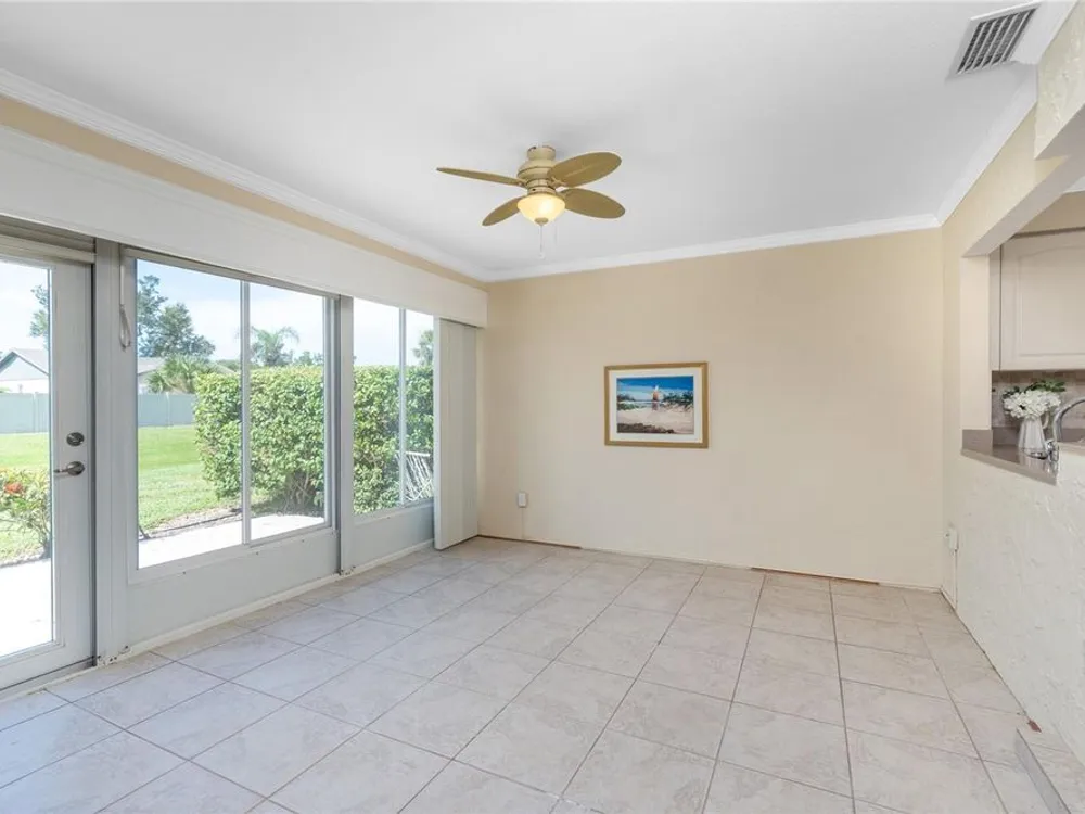 Experience the ease of maintenance-free living in the friendly 55+ golf cart friendly community of Foxwood, where this move-in-ready two bedroom, two bath attached villa is waiting for you. Set in an X flood zone with impact windows and lush tropical landscaping, this home offers peaceful rear greenbelt views. Inside, the great room features vaulted ceilings and a cozy fireplace, creating a bright and welcoming space, while the kitchen offers tile flooring, plenty of cabinetry with pull-out shelves, Corian countertops, a tile backsplash, and a reach-in pantry. The open layout connects the eat-in kitchen to the great room, and the air conditioned Florida room has been opened to provide even more living space with large windows and French doors leading to the patio. The master suite includes a walk-in closet and an ensuite bath with a fully tiled walk-in shower, while the guest bedroom offers a roomy reach-in closet and the guest bath features a tub and shower combination. Start your mornings with coffee on the open-air back patio or your afternoons with a glass of wine and a good book. Crown molding in the main living areas, kitchen, and primary bedroom add a touch of luxury to the interior. Foxwood offers an impressive array of amenities designed for both relaxation and recreation, including tennis courts, shuffleboard, a sparkling pool, spa, and a clubhouse that hosts a variety of activities and social events throughout the year. The association takes care of the details so you can focus on enjoying life, covering lawn care, irrigation, reserves, exterior painting, roof maintenance, pool and spa upkeep, shuffleboard and tennis facilities, bocce ball, clubhouse maintenance, private roads, lake care, cable, exterior pest control, and more. Beyond the gates, you are just minutes from championship golf courses, pristine Gulf beaches, and Historic Dearborn Street, where you can enjoy charming shops, local dining, a weekly farmer’s market, and live entertainmentSchedule your showing today at 533 Foxwood Blvd and discover the relaxed lifestyle you’ve been looking for.