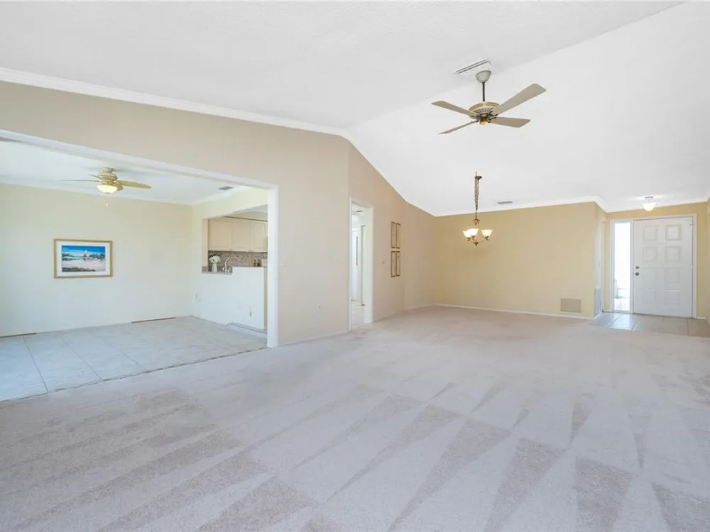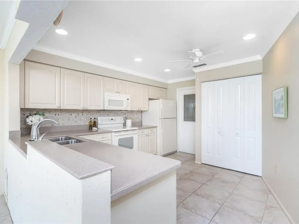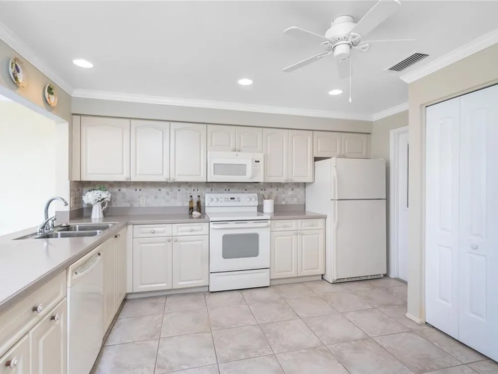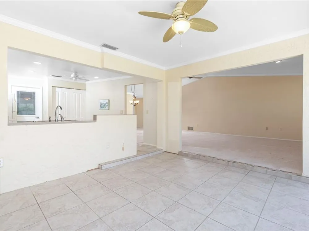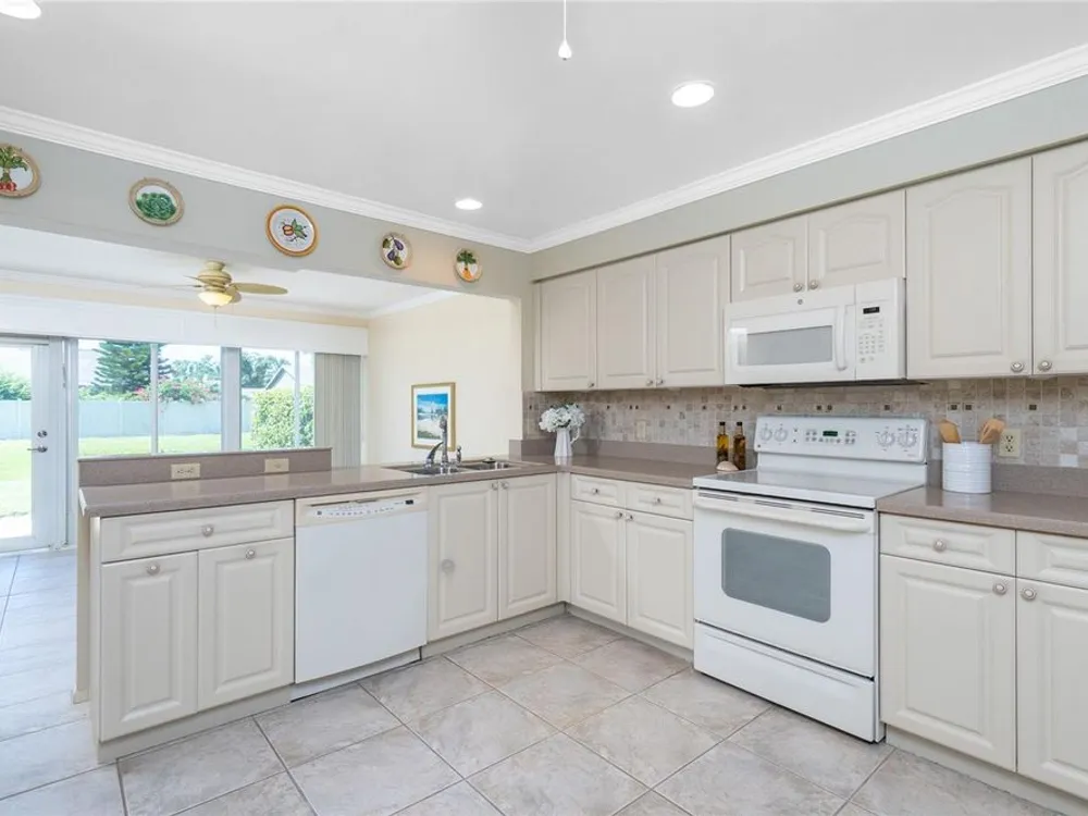Experience the ease of maintenance-free living in the friendly 55+ golf cart friendly community of Foxwood, where this move-in-ready two bedroom, two bath attached villa is waiting for you. Set in an X flood zone with impact windows and lush tropical landscaping, this home offers peaceful rear greenbelt views. Inside, the great room features vaulted ceilings and a cozy fireplace, creating a bright and welcoming space, while the kitchen offers tile flooring, plenty of cabinetry with pull-out shelves, Corian countertops, a tile backsplash, and a reach-in pantry. The open layout connects the eat-in kitchen to the great room, and the air conditioned Florida room has been opened to provide even more living space with large windows and French doors leading to the patio. The master suite includes a walk-in closet and an ensuite bath with a fully tiled walk-in shower, while the guest bedroom offers a roomy reach-in closet and the guest bath features a tub and shower combination. Start your mornings with coffee on the open-air back patio or your afternoons with a glass of wine and a good book. Crown molding in the main living areas, kitchen, and primary bedroom add a touch of luxury to the interior. Foxwood offers an impressive array of amenities designed for both relaxation and recreation, including tennis courts, shuffleboard, a sparkling pool, spa, and a clubhouse that hosts a variety of activities and social events throughout the year. The association takes care of the details so you can focus on enjoying life, covering lawn care, irrigation, reserves, exterior painting, roof maintenance, pool and spa upkeep, shuffleboard and tennis facilities, bocce ball, clubhouse maintenance, private roads, lake care, cable, exterior pest control, and more. Beyond the gates, you are just minutes from championship golf courses, pristine Gulf beaches, and Historic Dearborn Street, where you can enjoy charming shops, local dining, a weekly farmer’s market, and live entertainmentSchedule your showing today at 533 Foxwood Blvd and discover the relaxed lifestyle you’ve been looking for.