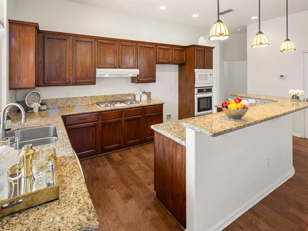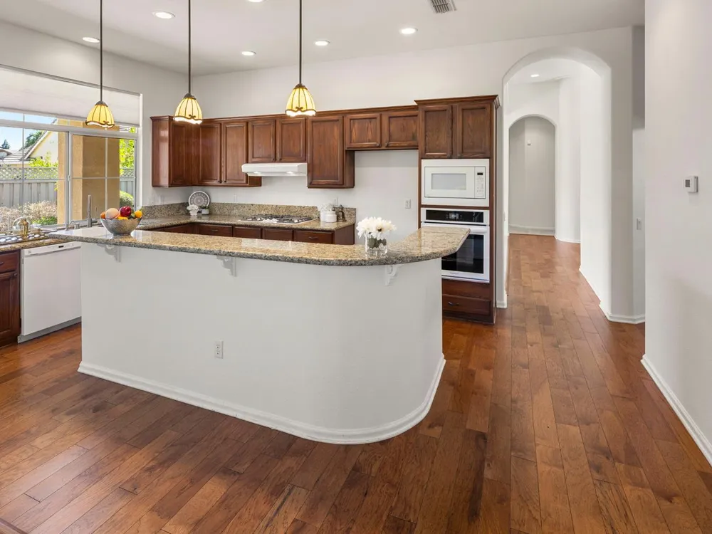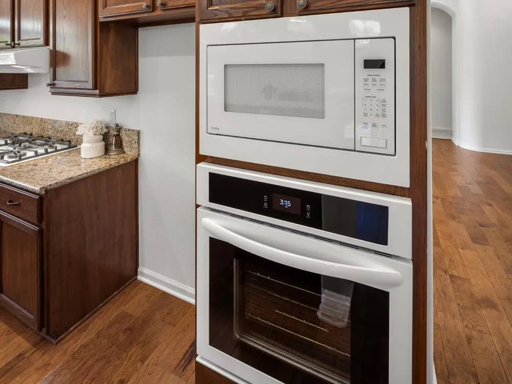 - Built-In Electric Oven, Gas Cooktop, Dishwasher, Disposal, Microwave, Plumbed For Ice Maker