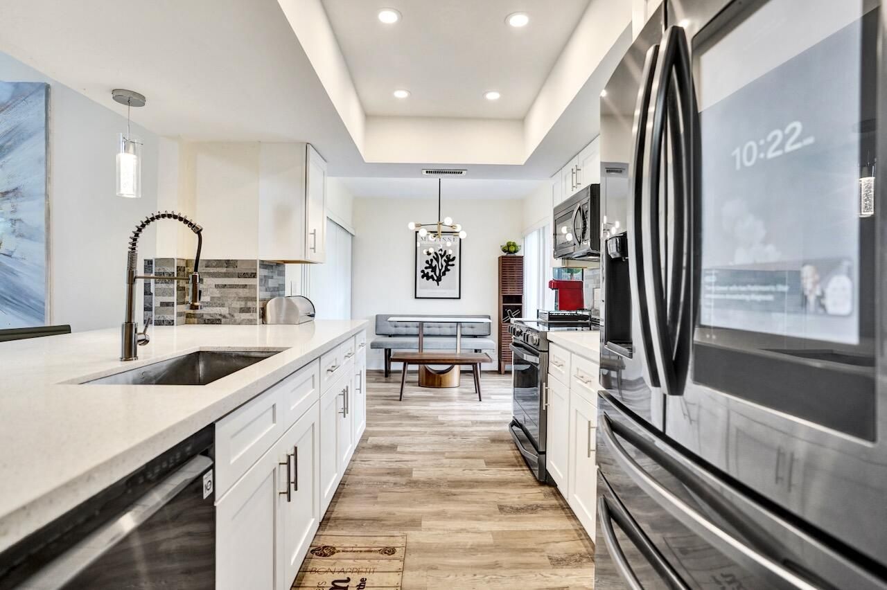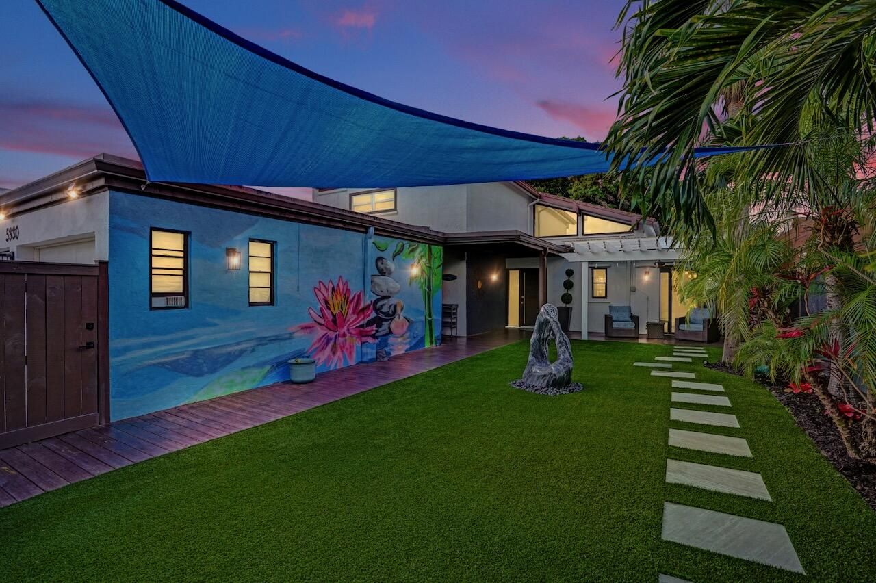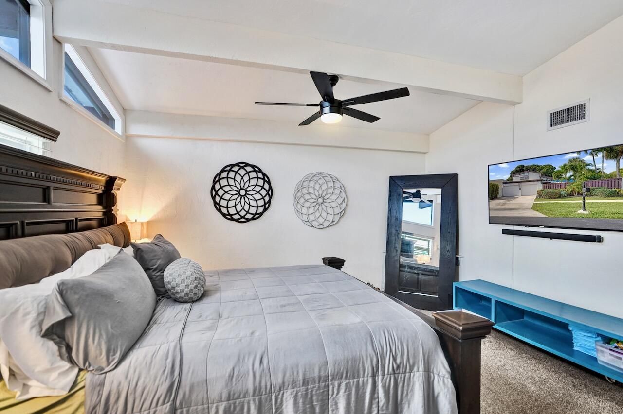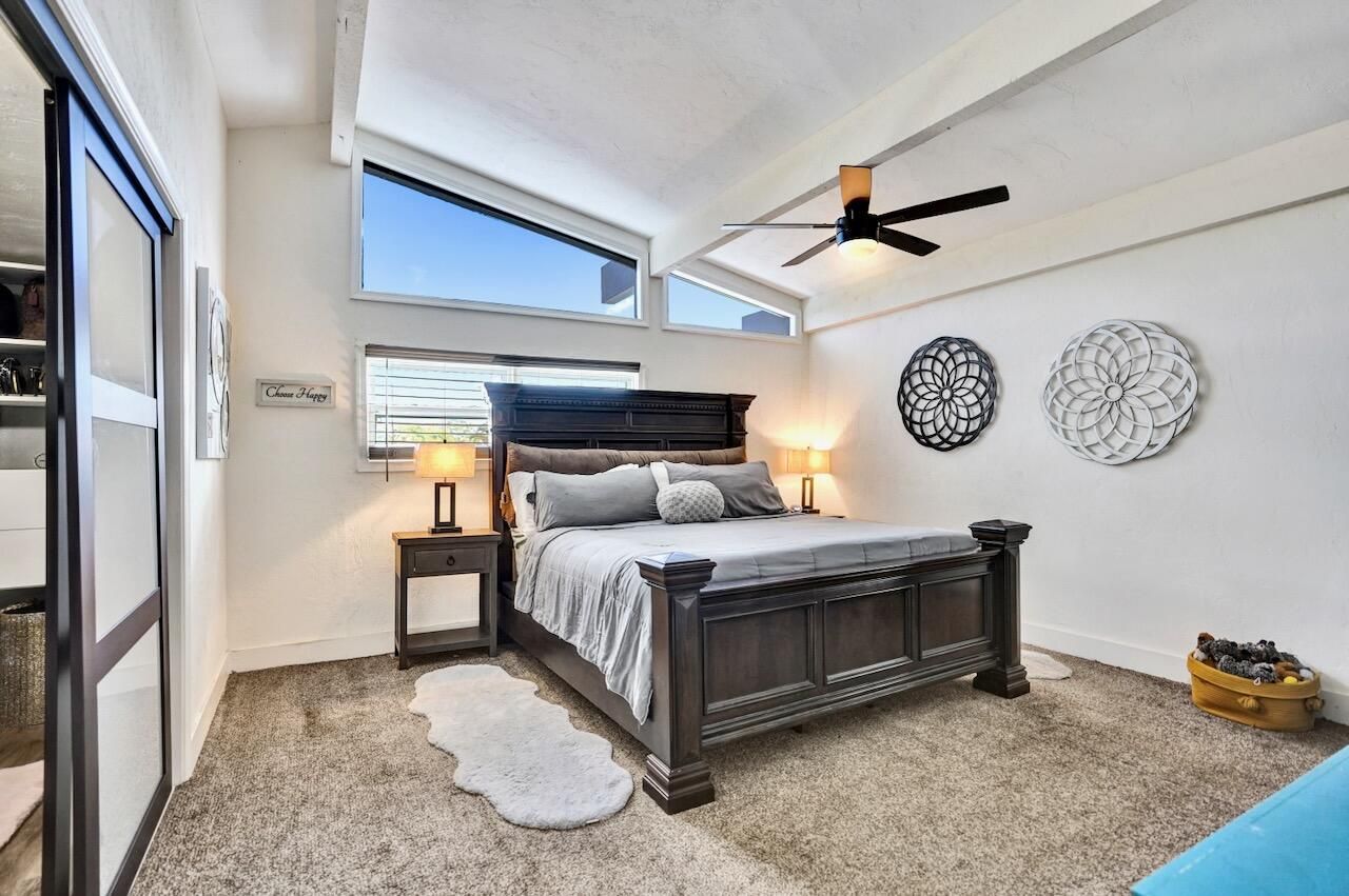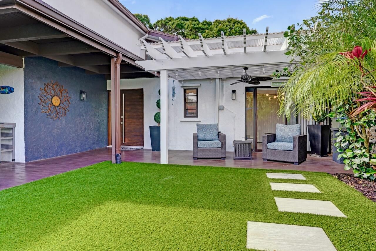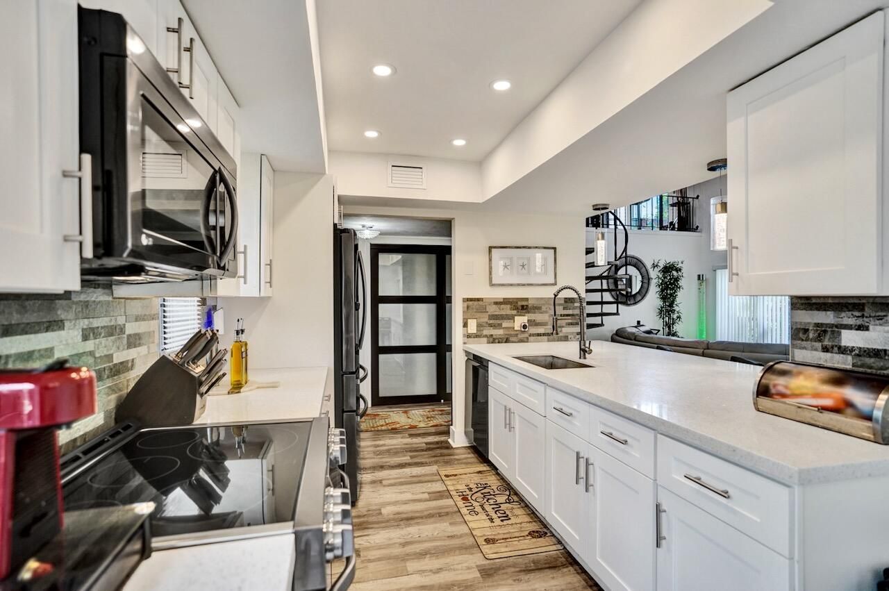 Welcome home to this bright and beautifully updated townhome in the J & J Patio Homes subdivision of the highly desirable 55+ community of Indian Spring! This unique 3-bedroom, 3-bathroom 2-story home has the most incredible vibe, beautiful updates and the best outdoor space in Indian Spring! The first floor living area features plank vinyl flooring, fresh paint, high ceilings and tons of natural light. The kitchen has been completely updated with white shaker cabinets, quartz countertops and newer stainless-steel appliances and includes an eat-in dining area looking out into the serene courtyard. The main floor boasts a large living room that looks out onto the golf course, a full bedroom suite with a walk-in closet and updated vanity, in addition to another bedroom and full bathroom with an updated vanity. Up the spiral staircase, there is a huge loft overlooking the living room with plank tile flooring, perfect for entertainment with an outdoor balcony overlooking the golf course. Also upstairs is the primary bedroom suite with a fully updated bathroom, and a huge walk-in closet with built-ins. The outdoor living space of this home will not disappoint! The front courtyard features custom lighting, turf grass, lush landscaping including a mango tree, zen-style artwork and accents, a deck patio with a covered pergola, misting system and waterfall wall. But that's not all! The back, screened-in patio features a large hot-tub space, and then leads out to beautiful decking. The back deck includes a grilling area, in addition to a covered deck area. The entire deck area is fenced in, includes landscape lighting and looks out onto the Indian Spring golf course. This home is truly move-in ready with major updates throughout: 2019 roof, brand new gutters, 2019 A/C and 2019 water heater. Furniture is negotiable, and the home can be sold turnkey. Indian Spring is a vibrant, active 55+ community with a manned guard gate and low HOA fees that include cable and security. Membership to the Indian Spring Country Club is optional. This home is truly one of a kind and will not last long! INFORMATION HEREIN NOT GUARANTEED AND SUBJECT TO ERRORS & OMISSIONS. ALL MEASUREMENTS APPROXIMATE.
