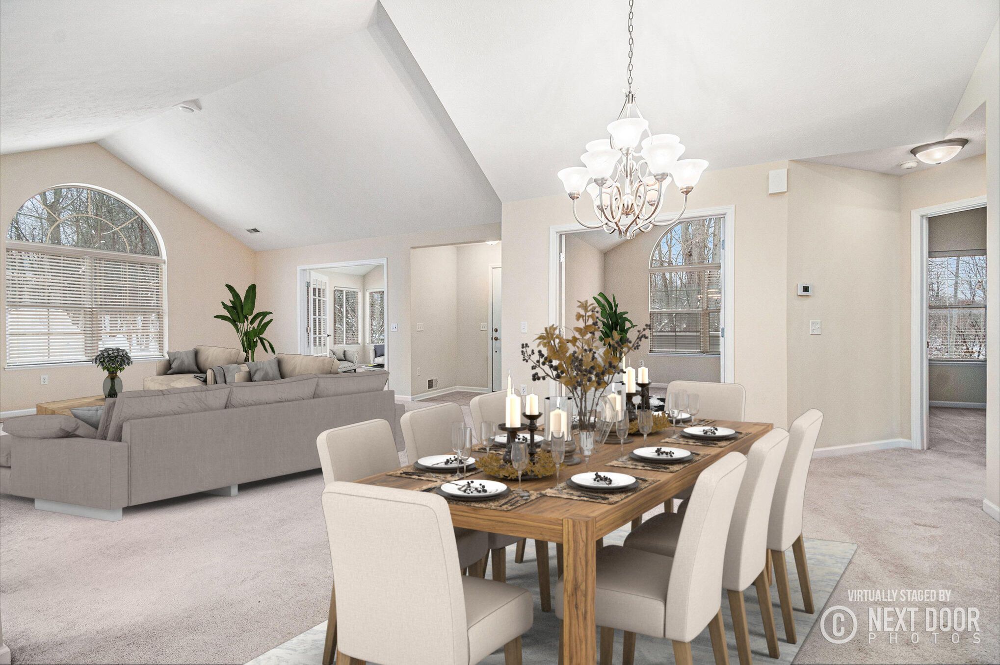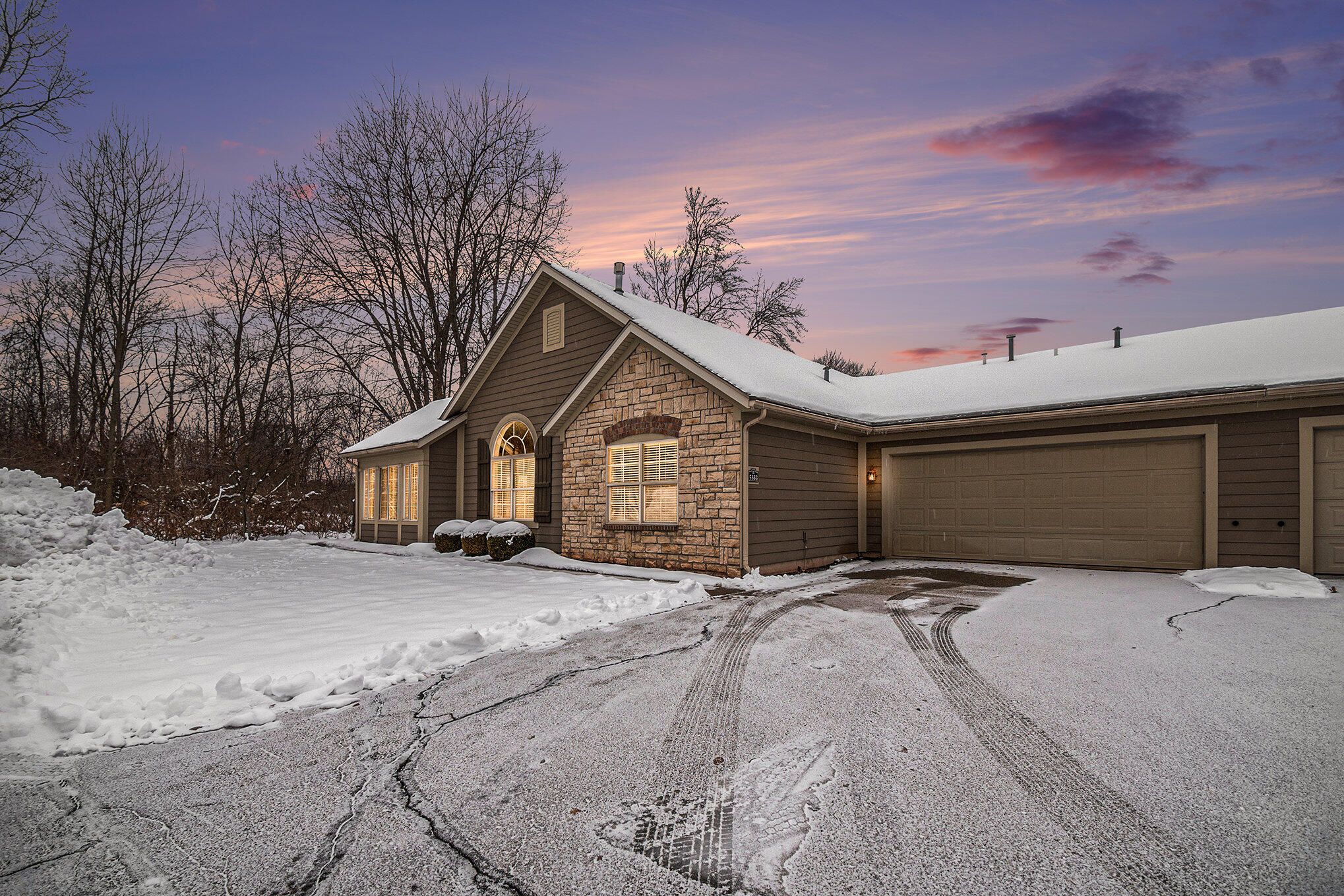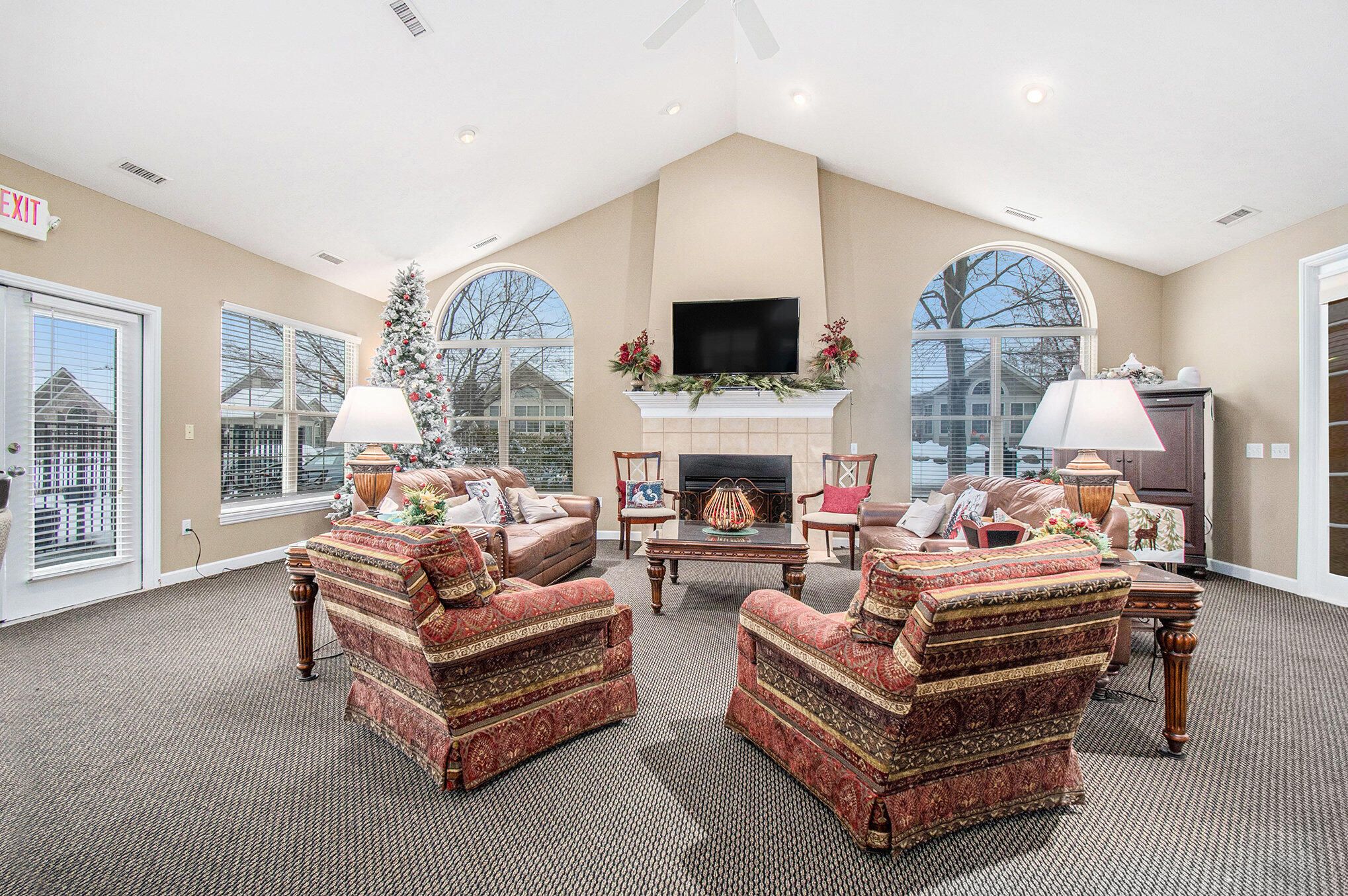 Move-in ready and wonderfully maintenance-free, this main-level condo features a true 0-step entry, neutral decor, and an open floor plan with vaulted ceilings and abundant natural light. The spacious kitchen offers granite countertops, newer stainless steel appliances, and plenty of storage. Enjoy two bedrooms, including a large primary suite with an ensuite bathroom, plus a versatile flex room with French doors that can serve as a third bedroom, office, or den. A beautiful four-season room with walls of windows overlooks a private wooded area, providing a serene retreat without any outdoor upkeep. Updated mechanicals offer added peace of mind, and the well-appointed condo association includes a clubhouse with a gathering room, library, fitness room, pool, and optional activities for an easy, enjoyable lifestyle. Conveniently located near shops and restaurants, this home offers comfort and convenience at its best.