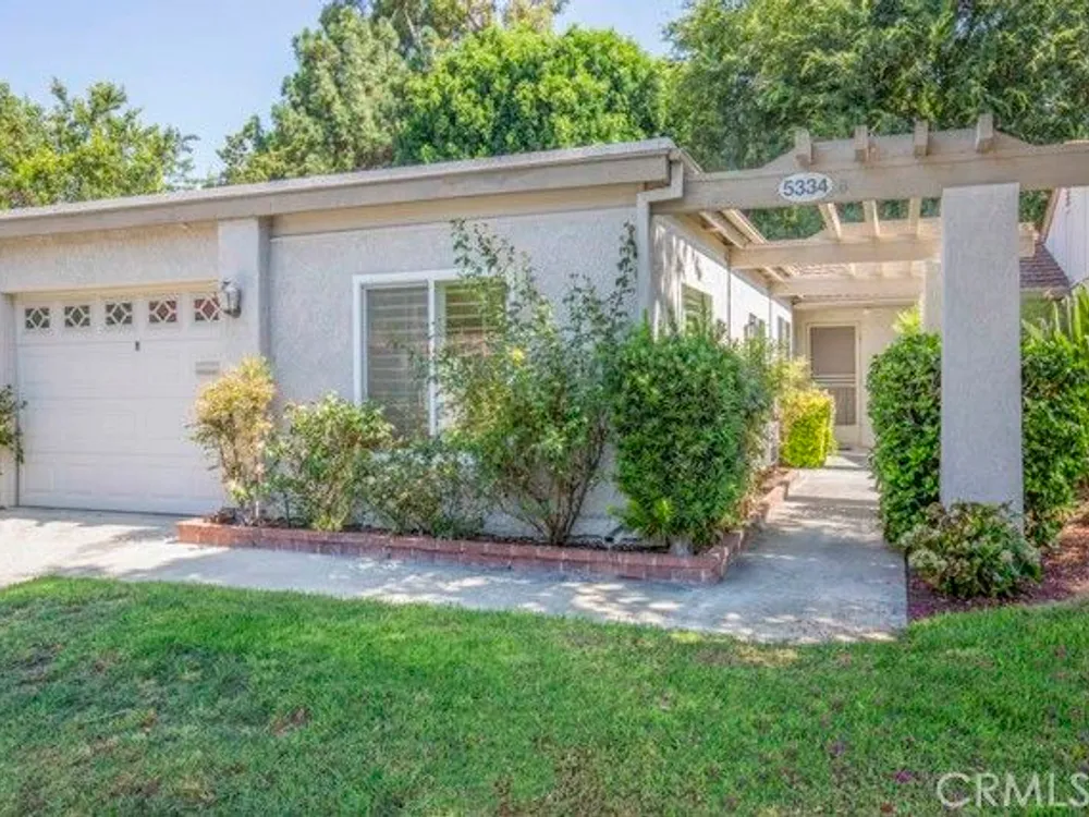 Brand new on the market! Welcome to 5334-B Bahia Blanca West – an expanded, single-level, two-bedroom, two-bath EL DOBLE residence in the gated Laguna Woods senior community. This residence is in a wonderful location on a quiet little cul-de-sac far from busy roads and noisy highways. Rose bushes line the path from the street to the front door. This floorplan boasts nearly 1500 square feet of living space with two large primary bedrooms separated by a spacious living room. There is a multi-purpose bonus room situated just off the dining area. The bonus room features plantation shutters and could serve as a casual TV/family room, home office, arts and crafts studio or workout area. Several upgrades throughout the home include recessed lighting, dual-pane windows (which help to retain the air conditioned cool in the summer) and skylights in the kitchen and one of the bathrooms. The dressing areas of both bedrooms have large closets with mirrored closet doors. The large open rear brick patio is surrounded by mature shade trees and boasts a lovely greenbelt view with mountains in the distance. The hedge surrounding this patio offers privacy with easy access to the greenbelt. This lovely patio is ideally suited for outdoor entertainment, dining and relaxing. The attached one-car garage features large cabinets for additional storage as well as a laundry area with a full-size washer and dryer and direct access into the residence via a service door into the garage. The driveway can accommodate one additional vehicle plus there is ample street parking for guests. This is a tremendous opportunity for a new owner to bring their own design ideas to this property to create a customized showcase home. Do not miss!