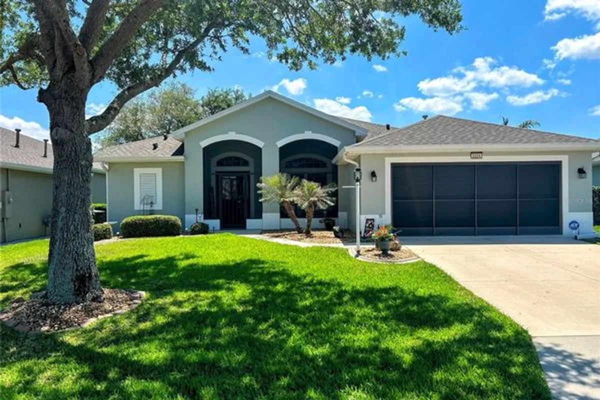 Welcome to 5334 Pond Crossing Place, a thoughtfully designed and meticulously maintained residence nestled within a sought-after retirement community in Leesburg, Florida. Offering 1,923 square feet of well-appointed living space, this 3-bedroom, 2-bath home embodies comfort, style, and the ease of the Florida lifestyle. From the moment you arrive, you’re greeted by beautiful landscaping, with a screened front lanai and a striking leaded glass front door that sets the tone for the quality found throughout the home. Step inside to discover a bright and inviting interior enhanced by knockdown ceilings, plantation shutters, and a seamless blend of luxury vinyl and tile flooring, providing both durability and elegance. The heart of the home is the kitchen, featuring Corian countertops, ample cabinetry, and a functional layout perfect for everyday living or entertaining. The adjacent living and dining areas offer a comfortable flow, ideal for hosting family and friends. The spacious primary suite serves as a private retreat, complete with a walk-in closet and a well-appointed ensuite bath featuring a tiled soaking tub, walk-in shower, and Corian countertops. Two additional guest bedrooms provide flexibility for visitors, hobbies, or a home office, each equipped with built-in closets and ceiling fans. Outdoor living is just as inviting, with a screened front lanai perfect for enjoying morning coffee or evening breezes. The private backyard, with no rear neighbors, creates a peaceful setting for relaxation and outdoor enjoyment. This move-in-ready home offers the perfect blend of privacy, comfort, and low-maintenance living—ideal for those seeking an active yet tranquil retirement lifestyle in Central Florida.