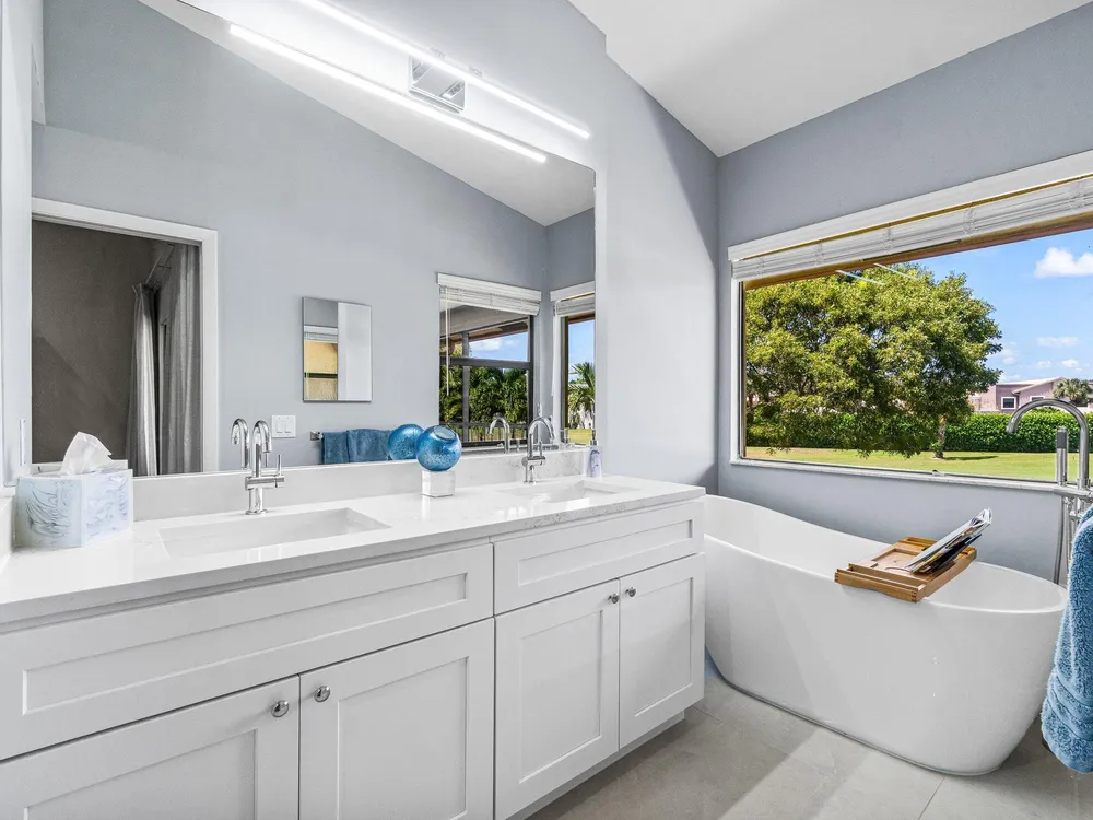 - Cathedral Ceiling(s), Entrance Foyer, Pantry, Garden Tub/Roman Tub, Split Bedrooms, Home Office, Storage, Living/Dining Room, Eat-in Kitchen, Blinds, Drapes, Multiple Primary Suites, Dual Sinks, Upper Level Primary, Separate Shower, Bathtub