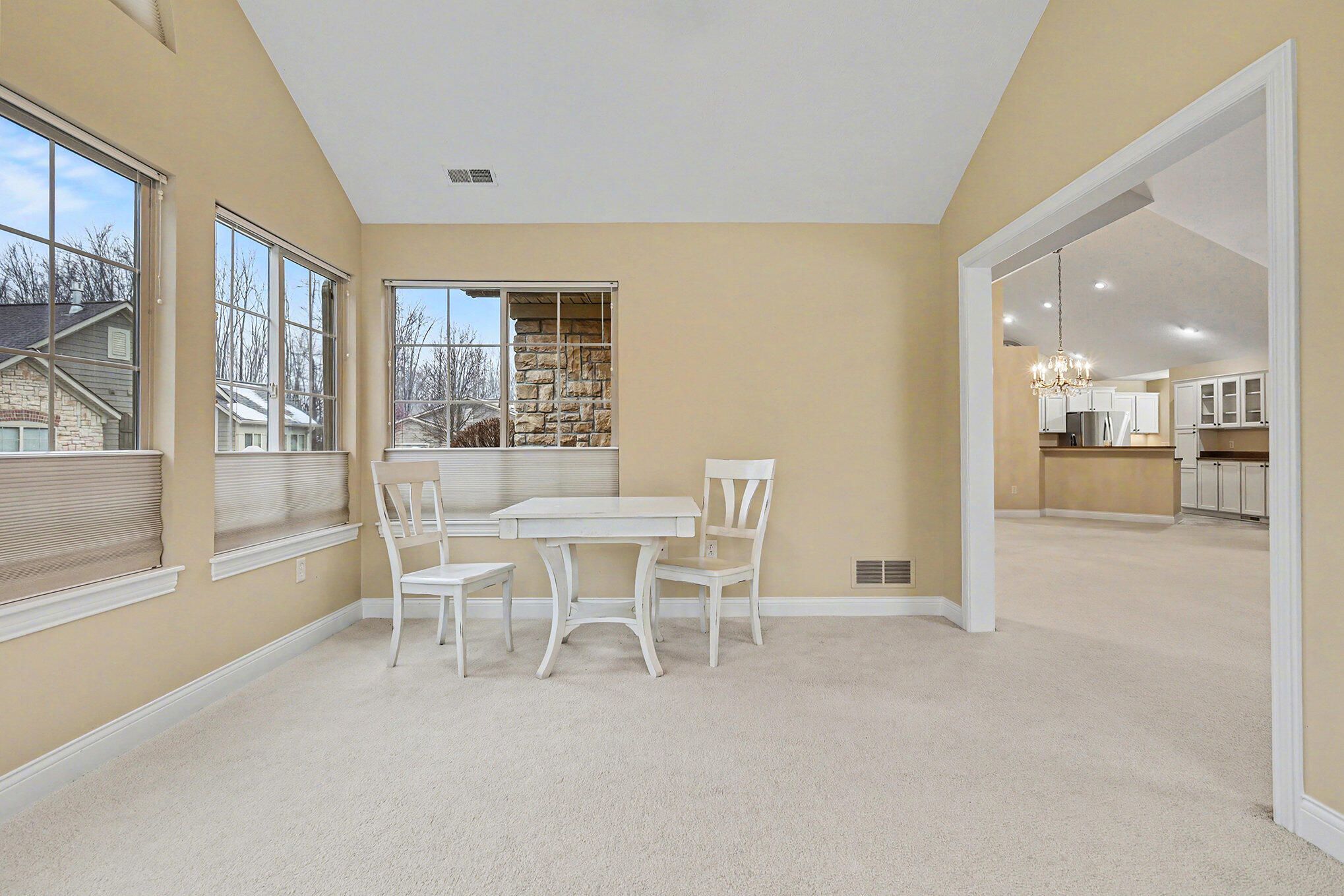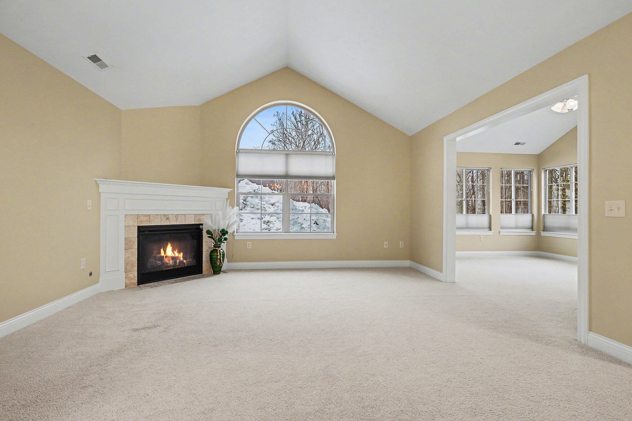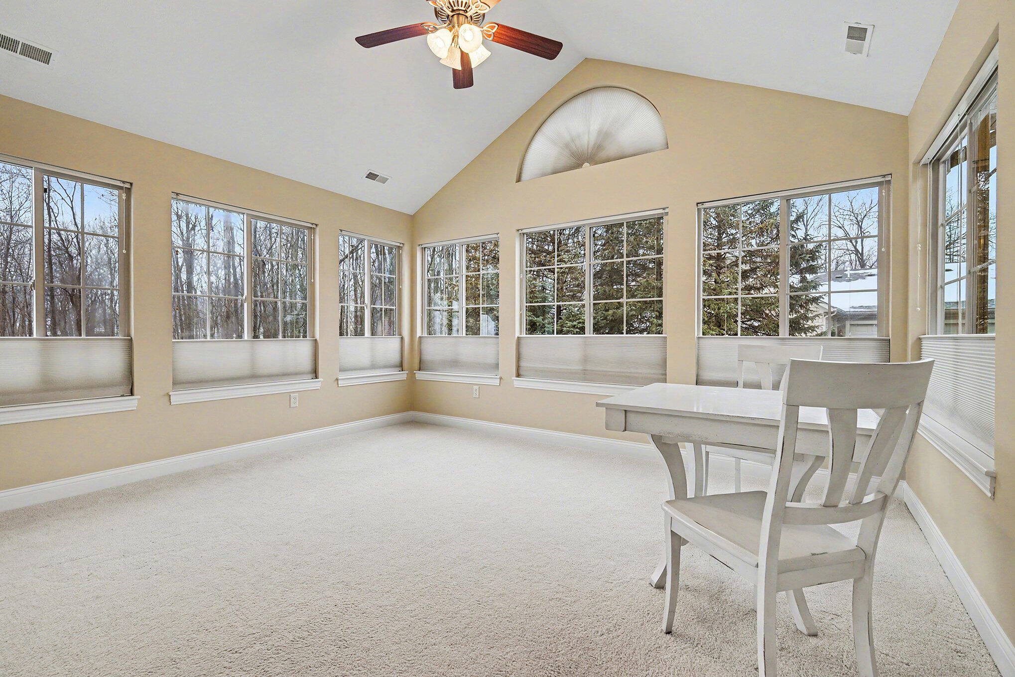 Enjoy exceptional luxury living in The Villas at Rivertown with this beautiful 2 bedroom, 2 bathroom condo with over 1,800 sqft of living space! The association has a beautiful clubhouse that includes a pool, gym, library, and recreation area! The open floor plan features vaulted ceilings, a cozy fireplace in the living area which flows into the inviting sun room, a large owner's suite with walk-in closet and private bath with double vanities and tiled shower, spacious second bedroom, another full bathroom, third bedroom/flex room that offers additional space and possibilities, laundry room, and finally a delightful kitchen that includes a snack bar, large pantry, lots of counter space, and opens into a beautiful dining area. Other perks include extra storage space in the garage attic and storage room off the laundry room, and a convenient location close to shopping, walking, and biking trails. Open House on Saturday from 12-1:30pm, or call to schedule your private showing today!