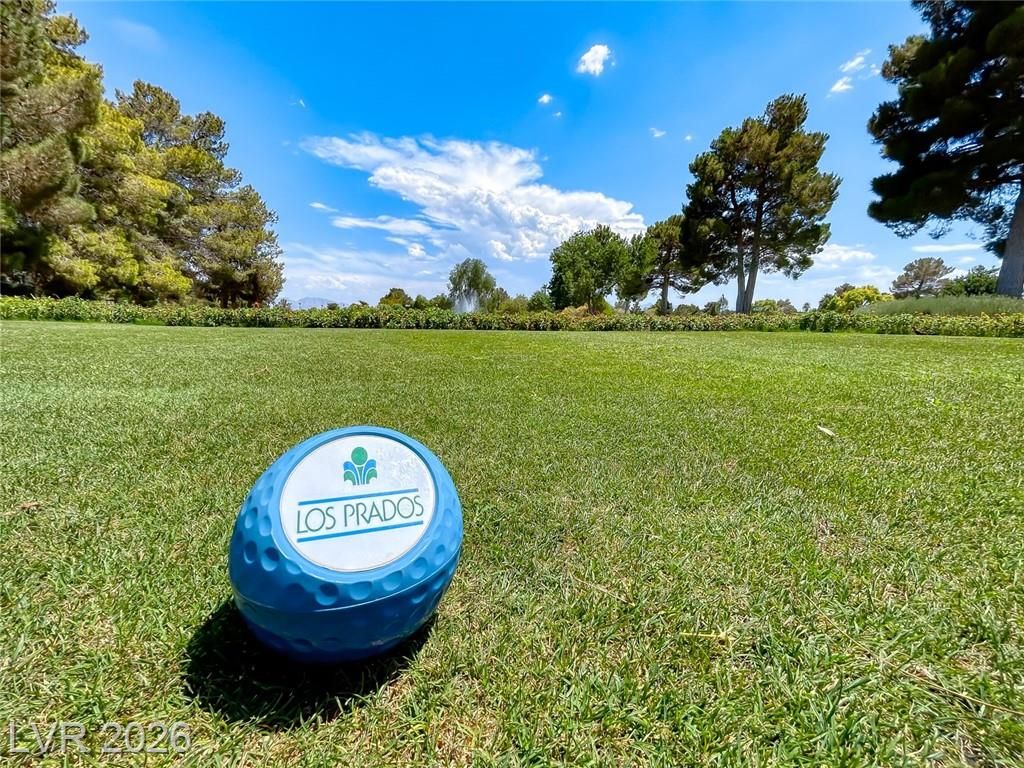 Super Clean, Freshly Painted, New Carpet. Brand new HVAC. 3 bedroom, 2 bathroom Andrews model in the Los Prados Country Club. One of the Vegas Valleys hidden gems with a lifestyle to match! 2 mile walking trail, lighted tennis & pickle ball courts, restaurant & bar. 2 community pools. Guard gated w/roaming security. Golf course, driving range, chipping green, putting green and club house. The property overlooks the 8th hole. Best valued price per square foot in Los Prados.