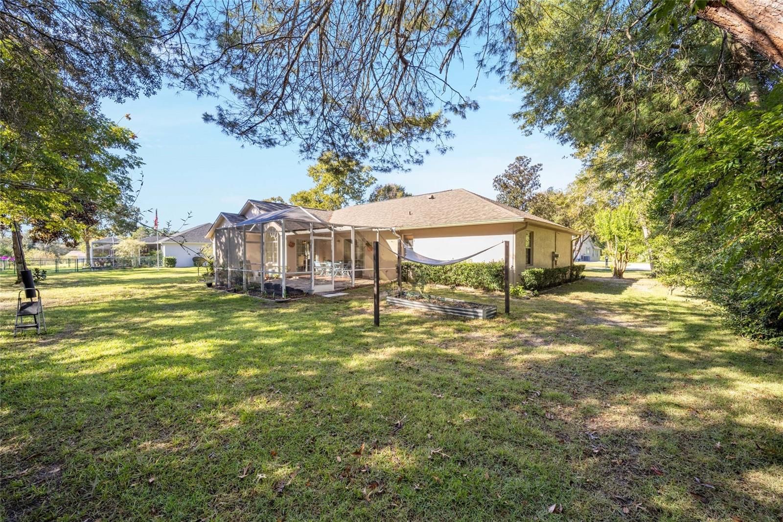Priced to allow for your personal updates! This well-maintained home in Marco Polo Village I, a 55+ community, offers a wonderful floor plan and solid structure, providing the perfect opportunity to add your own style and design touches. Enjoy instant equity when you modernize to your taste! Home offers 1,855 sq. ft. of comfortable living space and a brand-new roof (2021) — all with low HOA fees. Inside, you’ll find 3 spacious bedrooms, 2 bathrooms, and a versatile den with French doors — perfect for a home office, hobby room, or quiet reading nook. The kitchen is bright and functional, with a breakfast nook overlooking the backyard. From here, sliding glass doors open to the expanded screened lanai, creating an inviting space for relaxing or entertaining. The primary suite is a true retreat, featuring a tray ceiling, walk-in closet, and an en-suite bath with dual sinks, walk-in shower, and soaking tub. Two guest bedrooms provide comfort for visitors, while the .54-acre landscaped lot including beautiful flowering trees offers privacy and room to garden. The two-car garage and shed provide plenty of storage for vehicles, tools, or hobbies. From the World Equestrian Center (just 22 minutes away) to Sholom Park, Ocala Civic Theatre, Appleton Museum, Silver Springs State Park, and Rainbow Springs State Park, Ocala has something for everyone to enjoy. With its natural beauty, horse farms, low housing costs, and minimal hurricane risk, Ocala is the perfect place to call home. Shopping, dining, and top-rated medical facilities — including two HCA hospitals ranked in the nation’s Top 250 — are just minutes away. This is the lifestyle you’ve been waiting for. Schedule your showing today before this opportunity is gone!