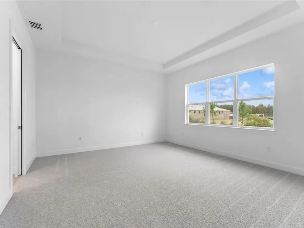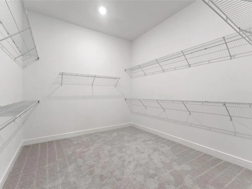 - Built-in Features, Eat-in Kitchen, In-Wall Pest Control, Open Floorplan, Main Level Primary, Solid Surface Counters, Thermostat, Tray Ceiling(s), Walk-In Closet(s)