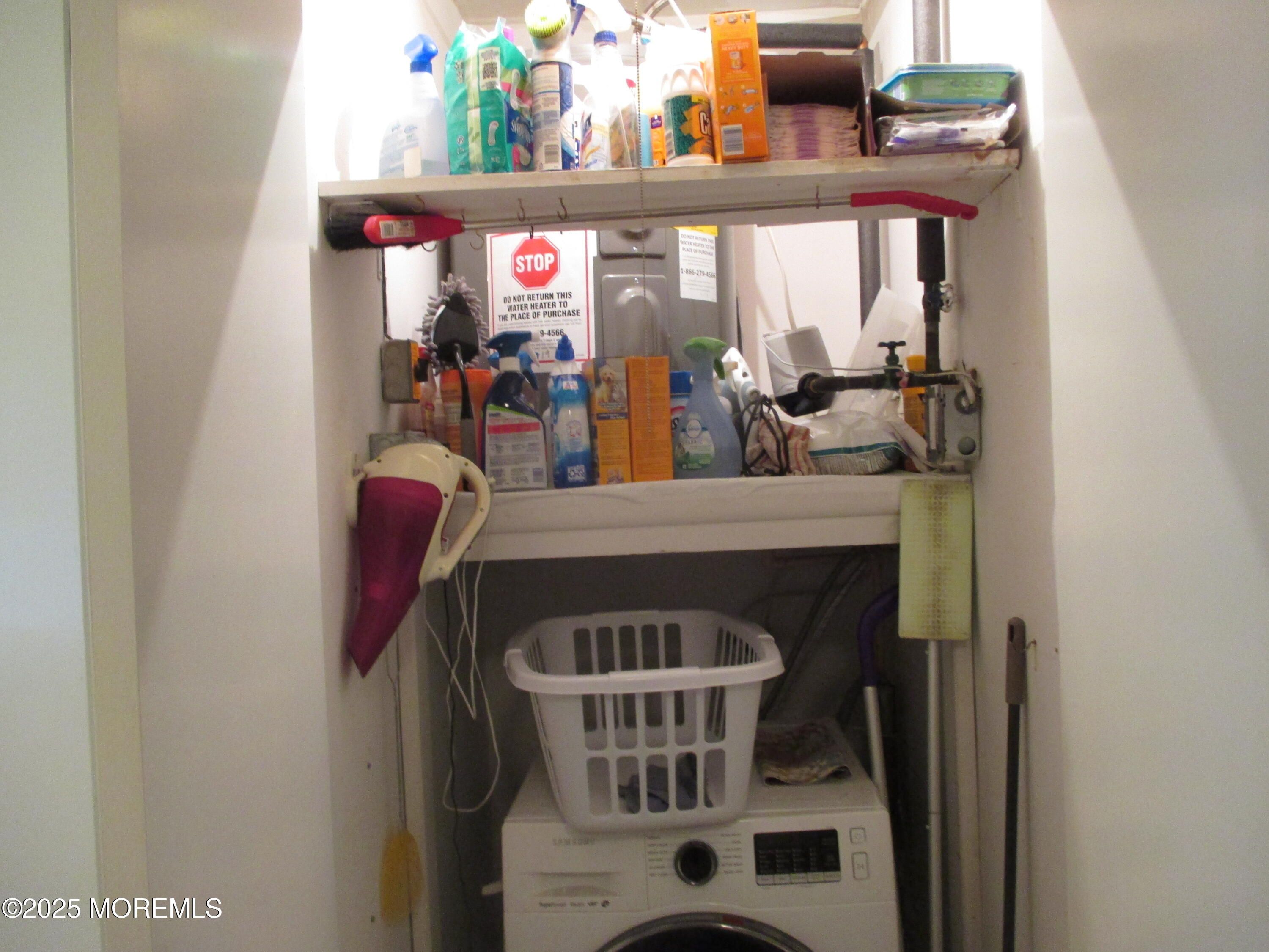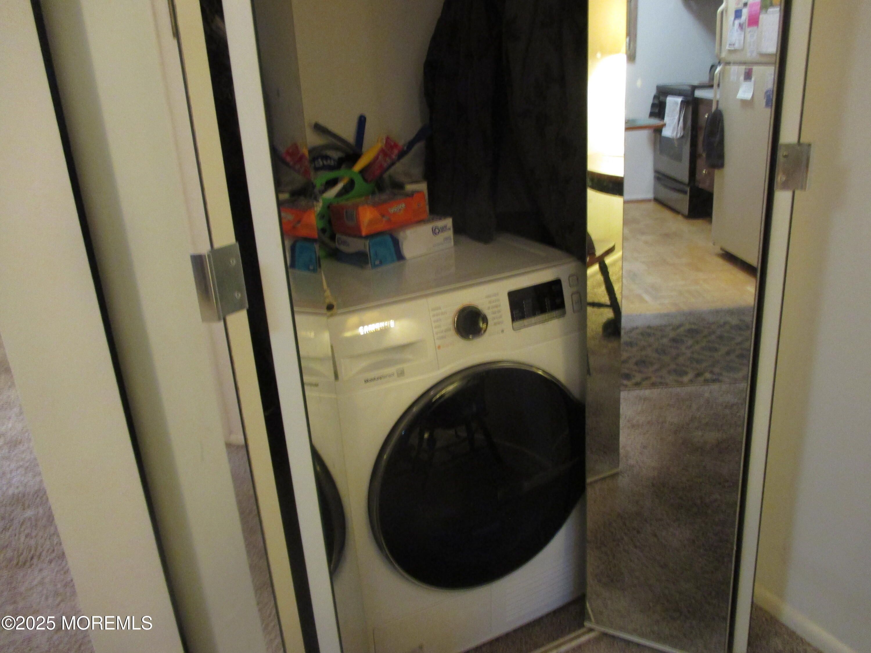 Cute ETON in great location. Extra parking on side of bldg. The condo has an upgraded front porch with new windows helping to insulate the room. It has a storage closet and carpet. The living room is large with a dining extension. The closet holds the dryer with plenty of room for storage with two shelves. Kitchen has upgraded appliances and counter. The long counter has a top extension for holding light dining. Upgraded washer & water heater in laundry. Bath has vanity, commode and tub/shower combo. Bedroom has 2 closets, separate with space for bureau in-between. One of the closets is for linen.