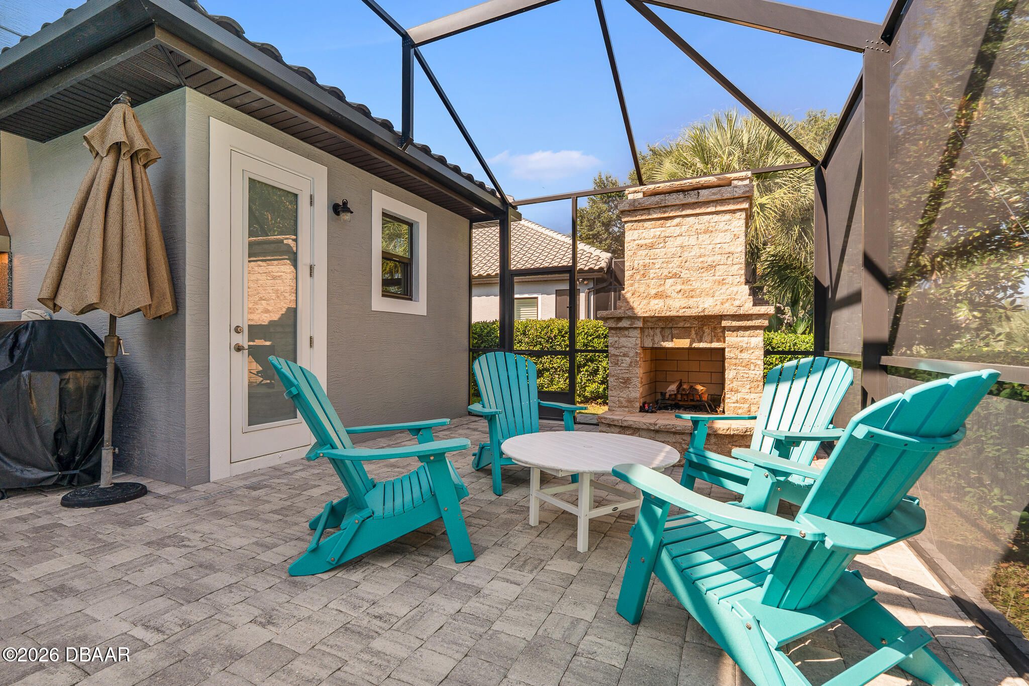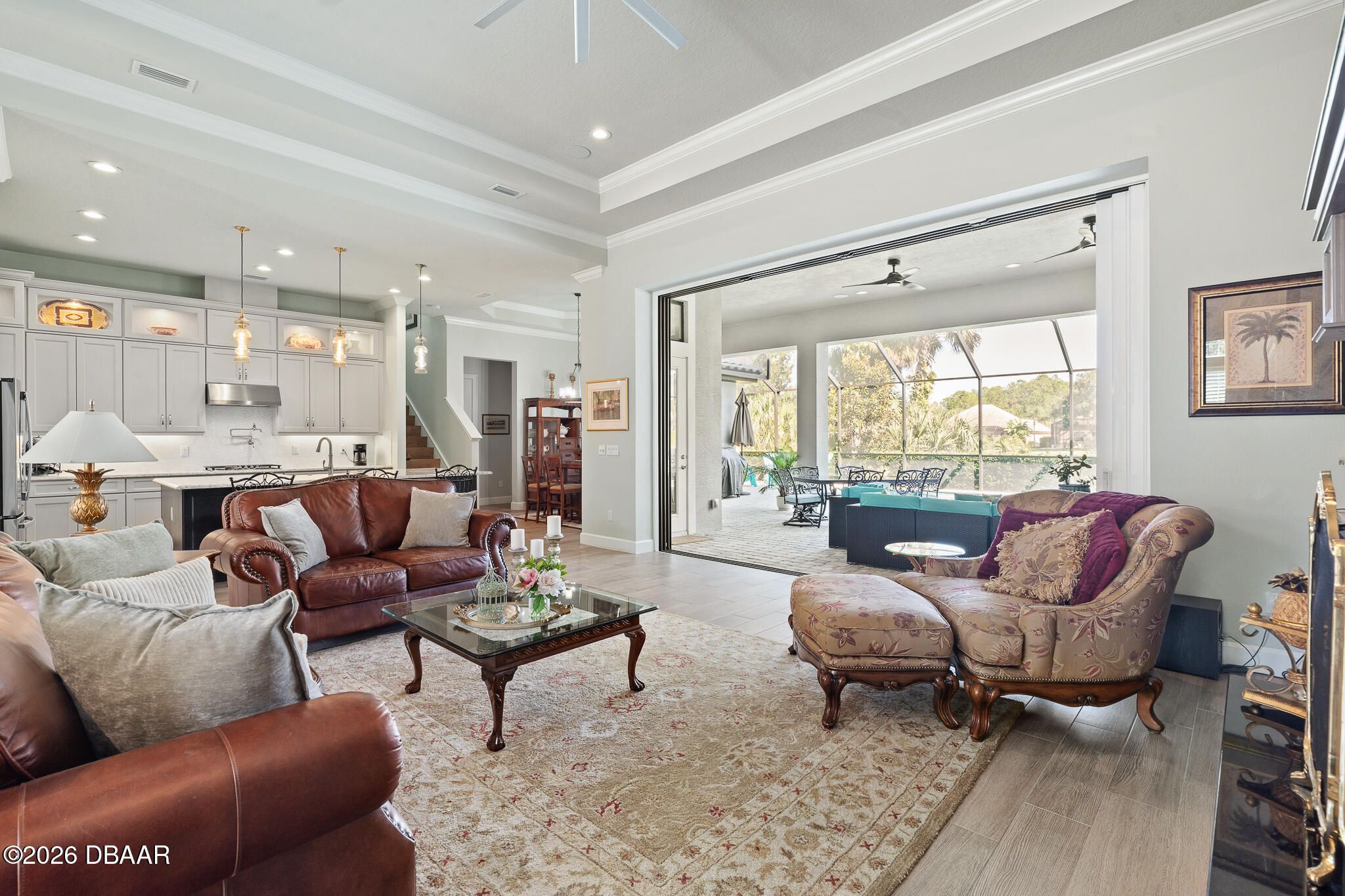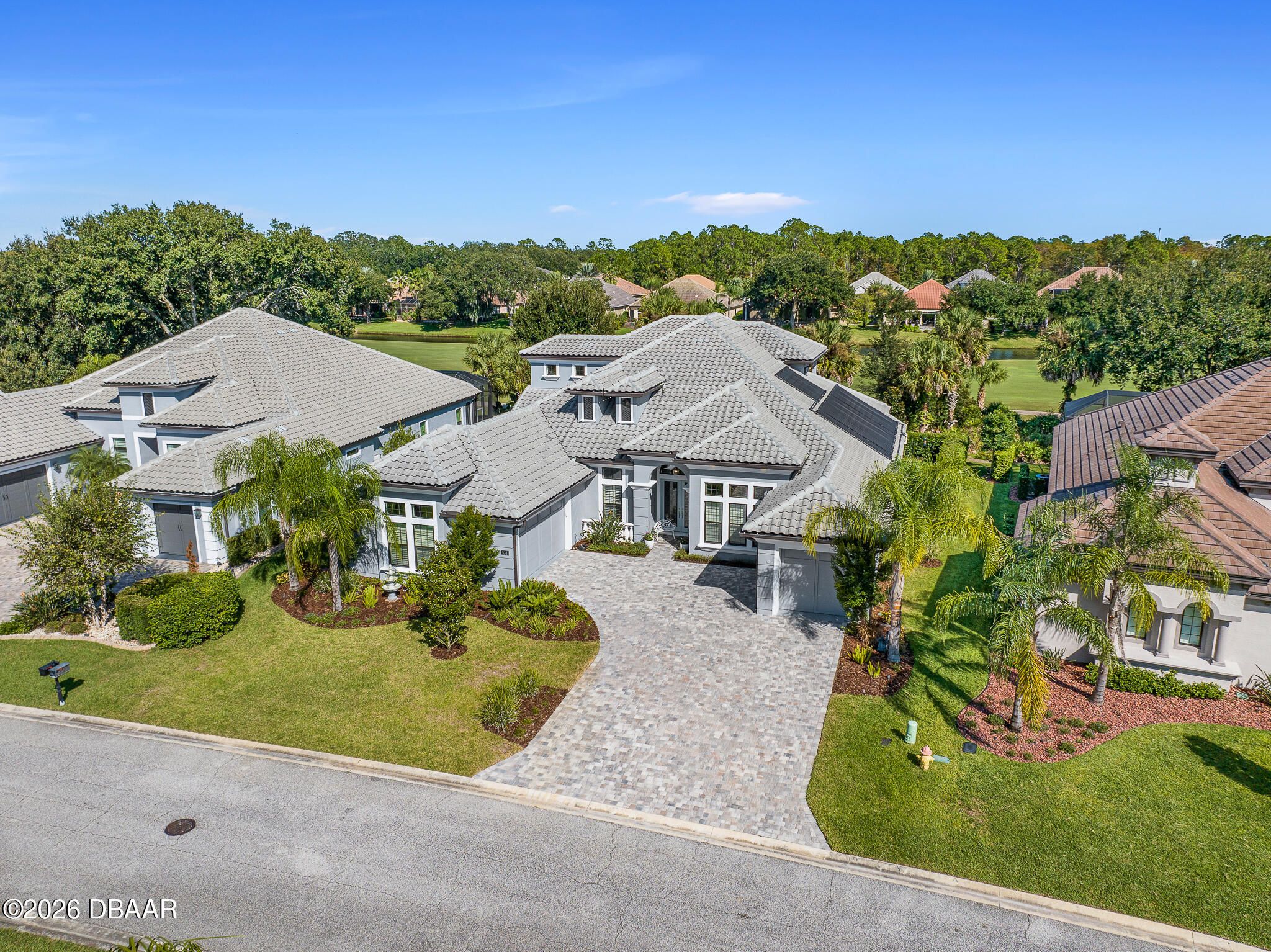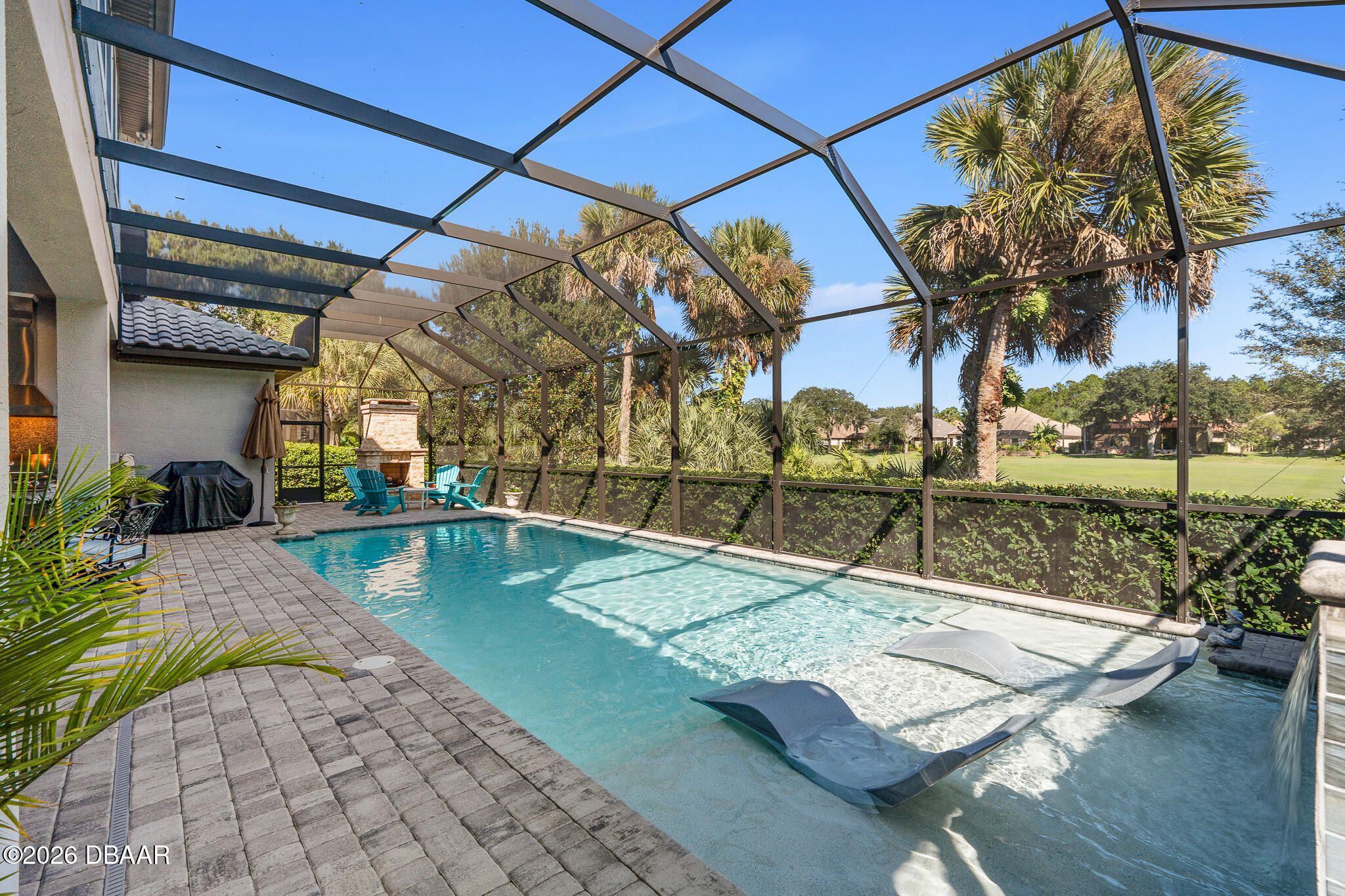 Welcome to 534 Wingspan Drive, an exceptional estate home offering 4 bedrooms plus office plus bonus room, 4 bathrooms, and a 3-car garage, perfectly positioned on a premium homesite along the Westlake Golf Course with breathtaking lake and golf course views. Located on a private estate street within the highly sought-after Plantation Bay Golf & Country Club, this impressive residence delivers the perfect blend of luxury, space, and lifestyle. From the moment you arrive, the double door entry with a screened enclosure sets the tone for what awaits inside. At the heart of the home is a beautifully upgraded chef's kitchen featuring double-stacked cabinetry with a striking two-tone design, a large center island, quartz countertops, tile backsplash, and a farmhouse sink. Outfitted with GE Profile stainless steel appliances, including a propane gas range, this space seamlessly opens to the breakfast nook with serene pool views and direct access to the lanai. The formal dining is MORE... equally refined, showcasing tile flooring, plantation shutters, crown molding, and a tray ceiling--perfect for hosting gatherings. The expansive family room impresses with soaring 12-foot ceilings, custom built-ins, and a gas fireplace, all anchored by 10-foot vanishing sliders that fully open to the outdoor living area, creating effortless indoor-outdoor flow. The owner's suite is a private retreat with tranquil pool views, a tray ceiling with crown molding, an extended sitting area, and direct access to the lanai. Dual walk-in closets provide ample storage, while the luxurious en suite bath features granite countertops, separate vanities, a floating soaking tub, and an oversized walk-in shower with floor-to-ceiling tile. Bedrooms two and three both feature plantation shutters, with a shared bath offering a quartz countertop and a beautifully tiled walk-in shower. Bedroom four serves as a private suite with its own en suite bath, complete with a walk-in shower, quartz countertops, and direct lanai access--ideal for guests or multi-generational living. The dedicated office is both functional and inviting, featuring double door entry, tile floors, plantation shutters, 12-foot ceilings, and abundant natural light, along with direct access to a one-car garage. Upstairs, a versatile bonus room offers endless possibilities--complete with tile flooring, a built-in bar area with beverage fridge, and access to a private balcony showcasing sweeping golf course and lake views. A convenient half bath completes this upper level. Step outside to your private outdoor oasis, designed for both relaxation and entertaining. The pavered lanai features an outdoor kitchen with gas grill and refrigerator, along with a cozy wood-burning fireplace. The oversized pool is enhanced with solar heating, a waterfall feature, and a sun shelf, all surrounded by lush privacy hedging while still capturing stunning golf course views. Additional highlights include a three-car split garage (2/1 configuration), tile roof, fenced yard area, propane gas servicing the fireplace, kitchen range, and outdoor grill, a large under-stair storage closet, attic storage, whole-house water filtration and softener system, hybrid hot water heater, and zoned AC systems. Living in Plantation Bay means more than just owning a home--it's embracing a true resort-style lifestyle. This private, gated golf course community offers 45 holes of championship golf, two clubhouses with exceptional dining and new 30+ million dollar Founders Clubhouse, 9 tennis courts, 10 pickleball courts, a state-of-the-art fitness and spa center, resort-style pools, and an active social scene. Residents enjoy tennis, pickleball, bocce, miles of walking trails, and a vibrant calendar of events, all just minutes from the beaches of Ormond Beach. Buyers of this home to receive substantial discount on initiation fee at the club. Ask listing agent for details. This is a rare opportunity to own a meticulously upgraded home with incredible indoor and outdoor living spaces, all set within one of the area's most desirable luxury golf communities.