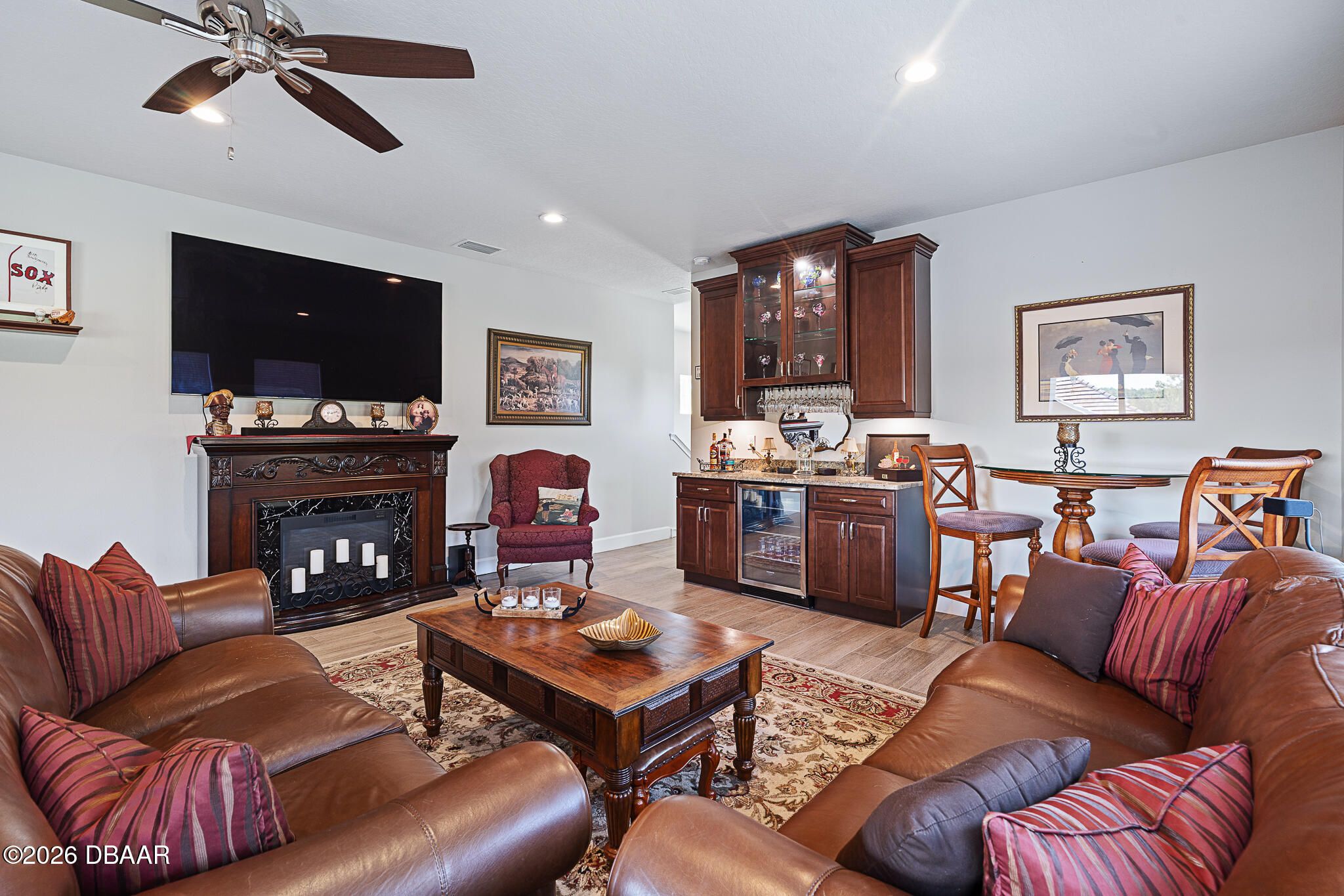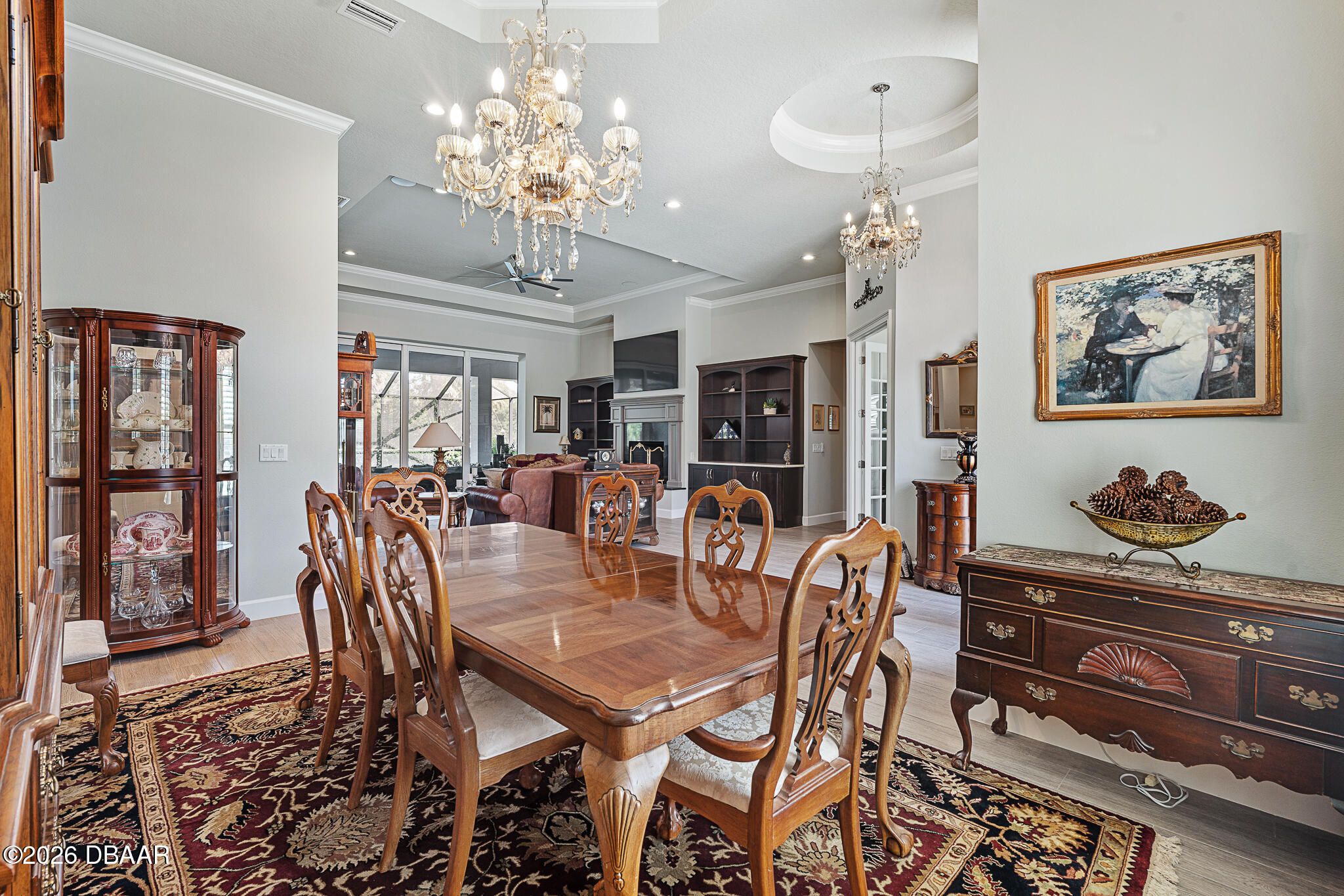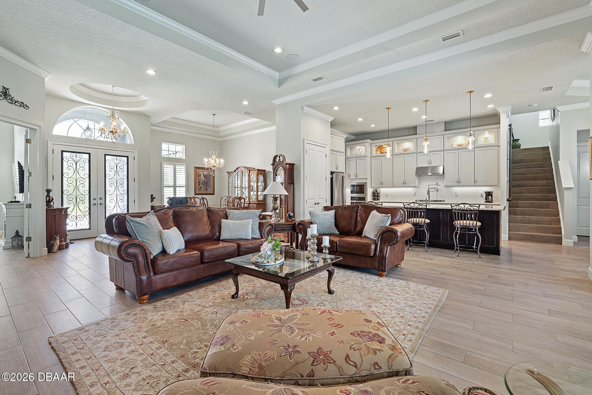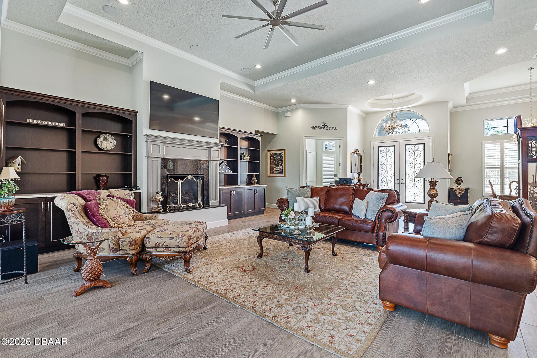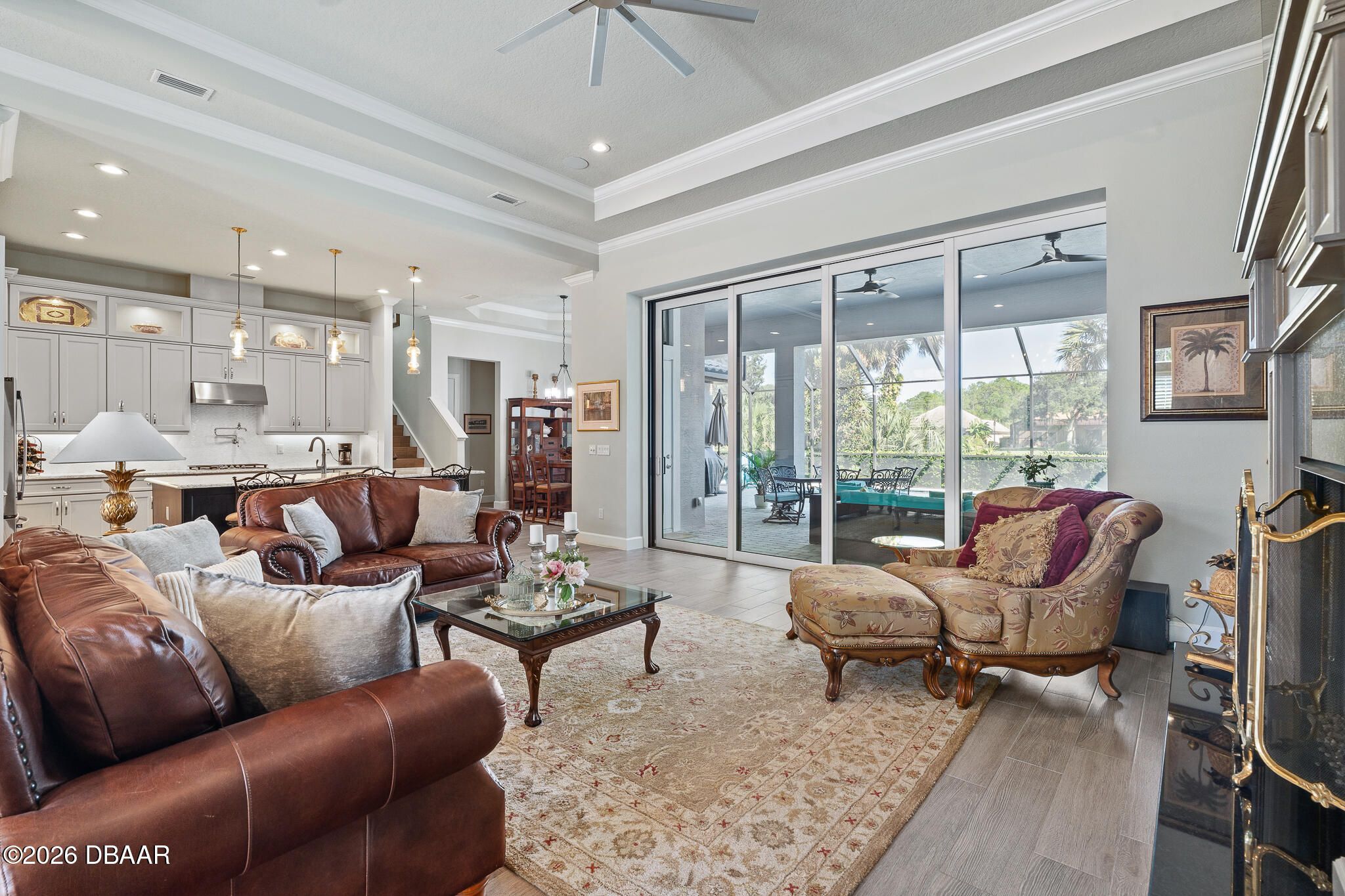 Welcome to 534 Wingspan Drive, an exceptional estate home offering 4 bedrooms plus office plus bonus room, 4 bathrooms, and a 3-car garage, perfectly positioned on a premium homesite along the Westlake Golf Course with breathtaking lake and golf course views. Located on a private estate street within the highly sought-after Plantation Bay Golf & Country Club, this impressive residence delivers the perfect blend of luxury, space, and lifestyle. From the moment you arrive, the double door entry with a screened enclosure sets the tone for what awaits inside. At the heart of the home is a beautifully upgraded chef's kitchen featuring double-stacked cabinetry with a striking two-tone design, a large center island, quartz countertops, tile backsplash, and a farmhouse sink. Outfitted with GE Profile stainless steel appliances, including a propane gas range, this space seamlessly opens to the breakfast nook with serene pool views and direct access to the lanai. The formal dining is MORE... equally refined, showcasing tile flooring, plantation shutters, crown molding, and a tray ceiling--perfect for hosting gatherings. The expansive family room impresses with soaring 12-foot ceilings, custom built-ins, and a gas fireplace, all anchored by 10-foot vanishing sliders that fully open to the outdoor living area, creating effortless indoor-outdoor flow. The owner's suite is a private retreat with tranquil pool views, a tray ceiling with crown molding, an extended sitting area, and direct access to the lanai. Dual walk-in closets provide ample storage, while the luxurious en suite bath features granite countertops, separate vanities, a floating soaking tub, and an oversized walk-in shower with floor-to-ceiling tile. Bedrooms two and three both feature plantation shutters, with a shared bath offering a quartz countertop and a beautifully tiled walk-in shower. Bedroom four serves as a private suite with its own en suite bath, complete with a walk-in shower, quartz countertops, and direct lanai access--ideal for guests or multi-generational living. The dedicated office is both functional and inviting, featuring double door entry, tile floors, plantation shutters, 12-foot ceilings, and abundant natural light, along with direct access to a one-car garage. Upstairs, a versatile bonus room offers endless possibilities--complete with tile flooring, a built-in bar area with beverage fridge, and access to a private balcony showcasing sweeping golf course and lake views. A convenient half bath completes this upper level. Step outside to your private outdoor oasis, designed for both relaxation and entertaining. The pavered lanai features an outdoor kitchen with gas grill and refrigerator, along with a cozy wood-burning fireplace. The oversized pool is enhanced with solar heating, a waterfall feature, and a sun shelf, all surrounded by lush privacy hedging while still capturing stunning golf course views. Additional highlights include a three-car split garage (2/1 configuration), tile roof, fenced yard area, propane gas servicing the fireplace, kitchen range, and outdoor grill, a large under-stair storage closet, attic storage, whole-house water filtration and softener system, hybrid hot water heater, and zoned AC systems. Living in Plantation Bay means more than just owning a home--it's embracing a true resort-style lifestyle. This private, gated golf course community offers 45 holes of championship golf, two clubhouses with exceptional dining and new 30+ million dollar Founders Clubhouse, 9 tennis courts, 10 pickleball courts, a state-of-the-art fitness and spa center, resort-style pools, and an active social scene. Residents enjoy tennis, pickleball, bocce, miles of walking trails, and a vibrant calendar of events, all just minutes from the beaches of Ormond Beach. Buyers of this home to receive substantial discount on initiation fee at the club. Ask listing agent for details. This is a rare opportunity to own a meticulously upgraded home with incredible indoor and outdoor living spaces, all set within one of the area's most desirable luxury golf communities.