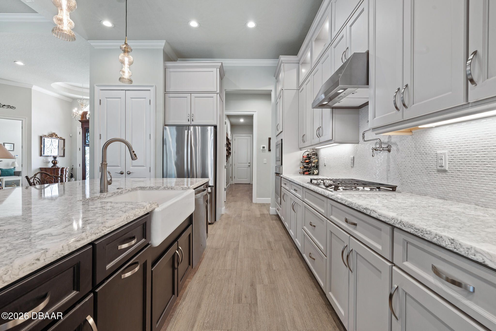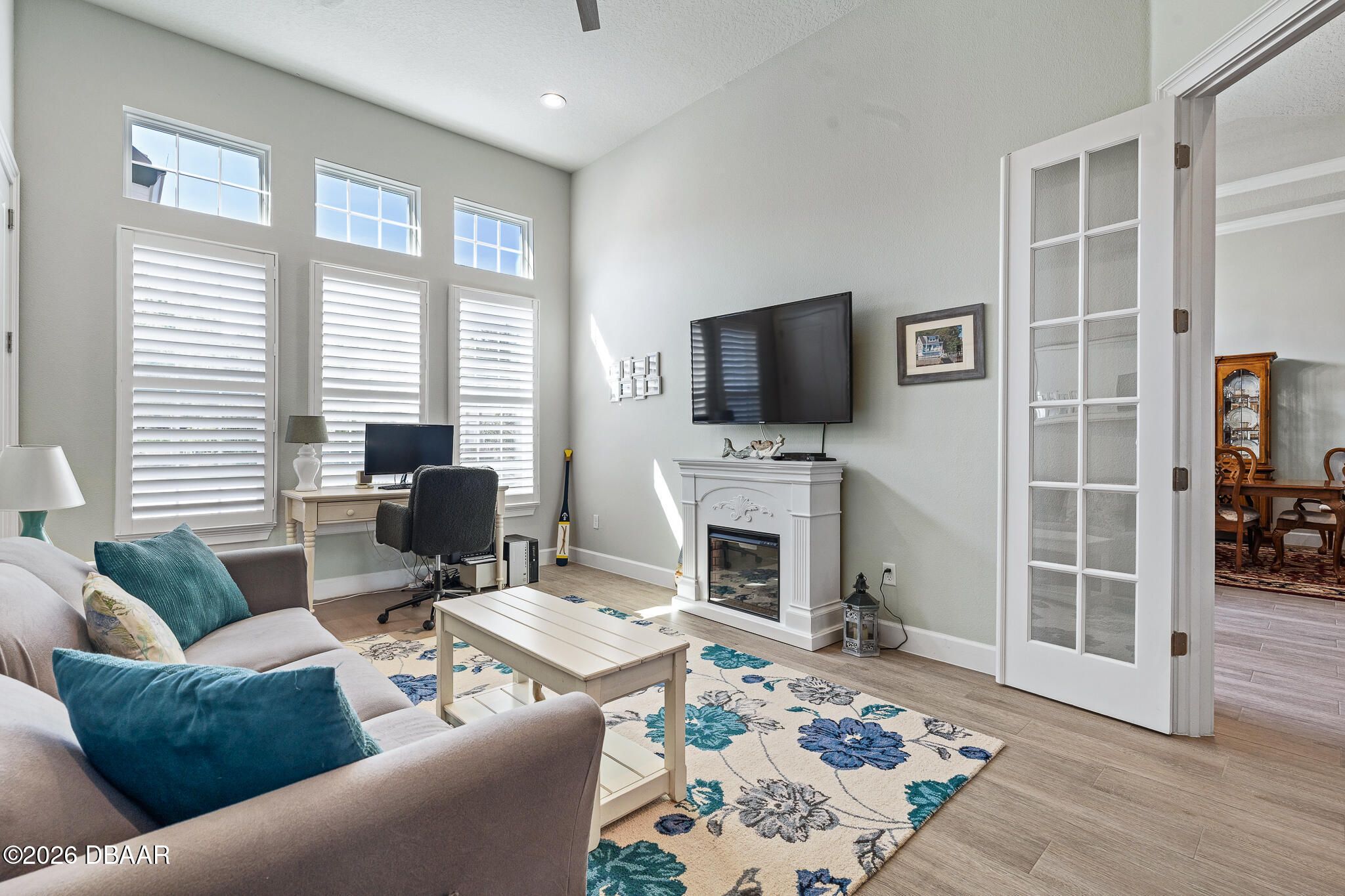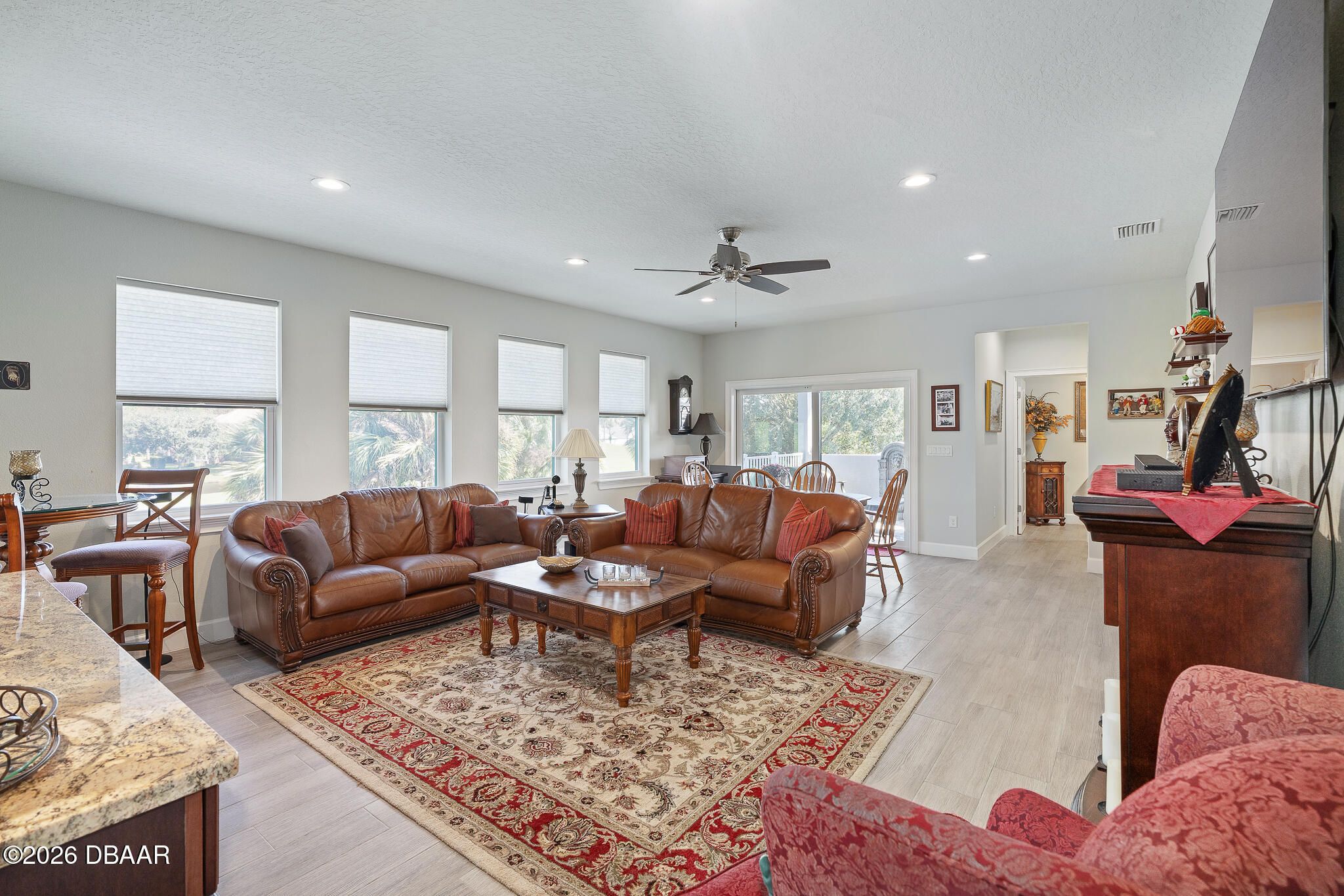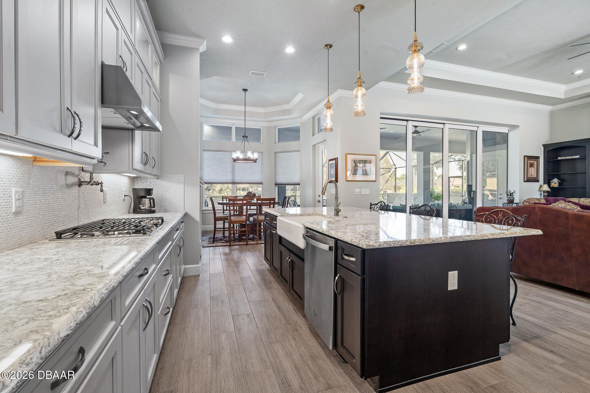 Welcome to 534 Wingspan Drive, an exceptional estate home offering 4 bedrooms plus office plus bonus room, 4 bathrooms, and a 3-car garage, perfectly positioned on a premium homesite along the Westlake Golf Course with breathtaking lake and golf course views. Located on a private estate street within the highly sought-after Plantation Bay Golf & Country Club, this impressive residence delivers the perfect blend of luxury, space, and lifestyle. From the moment you arrive, the double door entry with a screened enclosure sets the tone for what awaits inside. At the heart of the home is a beautifully upgraded chef's kitchen featuring double-stacked cabinetry with a striking two-tone design, a large center island, quartz countertops, tile backsplash, and a farmhouse sink. Outfitted with GE Profile stainless steel appliances, including a propane gas range, this space seamlessly opens to the breakfast nook with serene pool views and direct access to the lanai. The formal dining is MORE... equally refined, showcasing tile flooring, plantation shutters, crown molding, and a tray ceiling--perfect for hosting gatherings. The expansive family room impresses with soaring 12-foot ceilings, custom built-ins, and a gas fireplace, all anchored by 10-foot vanishing sliders that fully open to the outdoor living area, creating effortless indoor-outdoor flow. The owner's suite is a private retreat with tranquil pool views, a tray ceiling with crown molding, an extended sitting area, and direct access to the lanai. Dual walk-in closets provide ample storage, while the luxurious en suite bath features granite countertops, separate vanities, a floating soaking tub, and an oversized walk-in shower with floor-to-ceiling tile. Bedrooms two and three both feature plantation shutters, with a shared bath offering a quartz countertop and a beautifully tiled walk-in shower. Bedroom four serves as a private suite with its own en suite bath, complete with a walk-in shower, quartz countertops, and direct lanai access--ideal for guests or multi-generational living. The dedicated office is both functional and inviting, featuring double door entry, tile floors, plantation shutters, 12-foot ceilings, and abundant natural light, along with direct access to a one-car garage. Upstairs, a versatile bonus room offers endless possibilities--complete with tile flooring, a built-in bar area with beverage fridge, and access to a private balcony showcasing sweeping golf course and lake views. A convenient half bath completes this upper level. Step outside to your private outdoor oasis, designed for both relaxation and entertaining. The pavered lanai features an outdoor kitchen with gas grill and refrigerator, along with a cozy wood-burning fireplace. The oversized pool is enhanced with solar heating, a waterfall feature, and a sun shelf, all surrounded by lush privacy hedging while still capturing stunning golf course views. Additional highlights include a three-car split garage (2/1 configuration), tile roof, fenced yard area, propane gas servicing the fireplace, kitchen range, and outdoor grill, a large under-stair storage closet, attic storage, whole-house water filtration and softener system, hybrid hot water heater, and zoned AC systems. Living in Plantation Bay means more than just owning a home--it's embracing a true resort-style lifestyle. This private, gated golf course community offers 45 holes of championship golf, two clubhouses with exceptional dining and new 30+ million dollar Founders Clubhouse, 9 tennis courts, 10 pickleball courts, a state-of-the-art fitness and spa center, resort-style pools, and an active social scene. Residents enjoy tennis, pickleball, bocce, miles of walking trails, and a vibrant calendar of events, all just minutes from the beaches of Ormond Beach. Buyers of this home to receive substantial discount on initiation fee at the club. Ask listing agent for details. This is a rare opportunity to own a meticulously upgraded home with incredible indoor and outdoor living spaces, all set within one of the area's most desirable luxury golf communities.