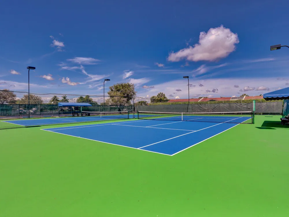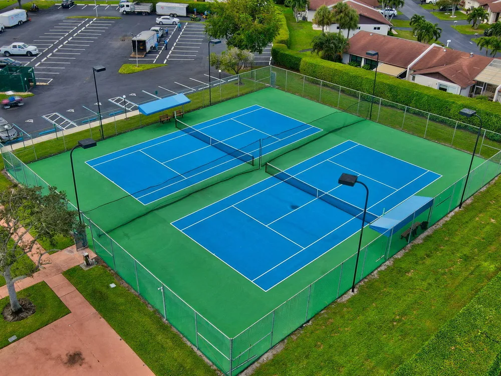 - Bocce, Clubhouse, Elevator, Game Room, Pickleball, Picnic Area, Pool, Shuffleboard, Sidewalks, Spa/Hot Tub, Street Lights, Tennis Court(s)