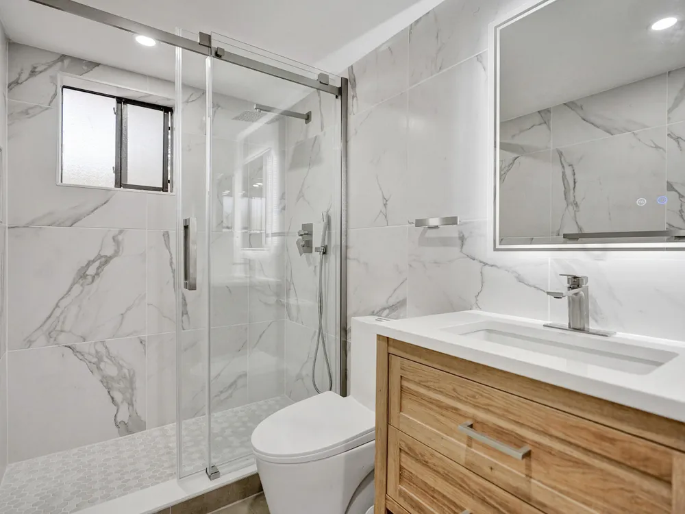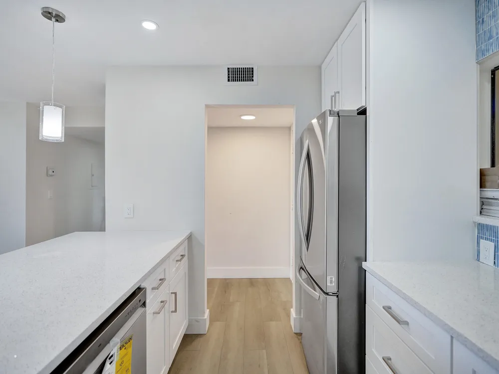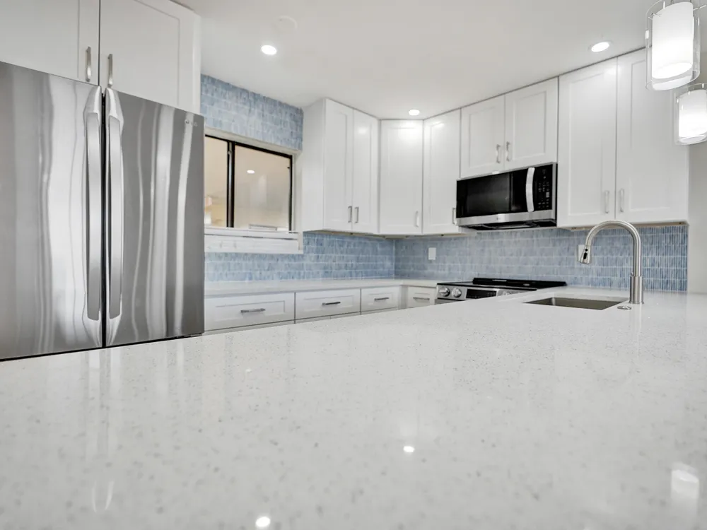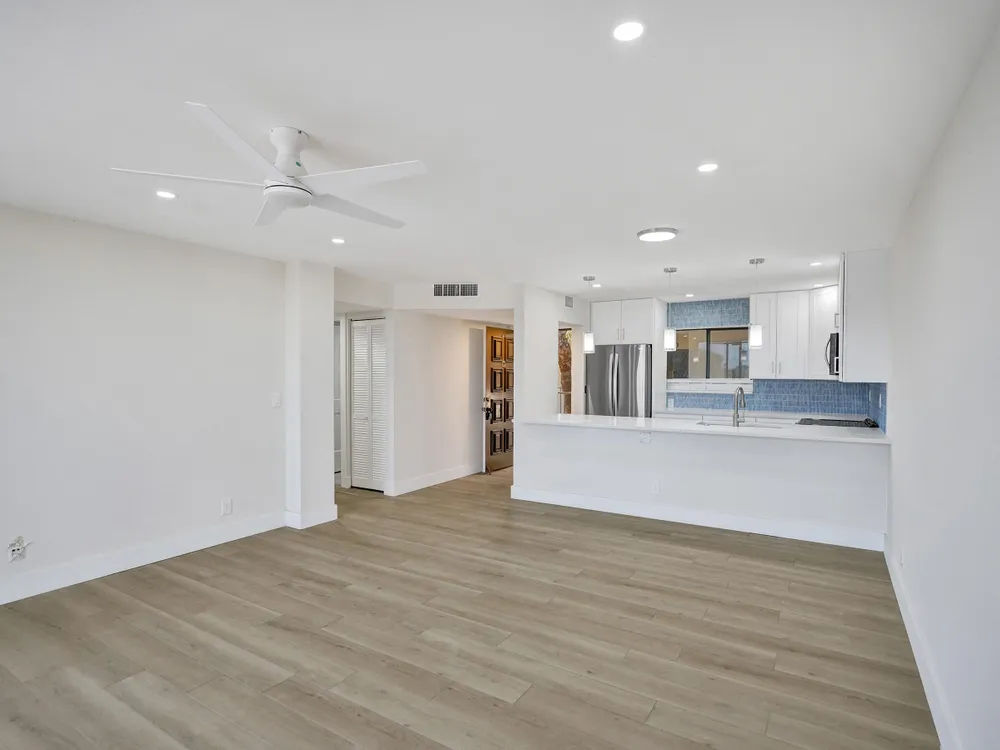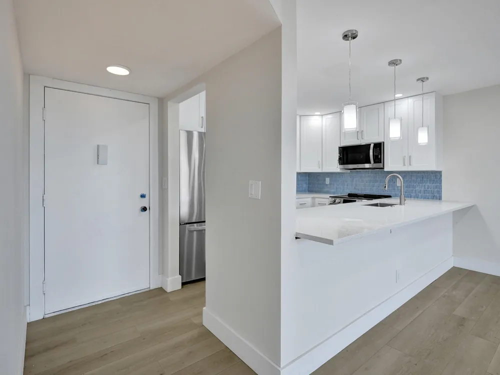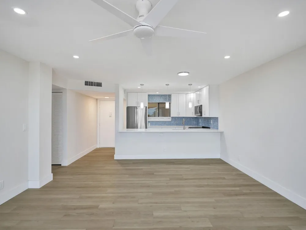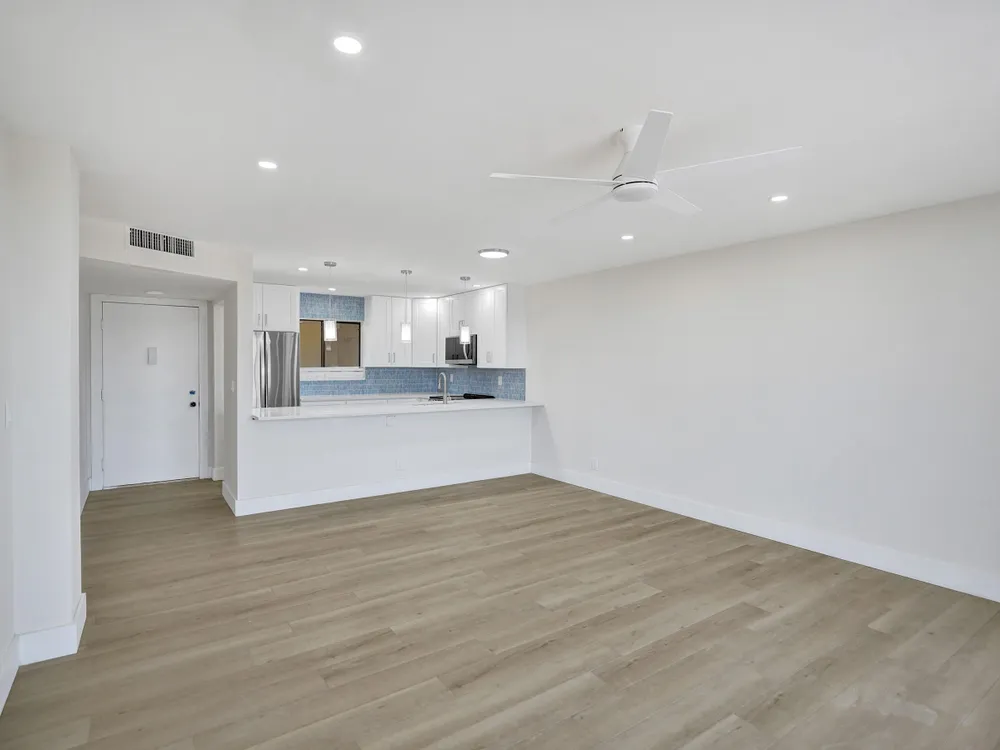 Exquisite top floor condo where modern sophistication meets attention to detail. Fully renovated from top to bottom, 2bedroom, 2-bathroom home offers fine luxury living. Ride the elevator to your oasis, where an open floor plan showcases high-end plank flooring and tons of natural light. NEW A/C System 2/7/2025 The gourmet kitchen boasts shaker cabinets, quartz countertops, stainless steel Smart Home enabled LG appliances, perfect for cooking and entertaining. Bathrooms have stunning large format tile, spa-like finishes. Recessed LED lighting throughout. Washer and dryer included. In a prestigious gated community, this condo offers a private lake, huge clubhouse and fully equipped gym. With 24/7 security.