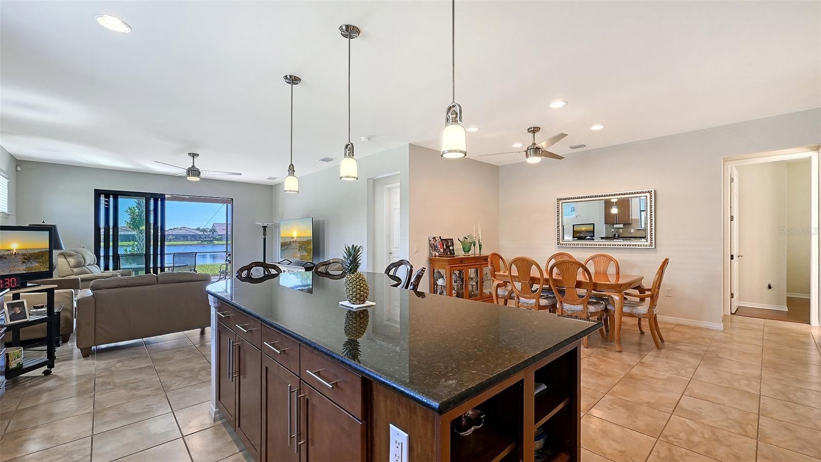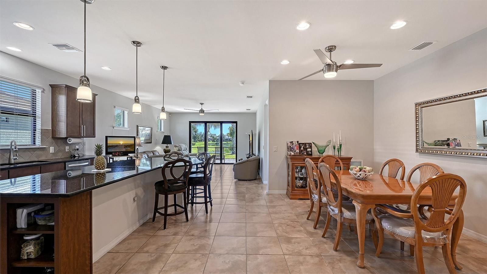 - Ceiling Fan(s), Eat-in Kitchen, Open Floorplan, Split Bedrooms, Stone Counters, Thermostat, Walk-In Closet(s), Window Treatments