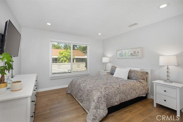 Welcome to this stunningly renovated Coastal Vibe 2Bd/2Bath end-unit home in the prestigious guard-gated Laguna Woods 55+ community. No stairs or steps! Inside, you’ll love the inviting white brick wood burning fireplace and designer kitchen with custom shaker cabinetry, farmhouse sink, quartz counters, and stainless-steel appliances. Wood laminate flooring, central heating and air, recessed lights, newer windows, and an interior full sized washer/dryer add style, comfort, and convenience, while custom Elfa closets maximize organization. Both bathrooms showcase modern upgrades and walk-in showers. A private patio offers the perfect outdoor retreat, ideal for relaxing or entertaining. This lovely home has an attached 1 car garage, a long (maybe 2 cars deep) driveway, single loaded street, and adjacent to preserved land all on a quiet cul-de-sac street! The HOA dues cover basic cable TV, water, and trash, along with an array of amenities including 5 Pools/ Spas, 7 Clubhouses, Golf, Tennis, Fitness Centers, Library, Golf Course Restaurant, Performing Arts Center, Equestrian Center, bus system around the community, to area shopping, restaurants, medical facilities, and over 200 clubs offering a vibrant social lifestyle. This is the perfect place to call home!