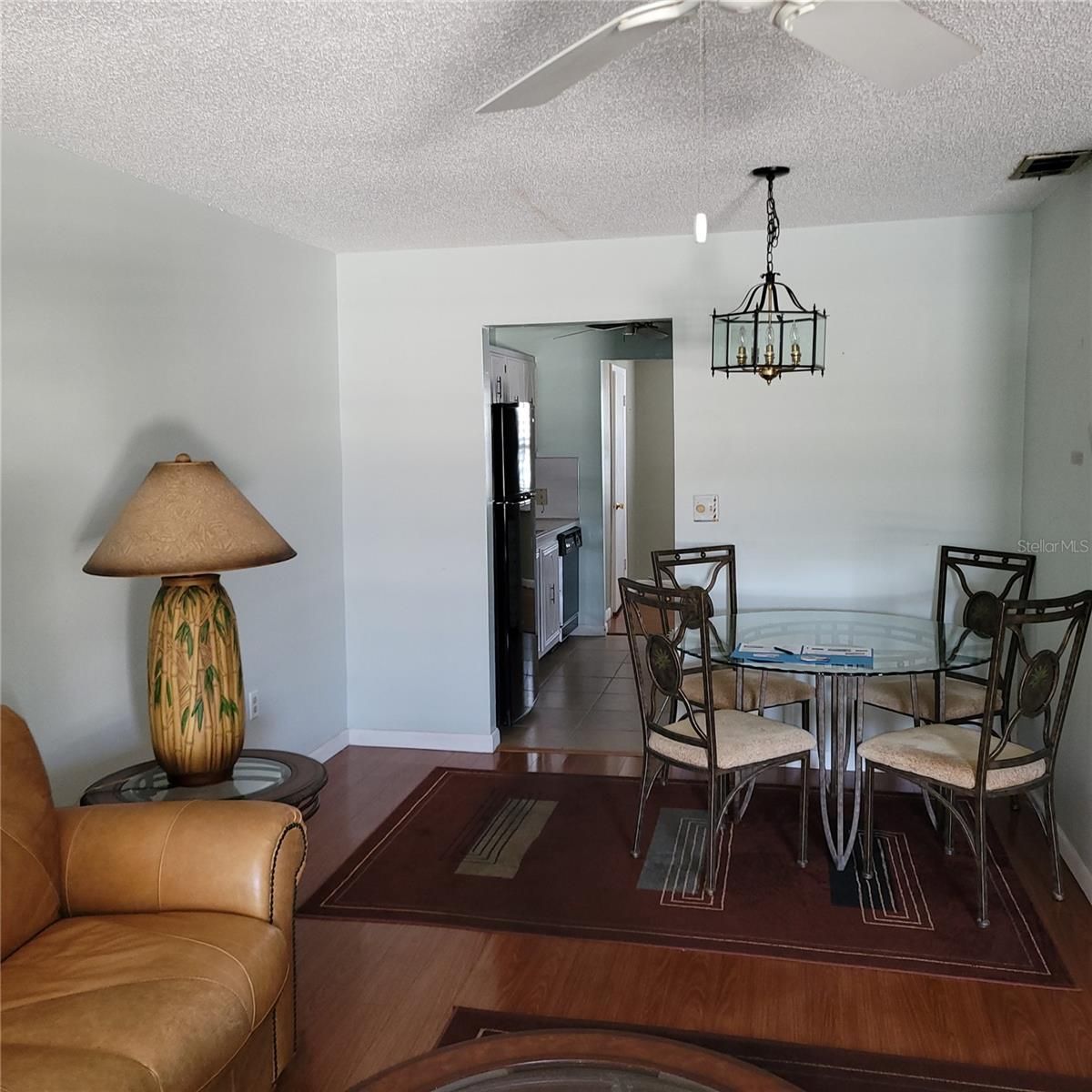 - Ceiling Fan(s), L-Shaped Dining Room, Living/Dining Room, Split Bedrooms, Thermostat, Window Treatments