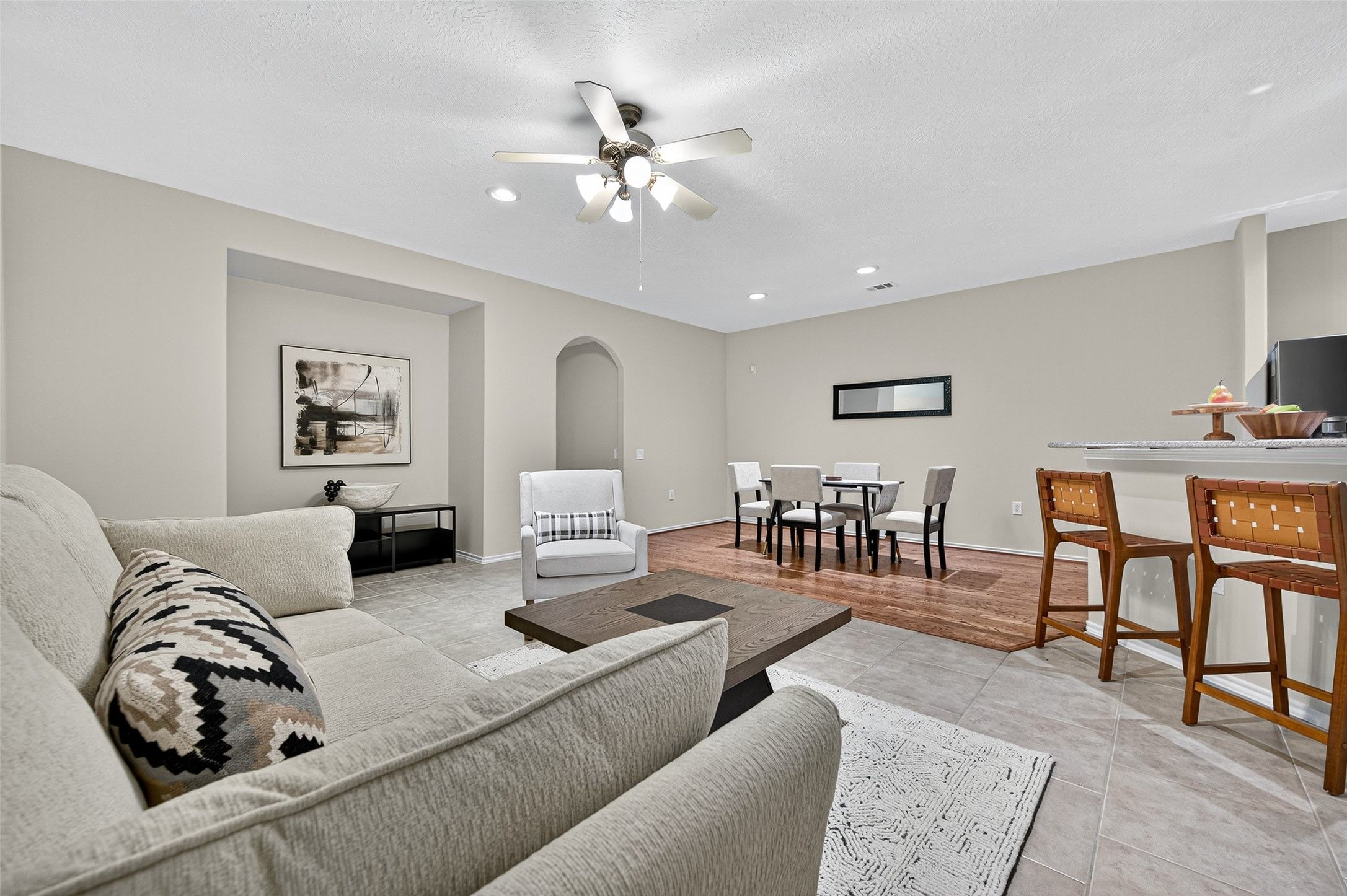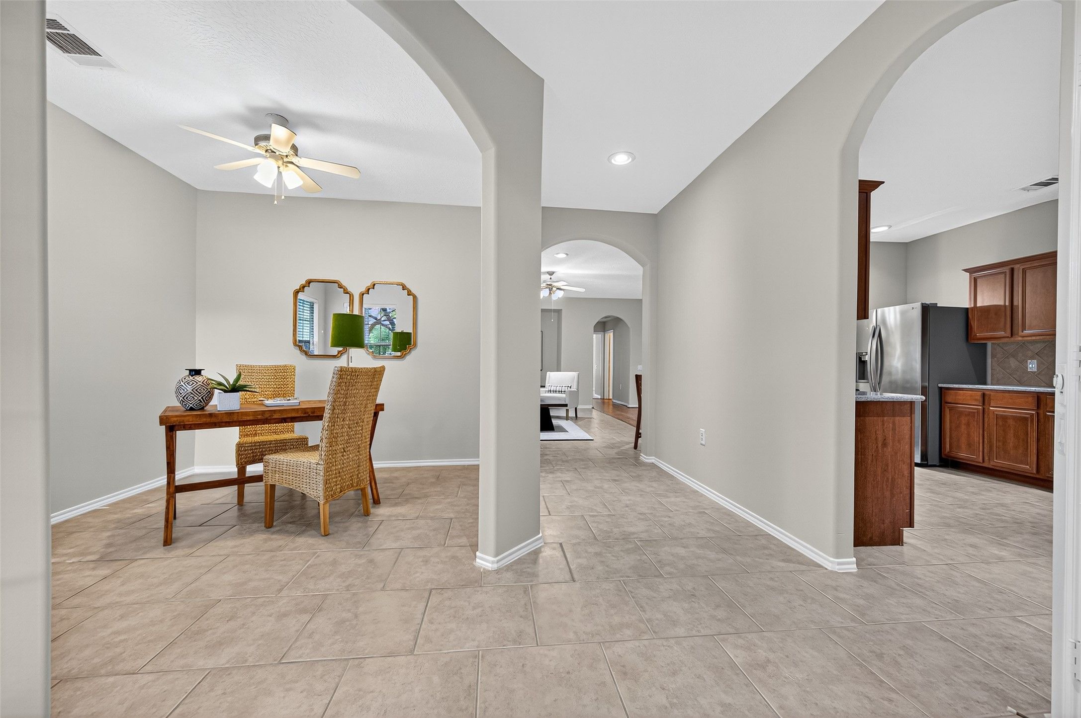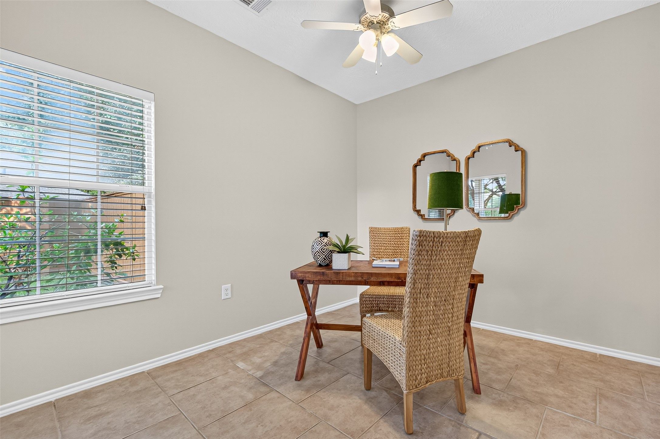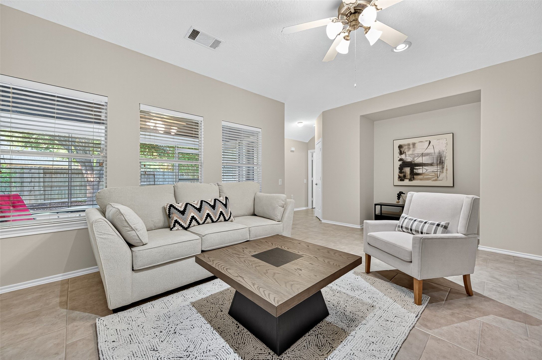 - Breakfast Bar, Granite Counters, Kitchen/Family Room Combo, Tub Shower, Makeup/Vanity Space, Walk-In Pantry, Window Treatments, Ceiling Fan(s)