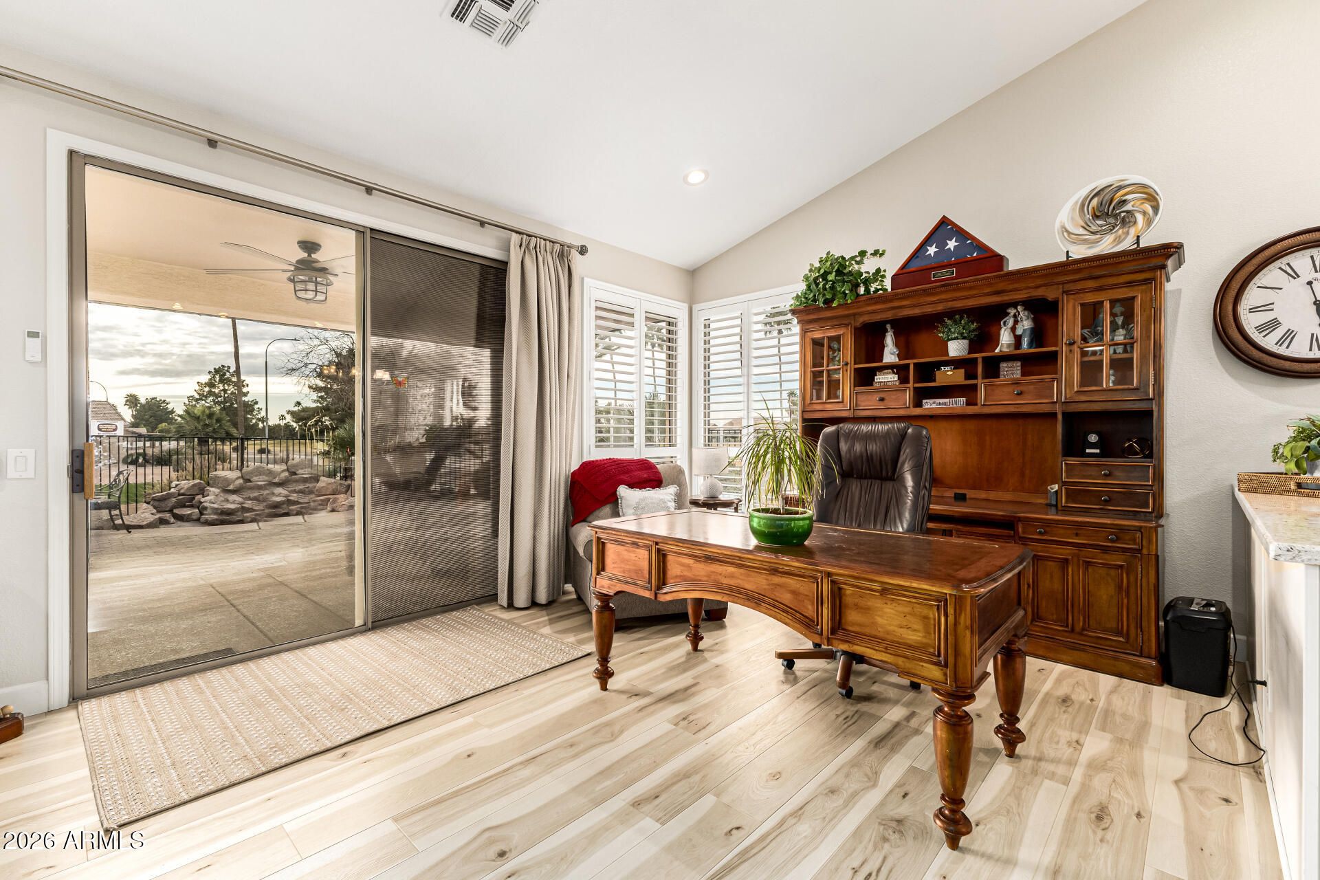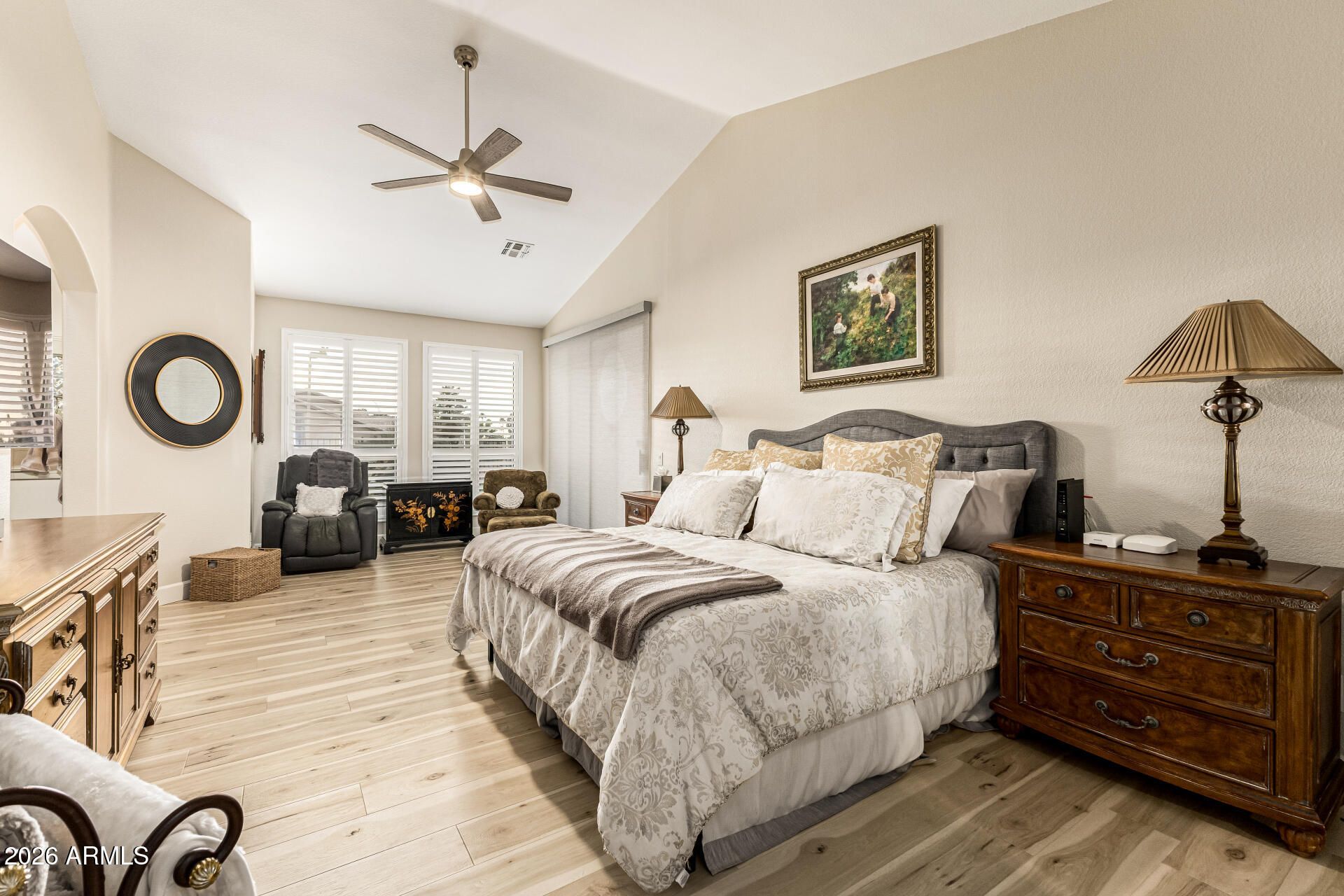 Showstopper on the Golf Course! Corner golf course lot in the gated 55+ community of Ironwood. Highly sought-after Barcelona floor plan with private casita. A charming paver courtyard welcomes you to either the main residence or the private casita--complete with its own bedroom, bath, and walk-in closet--perfect for guests or a home office. Step inside the main home through a brand-new iron entry door and discover new luxury vinyl plank flooring and updated baseboards throughout. The soaring vaulted great room offers flexible dining/den space and flows seamlessly into a beautifully updated kitchen featuring upgraded cabinetry, granite countertops, and newer stainless-steel appliances. The spacious primary suite includes a sitting area, an oversized walk-in closet, and a fully remodeled spa-inspired bath with dual vanities and a stunning walk-in super shower. The secondary bedroom and bath have also been newly remodeled with tasteful finishes. Enjoy Arizona living at its finest on the extended patio overlooking breathtaking golf course views--ideal for relaxing evenings or entertaining guests. All of this with the Unparalleled Community Lifestyle of Ironwood: Resort-style living with golf, tennis, pickleball, and a full calendar of activities in this premier gated community. Additional Highlights include: " Oversize garage with separate golf cart entrance " Garage cabinetry " Epoxied garage floor " New elegant built in Shutters (2025) " New A/C (2020) " Water Heater (2021) " Automatic sunscreens on rear patio (2025) A standout property combining premium upgrades, meticulous care, and an unbeatable location!