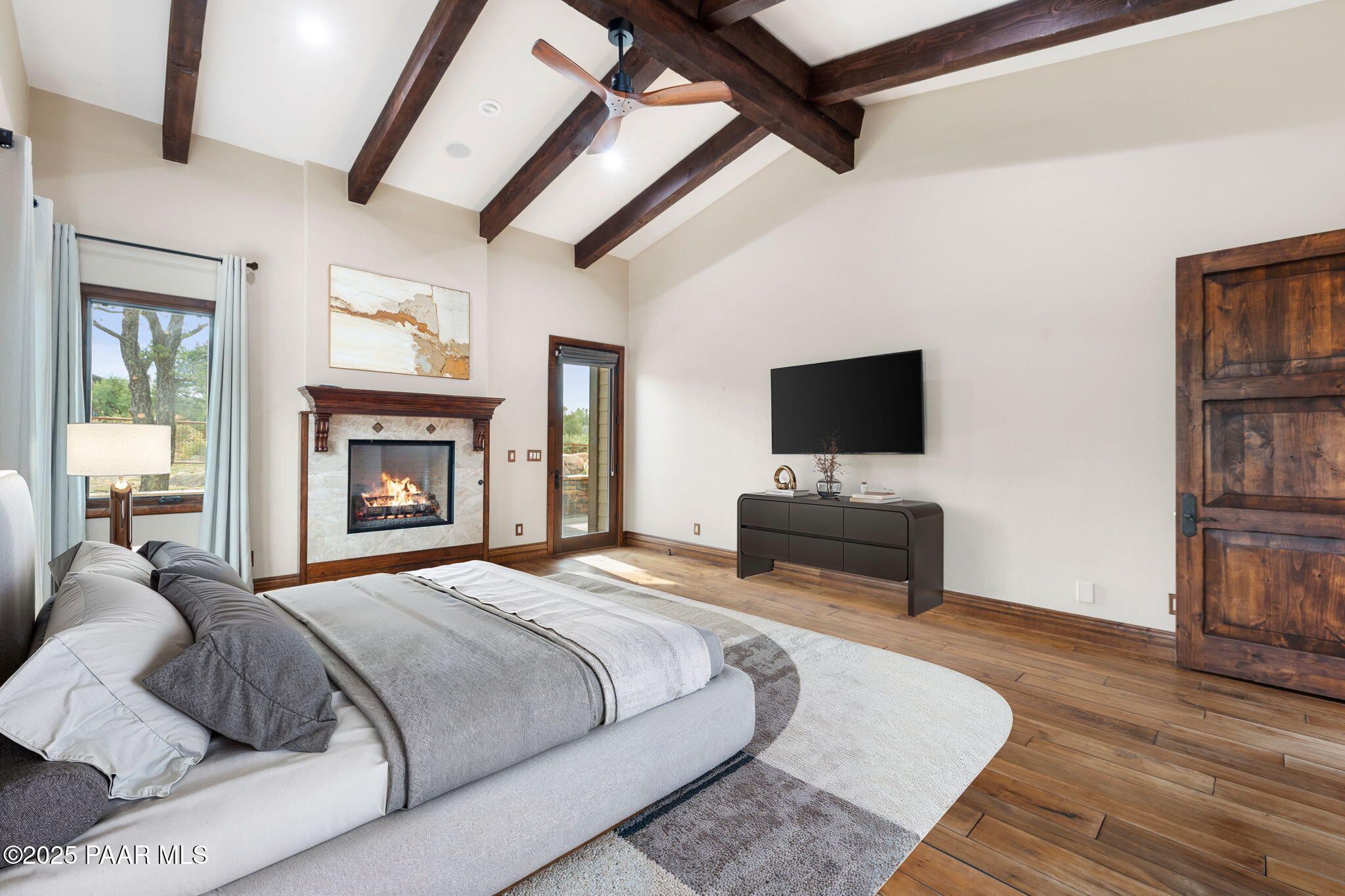 An incredible value awaits--Seller is covering the $40,000 Social Membership initiation fee to the Talking Rock Club for the Buyer! Mountain Rustic Elegance Meets Refined Luxury! Nestled on a 1.35-acre corner lot in the prestigious Talking Rock Ranch, this 5,178 SF estate exemplifies rustic mountain elegance blended with upscale living. The 4,697 SF main residence features 3 spacious bedrooms, 3.5 luxurious baths, and high-end finishes throughout--including rich walnut flooring, granite, onyx, tumbled marble, and travertine. The gourmet kitchen is a chef's dream, outfitted with top-of-the-line Wolf appliances, a butler's pantry, a one-of-a-kind custom mural, and two exquisite Cherry Corbel wood carvings by renowned Canadian artist Michael Shea. A separate 481 SF guest house includes a kitchenette and is thoughtfully positioned near its own garage and workshop--ideal for guests or multigenerational living.