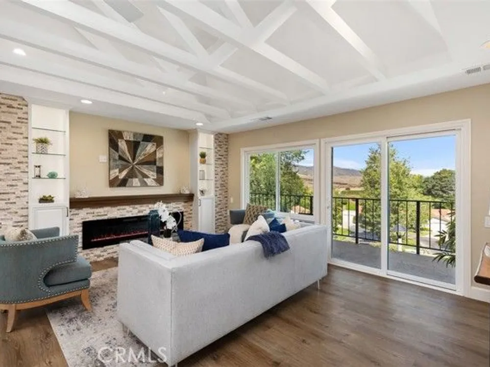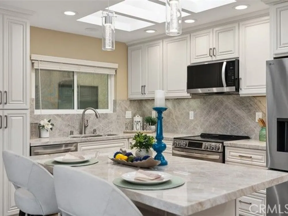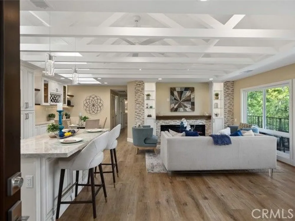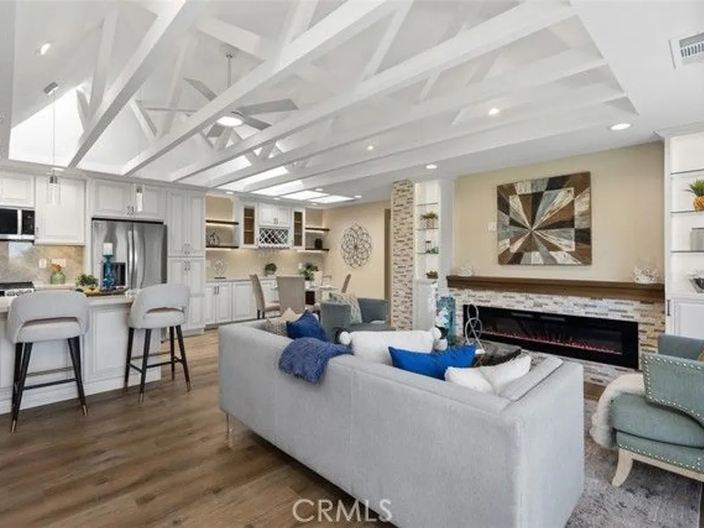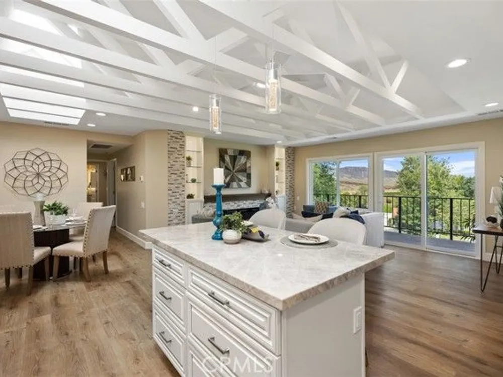 PRICE REDUCED! - WON'T LAST! Spectacularly Remodeled “Casa Vista” model home with convenient ground level access (no stairs and no one above) with panoramic views of Laguna Canyon Nature Preserve to the west with incredible sunsets and views eastward Saddleback Mountain. This 2 bedroom/2 bath property has been newly remodeled so you can avoid the hassle of permits and variances. As you approach this property you see a custom leaded glass front door. As you open the door and enter your new home you notice the 5 exposed rafters and 2 large skylights provide an open and very bright living space. THE LIVING ROOM features a fireplace/media wall with warm stone columns and building cabinets and lighted shelf units. The 72-inch fireplace provides both a visual fire experience and optional heat if desired. You almost missed the spacious storage closet as you enter on your right. THE KITCHEN boasts High End Cabinets and Taj Mahal Quartzite counters and backsplash and High-end LG appliances. An extra large kitchen island faces the great room and is perfect for dining or entertaining. Pull-out drawers in cupboards and island enhance your convenience. THE DINING ROOM features extra storage with custom built cabinets and lighted shelf and cabinets to feature your collectibles and wine. THE PRIMARY BEDROOM SUITE features his and hers closets with organizers. The primary bathroom has been redesigned with a spa tub with a built in heater. The bathroom cabinets have extra storage as well. Both bathrooms have special lighted/heated mirrors to avoid mirror moisture. The Second Bedroom features a Walk out slider to the patio mirrored closet with organizer. The Second Bathroom features a new shower and custom tiled wall and new fixtures as well. The Laundry closet features a high end, extra large capacity LG washer and dryer. This home also features new low-e glass windows and sliders for energy efficiency and to take advantage of the beautiful views from every room. There is also a new forced air furnace and A/C. Every detail has been handcrafted to satisfy even the most discriminating tastes. Enjoy the greenery, the mountains and sunset views from the patio. This home must be seen to appreciate. TOP OF THE LINE AT EVERY DETAIL. Laguna Woods Village has many amenities and boasts of having over 200 social clubs. HOA dues include Cable TV, trash, water, sewer, landscaping and much more. Must be 55 years old to live in the community.