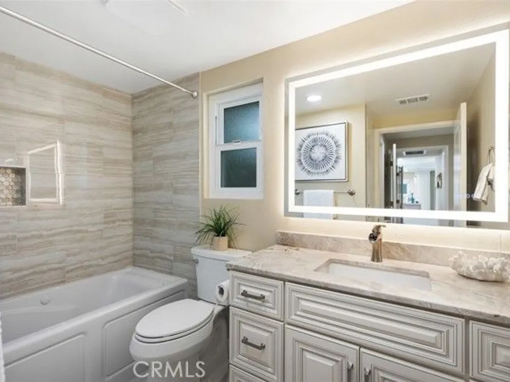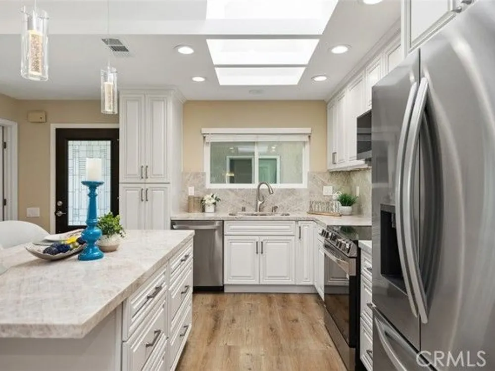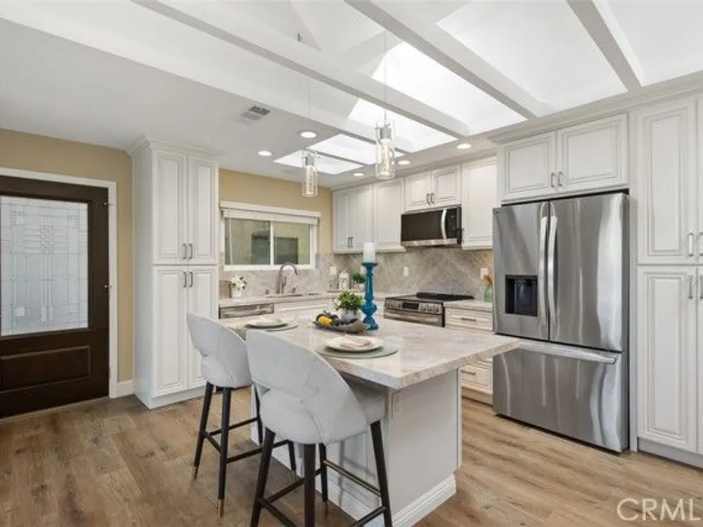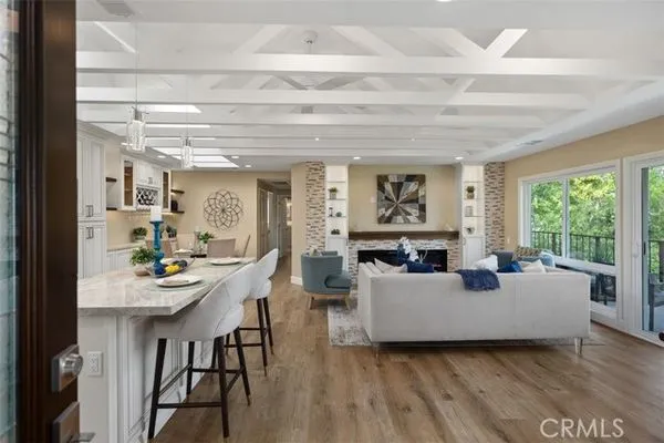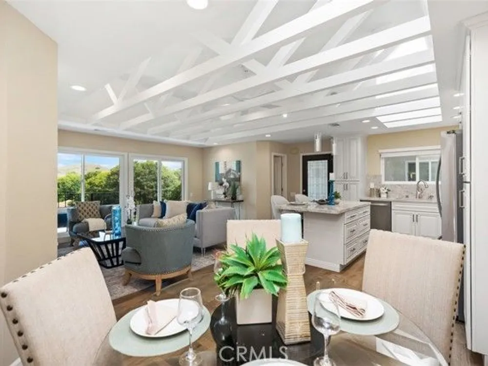 PRICE REDUCED! - WON'T LAST! Spectacularly Remodeled “Casa Vista” model home with convenient ground level access (no stairs and no one above) with panoramic views of Laguna Canyon Nature Preserve to the west with incredible sunsets and views eastward Saddleback Mountain. This 2 bedroom/2 bath property has been newly remodeled so you can avoid the hassle of permits and variances. As you approach this property you see a custom leaded glass front door. As you open the door and enter your new home you notice the 5 exposed rafters and 2 large skylights provide an open and very bright living space. THE LIVING ROOM features a fireplace/media wall with warm stone columns and building cabinets and lighted shelf units. The 72-inch fireplace provides both a visual fire experience and optional heat if desired. You almost missed the spacious storage closet as you enter on your right. THE KITCHEN boasts High End Cabinets and Taj Mahal Quartzite counters and backsplash and High-end LG appliances. An extra large kitchen island faces the great room and is perfect for dining or entertaining. Pull-out drawers in cupboards and island enhance your convenience. THE DINING ROOM features extra storage with custom built cabinets and lighted shelf and cabinets to feature your collectibles and wine. THE PRIMARY BEDROOM SUITE features his and hers closets with organizers. The primary bathroom has been redesigned with a spa tub with a built in heater. The bathroom cabinets have extra storage as well. Both bathrooms have special lighted/heated mirrors to avoid mirror moisture. The Second Bedroom features a Walk out slider to the patio mirrored closet with organizer. The Second Bathroom features a new shower and custom tiled wall and new fixtures as well. The Laundry closet features a high end, extra large capacity LG washer and dryer. This home also features new low-e glass windows and sliders for energy efficiency and to take advantage of the beautiful views from every room. There is also a new forced air furnace and A/C. Every detail has been handcrafted to satisfy even the most discriminating tastes. Enjoy the greenery, the mountains and sunset views from the patio. This home must be seen to appreciate. TOP OF THE LINE AT EVERY DETAIL. Laguna Woods Village has many amenities and boasts of having over 200 social clubs. HOA dues include Cable TV, trash, water, sewer, landscaping and much more. Must be 55 years old to live in the community.