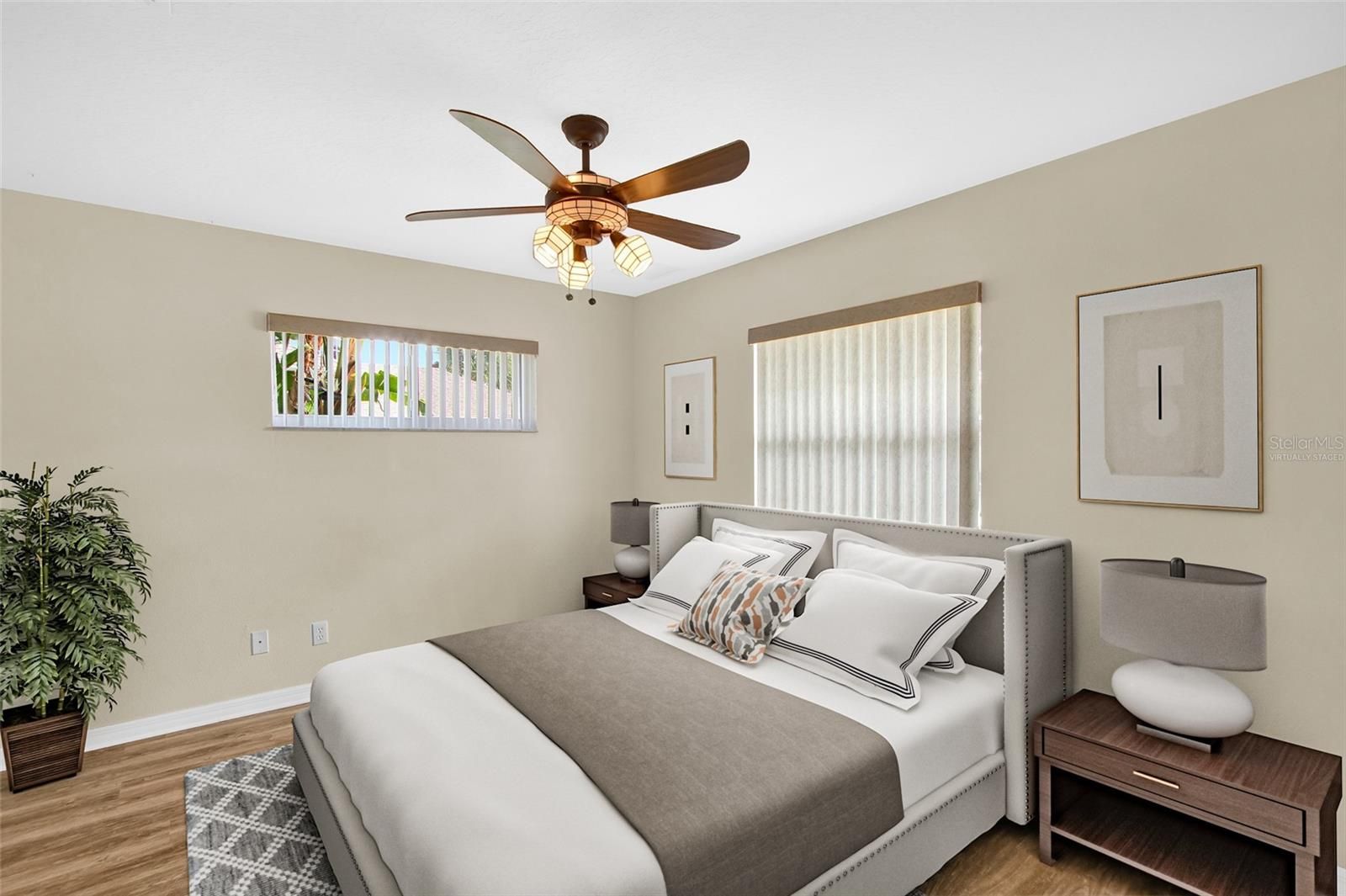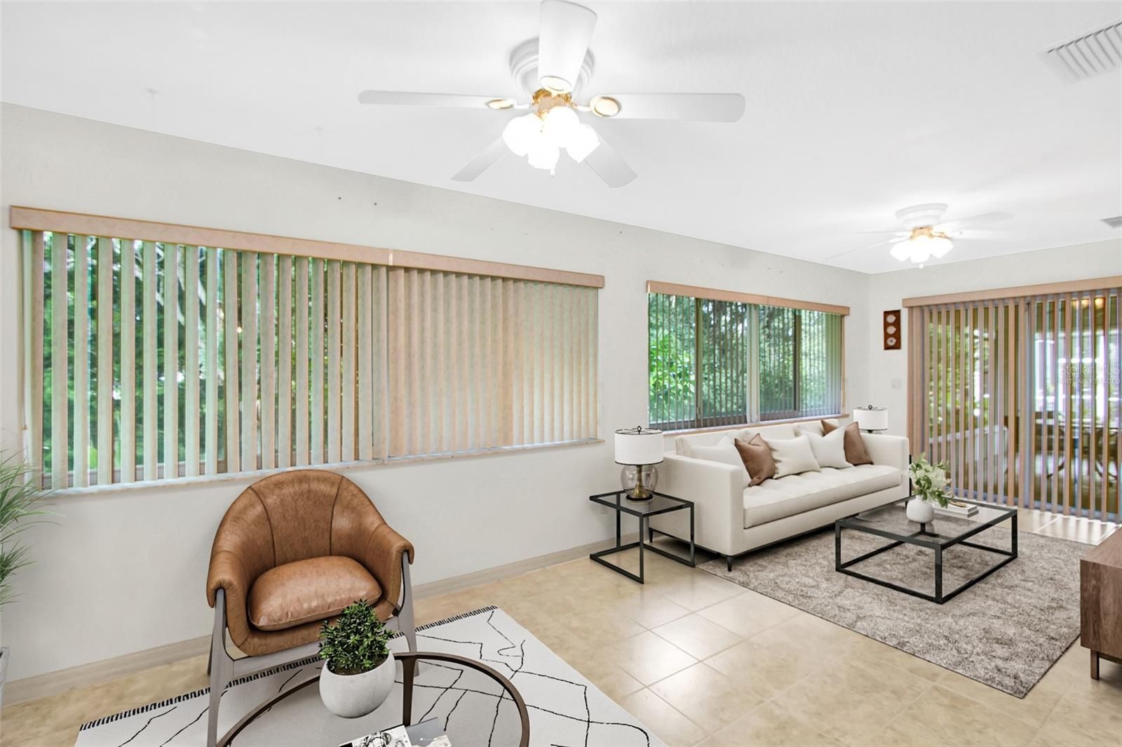 - Ceiling Fan(s), High Ceilings, Window Treatments