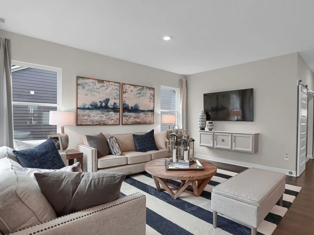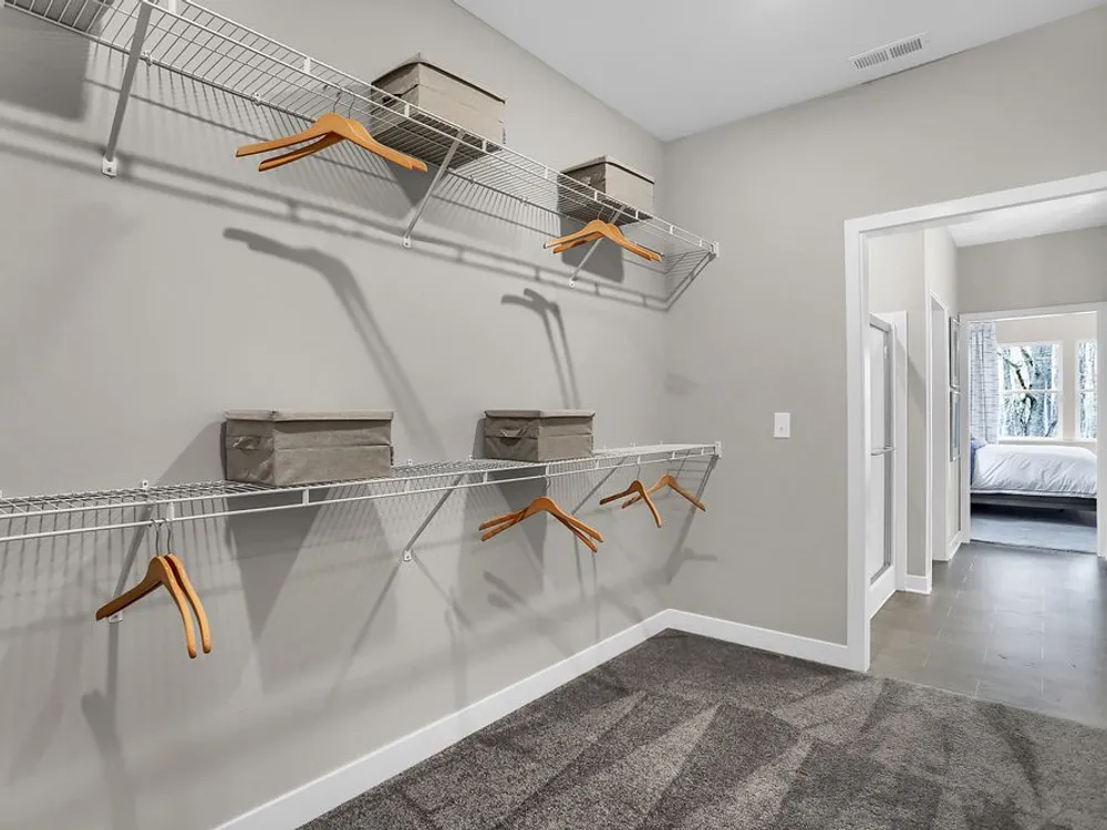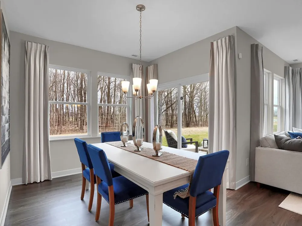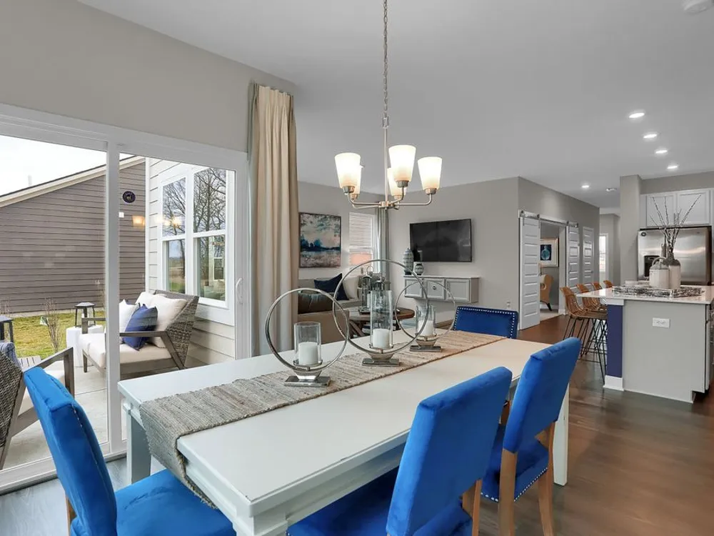 Easton is a new master-planned community of brand-new single-family homes for active adults ages 55+ now selling in Avon, IN. Avon is a charming city with something to offer people in all walks of life. Residents can enjoy outdoor recreation at Avon Town Hall Park or explore the multiuse paths along the Bicentennial Trail. A gracious foyer leads into the open-concept layout of this new single-family home, which connects a kitchen featuring a large center island and pantry, a Great Room and a dining room. An adjacent covered patio is the perfect spot to relax and enjoy the outdoors. Flex space is ideal for an office, craft room or even an at-home tasting room. The generously sized owner's suite boasts a luxurious spa-inspired bathroom and large walk-in closet directly connected to the laundry room for added convenience. A two-car garage with additional storage is included. *Photos/Tour of model may show features not selected in home.