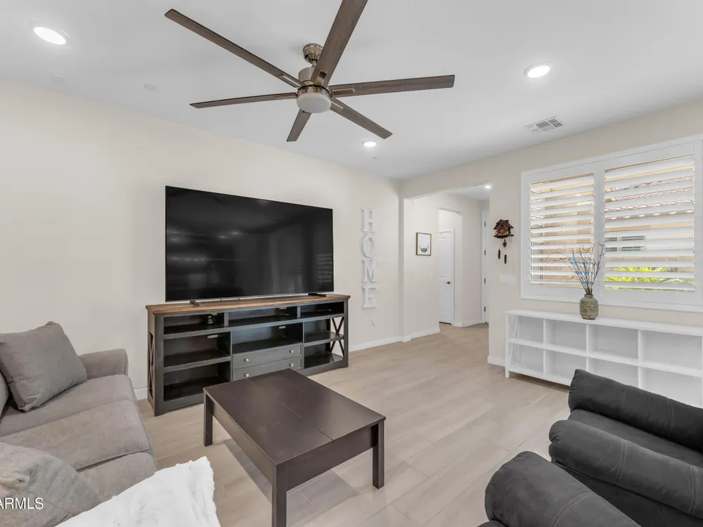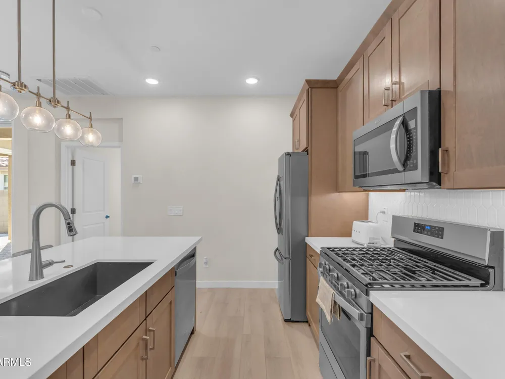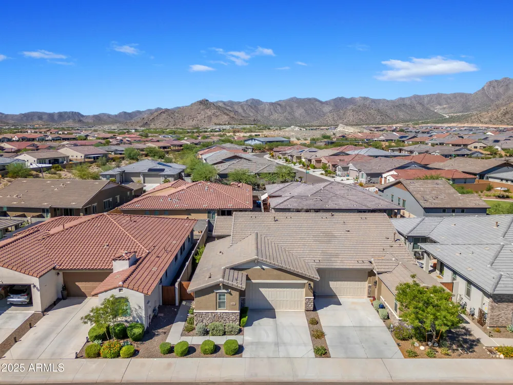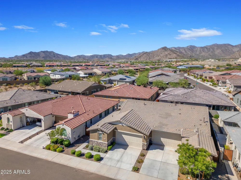 Welcome to Victory at Verrado - Buckeye's premier 55+ community! This stunning 2022-built patio home blends modern design with the resort-style lifestyle you've been dreaming of. Featuring 2 bedrooms plus 2.5 baths, including dual master suites, this smartly designed single-level home offers comfort, flexibility, and privacy. Step inside to an open-concept living space highlighted by a gourmet kitchen with a gas cooktop, quartz counters, island seating, and walk-in pantry. Enjoy seamless indoor/outdoor living with a covered patio and low-maintenance desert landscaping. The split master layout includes spa-inspired baths with dual vanities, walkin showers and private throne rooms. Located in the highly sought-after Victory District, you'll enjoy access to world-class amenities, Victory Course at Verrado, The Victory Club and Spa, 4 pools, fitness center, pickleball courts, hiking and biking trails, and a vibrant social calendar. HOA covers front yard maintenance so you can relax and enjoy life! With a 2-car garage, upgraded finishes, and a prime location just minutes from Verrado's Main Street, this home is the perfect blend of luxury and convenience. Don't miss your chance to live the lifestyle you deserve in Victory at Verrado!