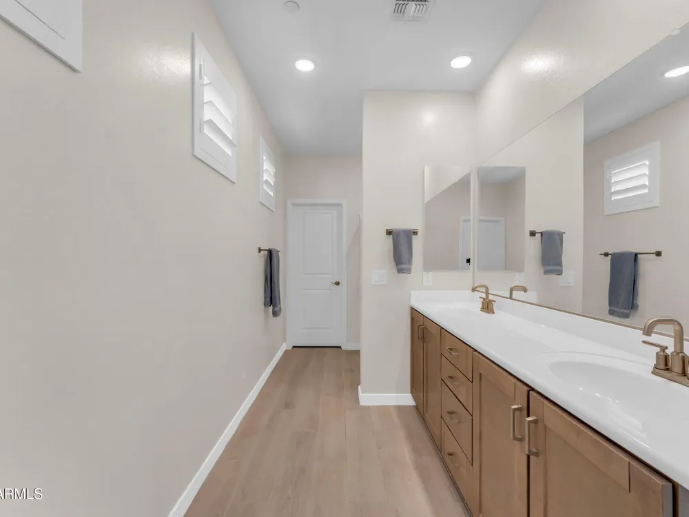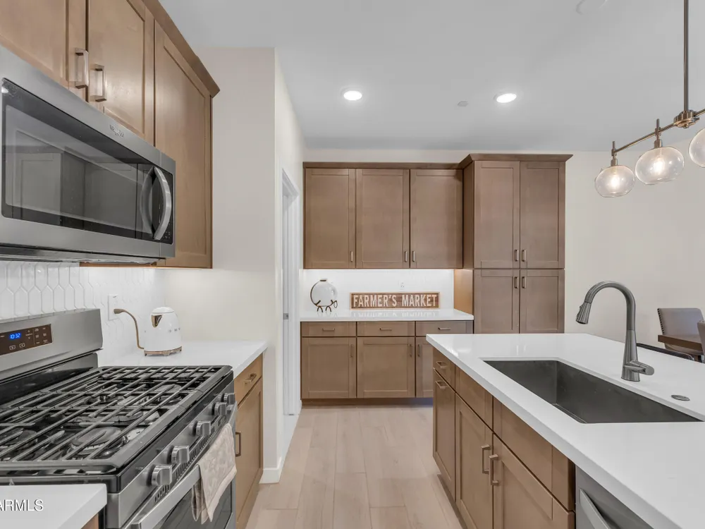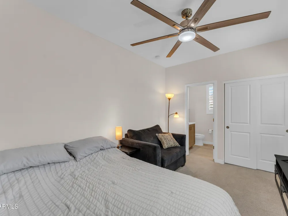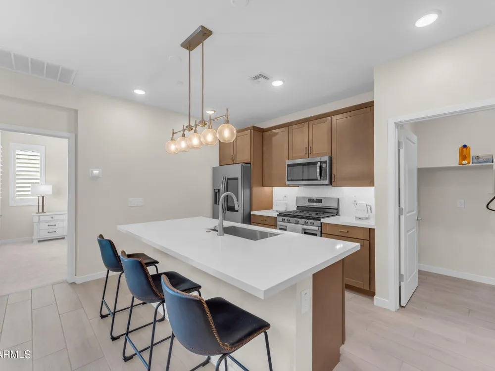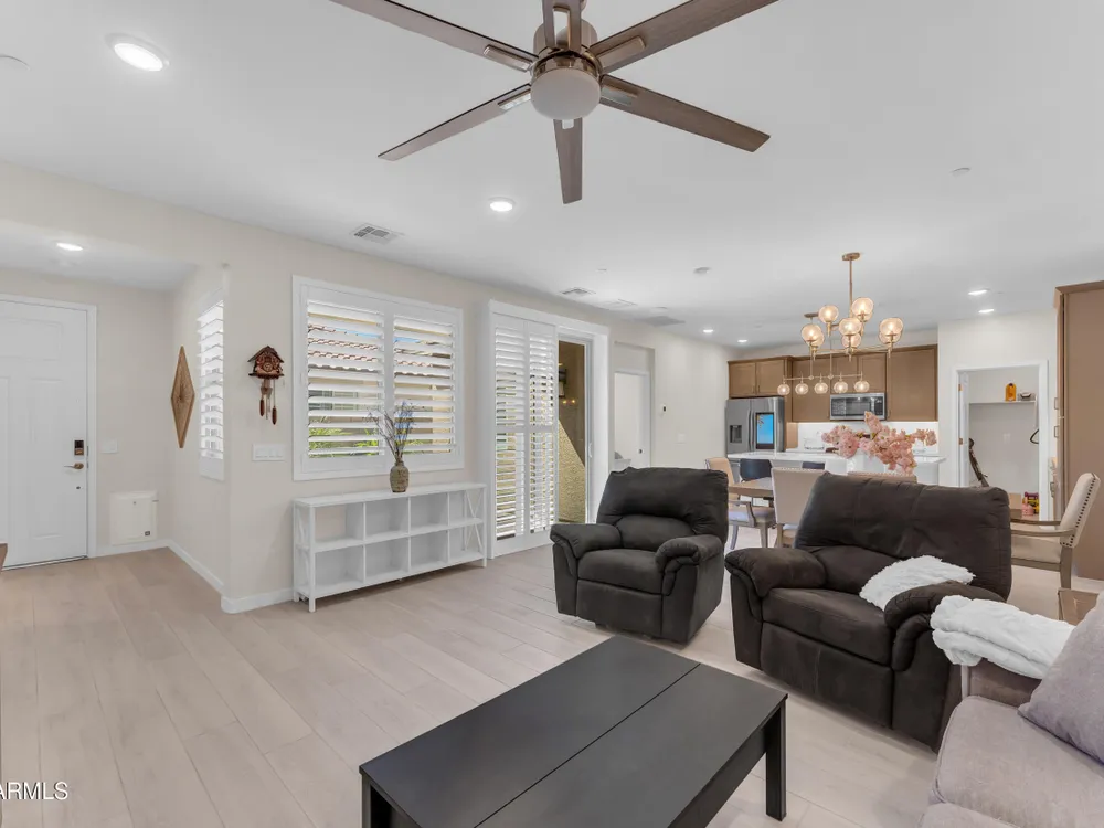 Welcome to Victory at Verrado - Buckeye's premier 55+ community! This stunning 2022-built patio home blends modern design with the resort-style lifestyle you've been dreaming of. Featuring 2 bedrooms plus 2.5 baths, including dual master suites, this smartly designed single-level home offers comfort, flexibility, and privacy. Step inside to an open-concept living space highlighted by a gourmet kitchen with a gas cooktop, quartz counters, island seating, and walk-in pantry. Enjoy seamless indoor/outdoor living with a covered patio and low-maintenance desert landscaping. The split master layout includes spa-inspired baths with dual vanities, walkin showers and private throne rooms. Located in the highly sought-after Victory District, you'll enjoy access to world-class amenities, Victory Course at Verrado, The Victory Club and Spa, 4 pools, fitness center, pickleball courts, hiking and biking trails, and a vibrant social calendar. HOA covers front yard maintenance so you can relax and enjoy life! With a 2-car garage, upgraded finishes, and a prime location just minutes from Verrado's Main Street, this home is the perfect blend of luxury and convenience. Don't miss your chance to live the lifestyle you deserve in Victory at Verrado!