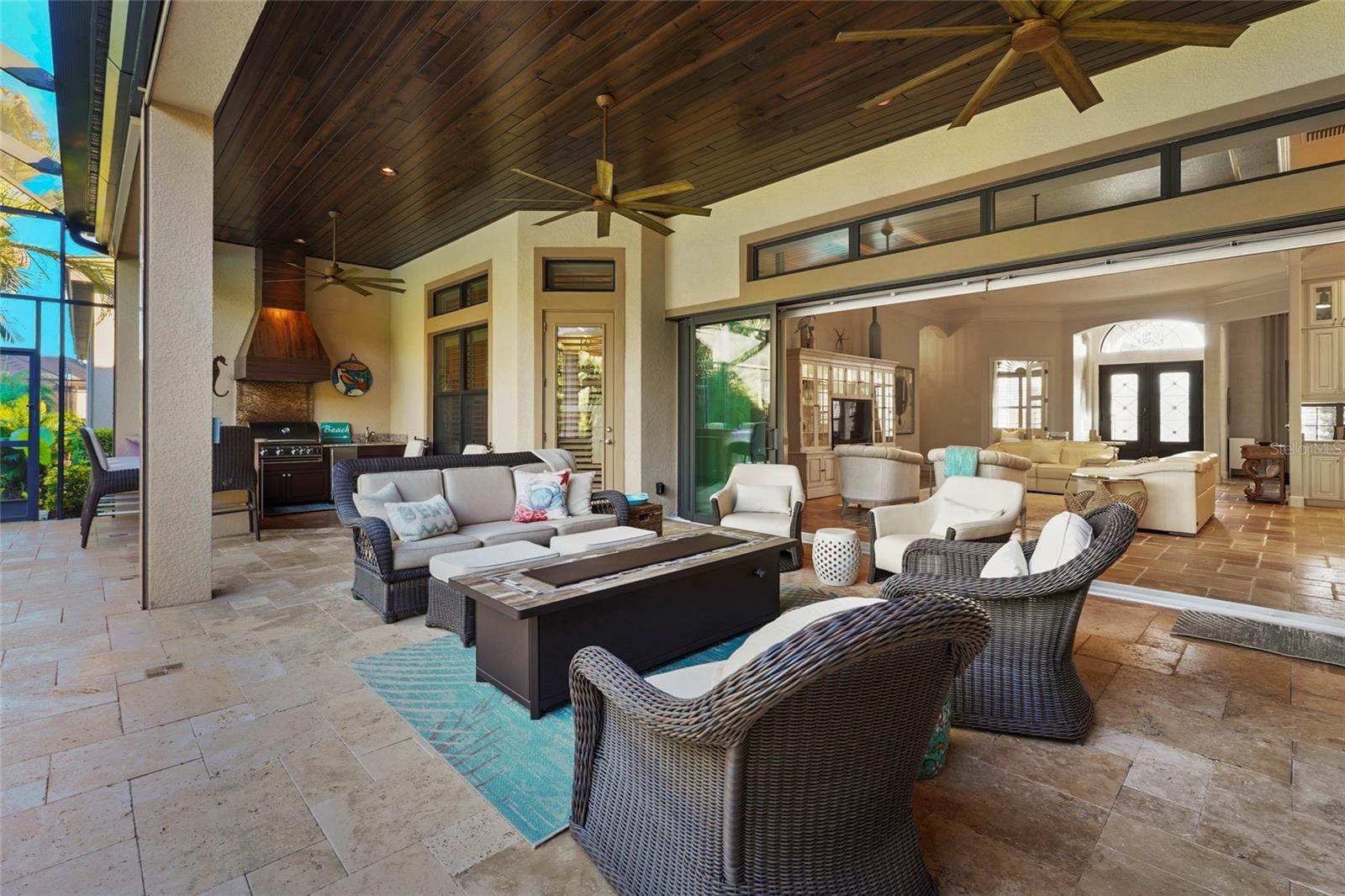 This beautifully updated Mercedes Model Home is located in the gated, maintenance-free community of Legacy Estates on Esplanade at Palmer Ranch. Built in 2017, this home offers 3,639 sq. ft. of living space, a bonus room, and a 3-car garage, enhanced by extensive structural and designer upgrades. Interior highlights include custom wood shutters, Hunter Douglas lanai blinds, extended crown molding, custom-painted trays and niches, a gourmet kitchen with extended cabinetry, entry alcove cabinets matching the kitchen, and fully customized storage systems in all bedrooms, pantry, and hall closets. The third bedroom features a Closet Tec Murphy bed, and the office is fully built out with custom cabinetry. Major mechanical improvements include a Kohler 30KW whole-house generator, air-conditioned garage, Culligan whole-house water softener and RO system, Storm Smart roll-down shutters, impact windows (minus aquarium window), smart-home technology, security system, and a 220V line for EV charging. Outdoor living features a pool and spa, travertine pavers, southern yellow pine lanai ceiling, extended driveway, iron double entry doors, and an outdoor kitchen with ice maker, refrigerator, and new 2025 BLAZE grill. Legacy Estates on Esplanade at Palmer Ranch provides world-class amenities, including: • On-site Bahama Bar restaurant • Resort-style pool, resistance pool, splash park & hot tub • Fitness center and private fitness studio with daily classes • 8 pickleball courts, 2 tennis courts & 3 dog parks • Nature trail with direct access to the Legacy Trail A perfect blend of luxury upgrades and an active-lifestyle community—schedule your private showing today!