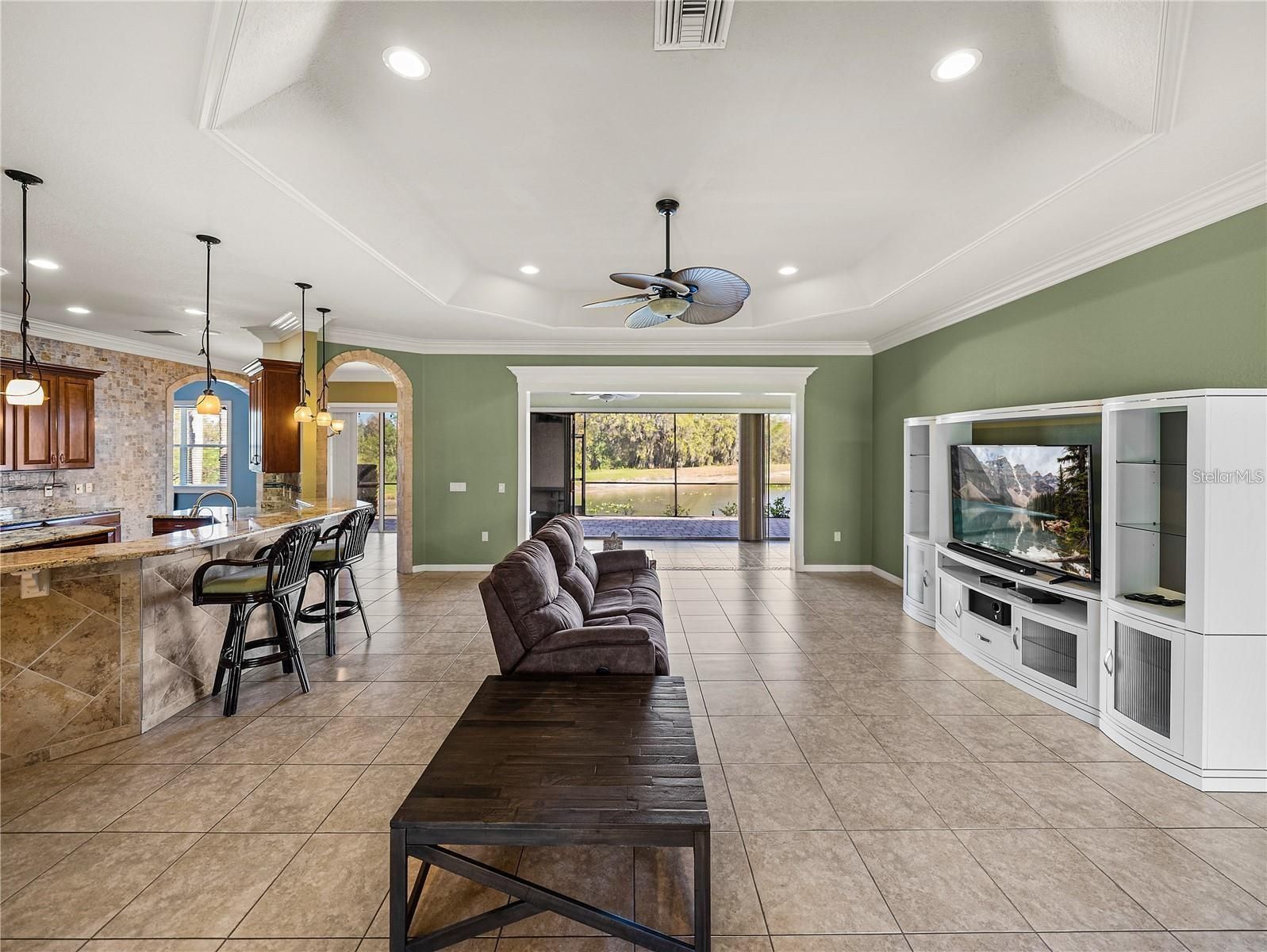 - Ceiling Fan(s), Coffered Ceiling(s), Crown Molding, Eat-in Kitchen, High Ceilings, Living/Dining Room, Open Floorplan, Stone Counters, Walk-In Closet(s), Window Treatments