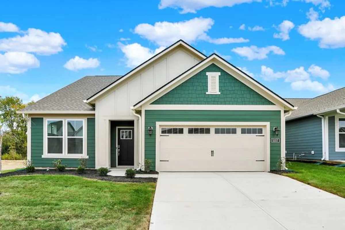 Easton by Lennar in Avon is the premier 55+ Active Adult Lifestyle community and is part of the larger Easton Grey Development! This Shafer is a 2 bedroom home with a study, 2 full bathrooms, and a 2 car. Host the entire family for the holidays in the Great Room with a cozy Gas Fireplace and opens to the dining nook and separate kitchen. The Kitchen is great for entertaining and is complete with spacious cabinets, an LG stainless steel gas range, microwave, dishwasher and even the refrigerator! Unwind in the primary bedroom with an ensuite bathroom that includes a luxury tile shower and separate spacious walk-in closet. Grill out on the concrete patio and host a wine tasting or game night on the covered porch. HOA fees include full lawn maintenance and access to the future Nottingham Clubhouse with a fitness center, on-site HOA manager, on-site activities director, pickleball courts, splash pool and lap pool, and more resort style amenities! Purchase now for an October move-in! Prices, dimensions and features may vary and are subject to change. Photos are for illustrative purposes only. *Photos/Tour of model may show features not selected in home.