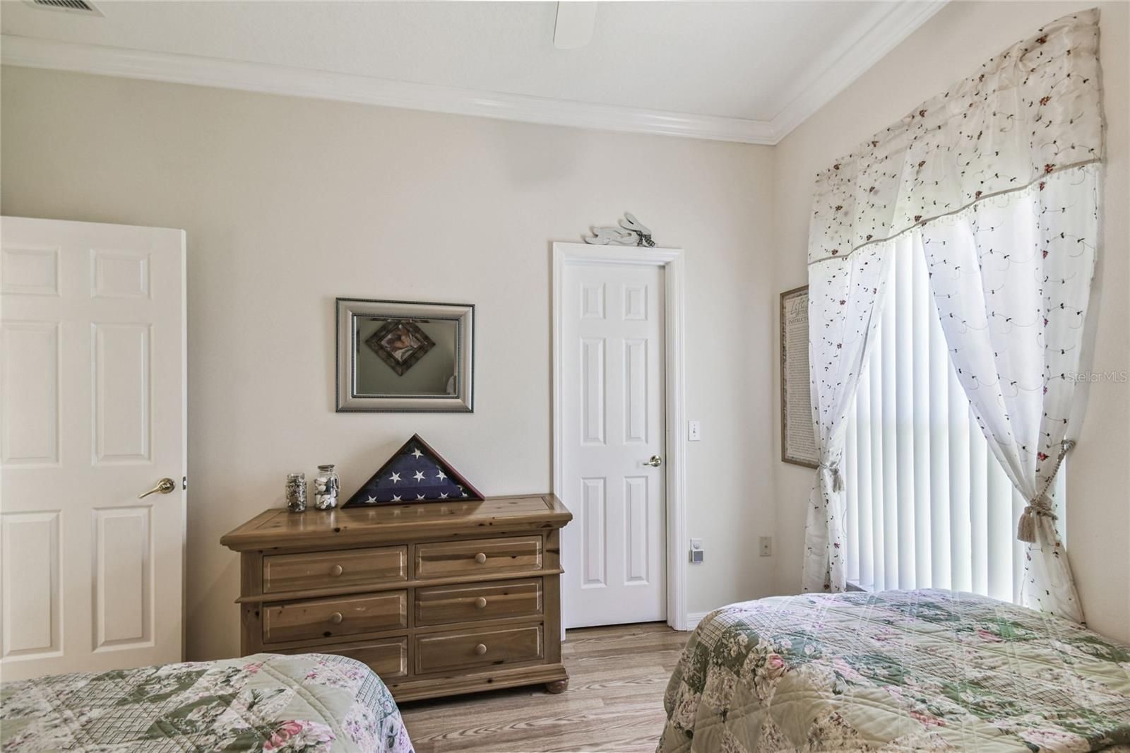 Exquisite Allegro model nestled on a lush conservation lot and showcasing thoughtful upgrades throughout. NEW ROOF in 2022. NEW HVAC 2021. HWH 2020. **See the FULL LENGTH 3D MATTERPORT VIDEO on Tour Link 1. ** This impeccably maintained home offers 2 bedrooms, 2 baths, plus a spacious DEN—perfect for a hobby room or optional third bedroom. Beautiful CERAMIC TILE on the DIAGONAL welcomes you into this elegant residence, highlighted by CROWN MOLDING in all living areas.. The kitchen boasts GRANITE countertops, a travertine stone backsplash, 42" cabinets with PULL-OUT SHELVES, and a convenient closet pantry. The adjacent dining area, featuring a charming BAY WINDOW bump-out, makes entertaining a delight. Sliding glass doors lead to the SCREENED AND COVERED lanai—an ideal spot to unwind and enjoy a relaxing evening. Relax with an evening glass of wine or curl up with a good book and enjoy the calming sounds of nature.The PRIMARY SUITE includes an EXTENDED BAY window, laminate flooring, and a walk-in closet. The ENSUITE BATH offers a tiled WALK-IN shower, raised vanities with DUAL SINKS, and a private water closet. The second bedroom offers a walk-in closet and is located on the opposite side of the home in this desirable split floor plan, with the adjacent full bath providing added convenience for your guests. Come discover all the great amenities and activities this active 55+ community has to offer. There’s something for everyone! Enjoy the lifestyle you’ve been waiting for — call today for your private viewing. The HOA: - maintains the LANDSCAPING & IRRIGATION systems in the common areas as well as at individual homesites - maintains the roads throughout the community - PROVIDES SECURITY with gate guards and mobile patrols including the Polk County Sheriff - allows AUTOMATED GATE ACCESS for residents via license plate readers - provides residents with Fiber Optic Internet & TV service.***Poinciana Lakes Plaza is a MAJOR NEW SHOPPING CENTER that opened directly across from the Solivita Main Gate in Summer of 2024. It features Sprouts Grocery, TJ MAXX, Ross, Burlington, Rack Room Shoes, 5 Below, Ulta, Outback, First Watch, 5 Guys, Urgent Care, Dentist, TD Bank, Petco & Hair Cuttery PLUS MORE TO COME.***