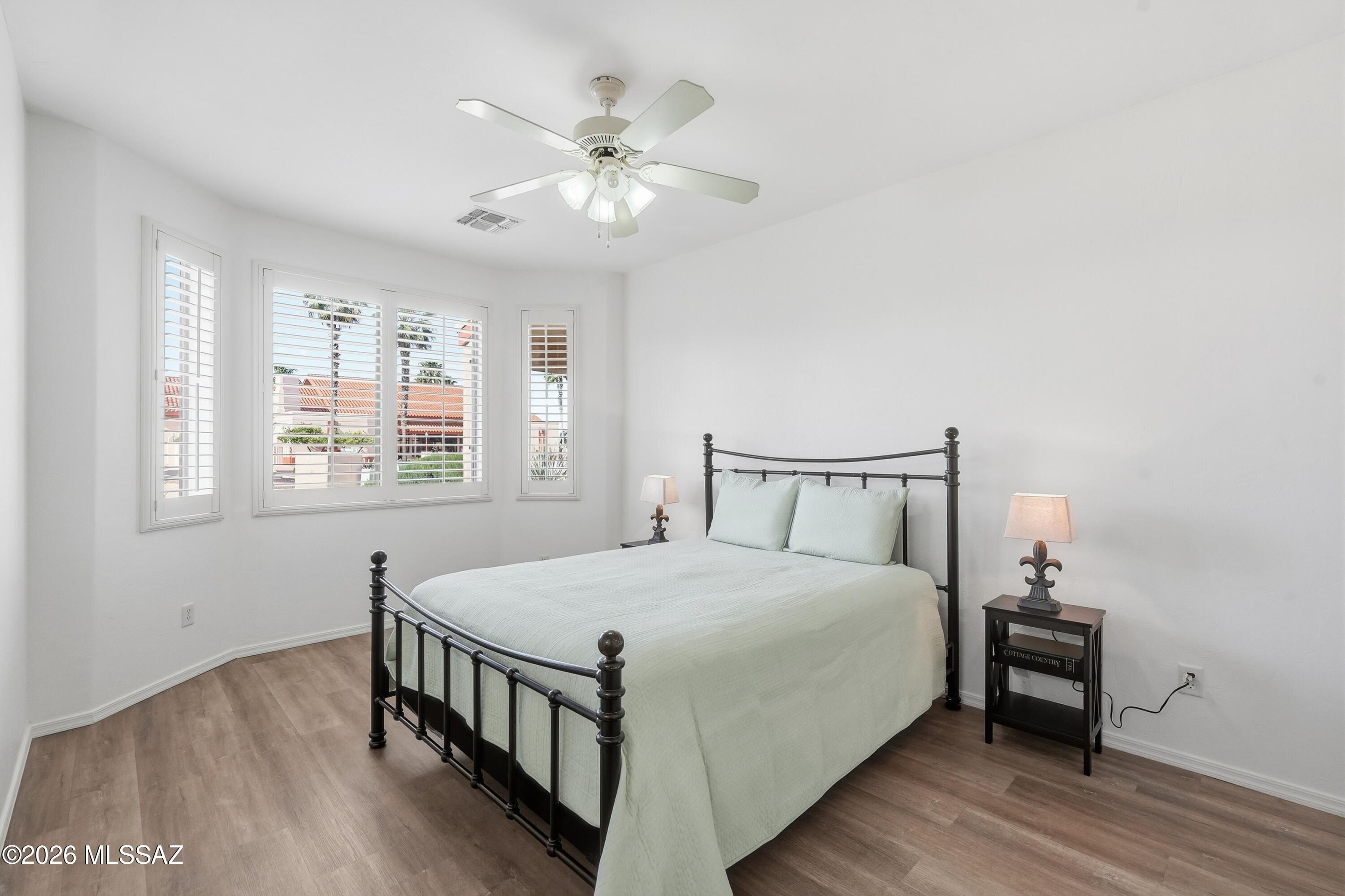 Beautifully updated 2-bedroom, 2-bath, 1,283 sq ft townhome in the highly desirable Casa Primavera / Canyon View Estates active adult community. Ideally positioned on a premier corner lot, this home offers exceptional privacy with three sides of open views, convenient additional parking, and immediate access to the heated pool, spa, and clubhouse. A lush, open green space just behind the home enhances the sense of tranquility and outdoor enjoyment Recent improvements include a new HVAC March 2026, water heater, and a recoated roof-providing efficiency and long-term value. Freshly painted inside and out. Elegant window shutters, and a modernized kitchen featuring quartz countertops and updated appliances-perfect for everyday living and entertaining. The open-concept living
