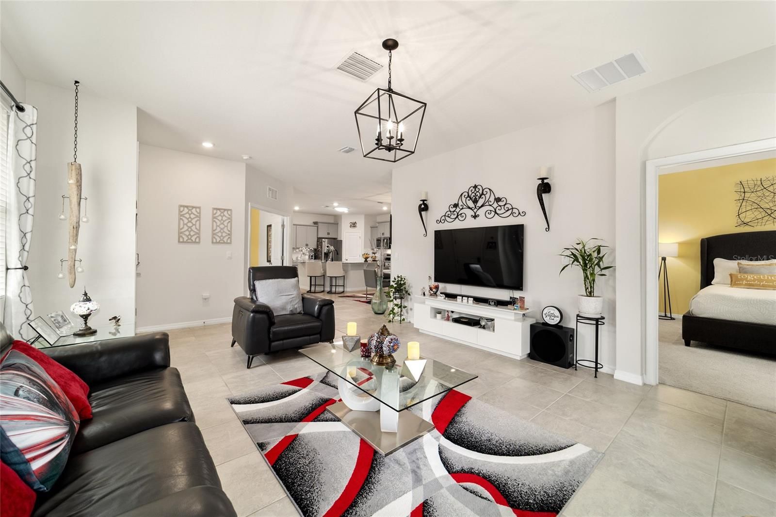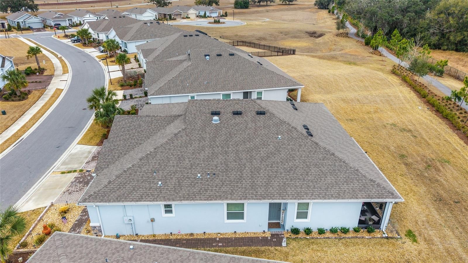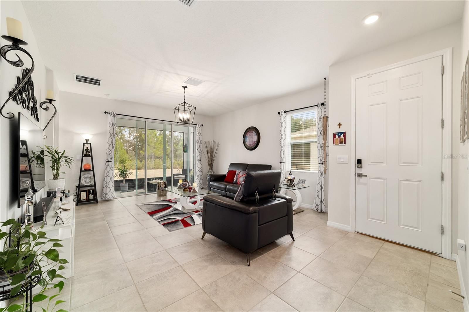 Nestled on a premium lot with no rear neighbors, this impeccably maintained 2023 Siesta model offers the perfect blend of contemporary design and natural tranquility. Backing directly onto one of the community's peaceful walking trails, this home provides a rare level of privacy in the highly sought-after all-ages section of Ocala Preserve. Built in 2023, this 2-bedroom, 2-bath home also includes a versatile flex room with French doors and a walk-in closet ideal for a third bedroom, home office, or den. The kitchen is a standout, featuring tile flooring, stainless steel appliances, granite countertops, a classic subway tile backsplash, staggered cabinetry with crown molding, a large center island, a spacious walk-in pantry, and a solar tube that fills the space with natural light. The tiled dining area is conveniently located just off the kitchen, perfect for everyday meals and entertaining. The open-concept living area flows seamlessly from the kitchen and dining space, complete with blinds and a 3-panel sliding glass door that leads to the screened lanai. Step outside to the extended 10x12 paver patio, overlooking a private backyard, backing up to one of the community's peaceful walking trails, creating a serene outdoor retreat. The guest bedroom features carpet flooring, window blinds, and a double-door closet, while the guest bathroom offers a tiled tub/shower combination, linen closet, and an extended single-sink vanity with granite countertop. A conveniently located laundry closet includes a Whirlpool washer and dryer. The primary suite, tucked away in a desirable split floor plan, showcases a tray ceiling, plush carpeting, TV mount, window blinds, and a spacious walk-in closet. The ensuite bathroom is complete with a tiled, glass-enclosed walk-in shower and a double vanity with granite countertops. Additional highlights include a 2-car garage and updated rock landscaping that enhances the home's curb appeal. Ocala Preserve is a fully gated, guard-gated community offering resort-style amenities, dining, fitness center, walking trails, and a vibrant social atmosphere all just minutes from shopping, dining, and medical facilities.