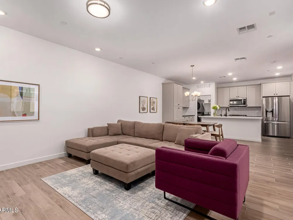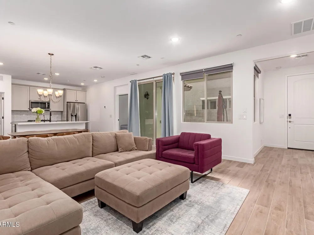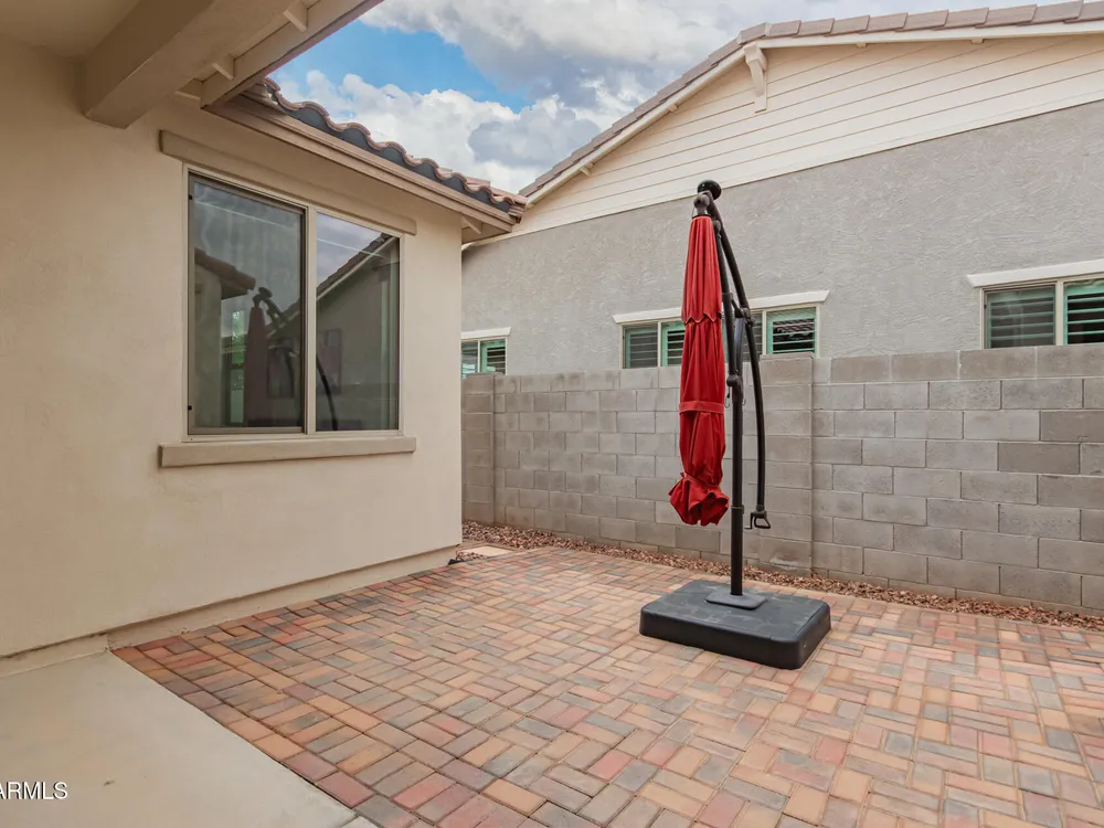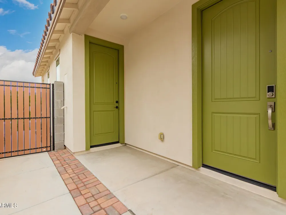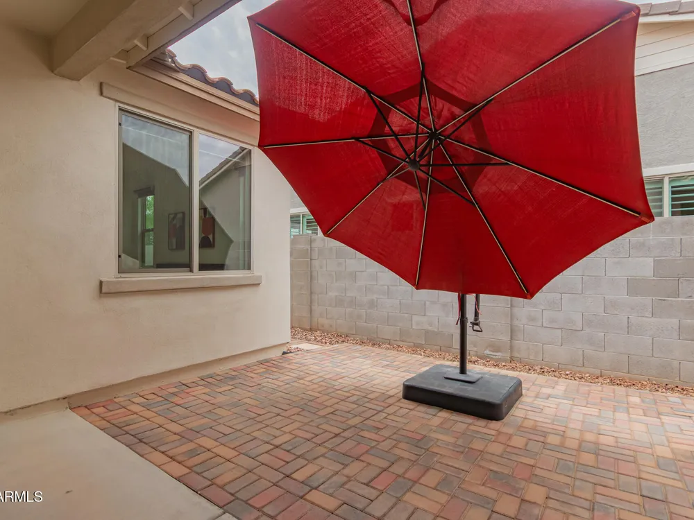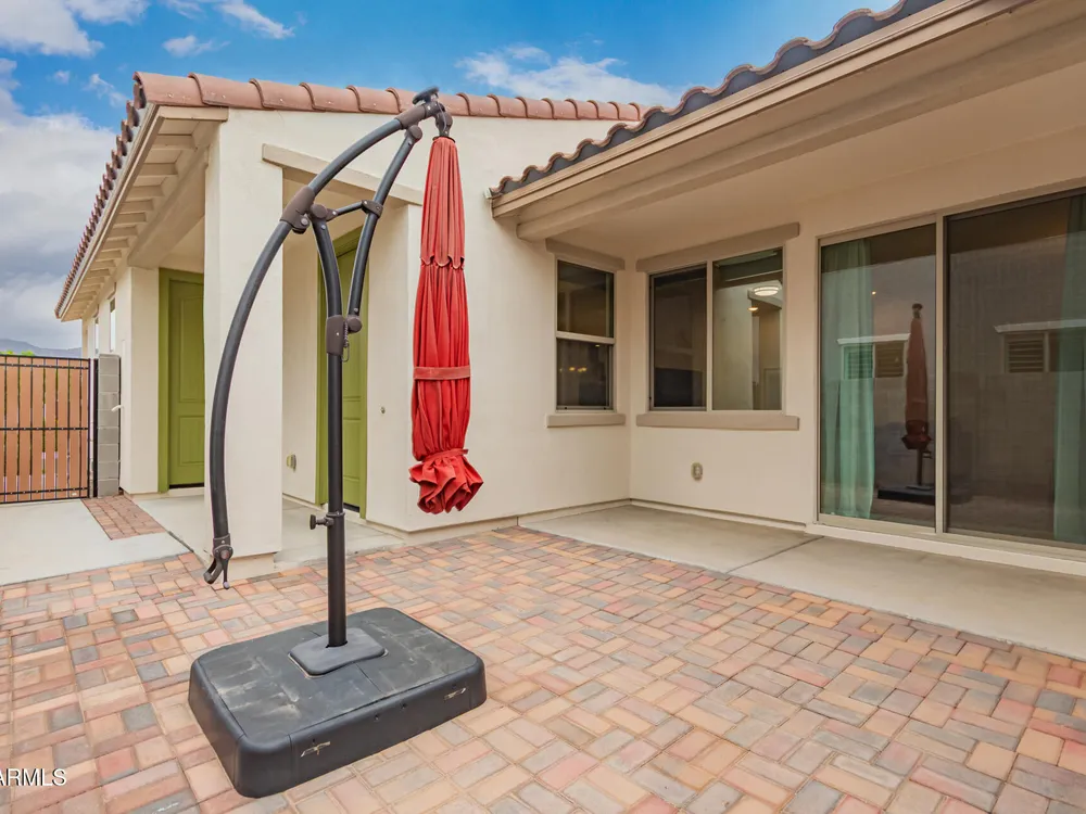 BEAUTIFUL 2 BEDROOM 2.5 BATH TOWNHOME IN VICTORY AT VERRADO! Looking for easy maintenance and resort style living? Look no further! This newer Twin Home built in 2022 boasts a Guest Suite with separate entrance, open concept Kitchen/Great Room, high ceilings, quartz countertops, tile backsplash, stainless steel appliances, plank tile flooring, water softener and R/O system with lifetime warranty, automated shades, Smart Home features, walk-in showers, tankless water heater, and a private, gated courtyard with paver patio. Amazing location in sought-after Verrado, with amenities such as the Victory Club (4 pools, tennis, pickleball, fitness center, spa, restaurant, art studio, etc). Fridge, washer/dryer, & patio umbrella included! Furniture available on a separate bill of sale. Must see!