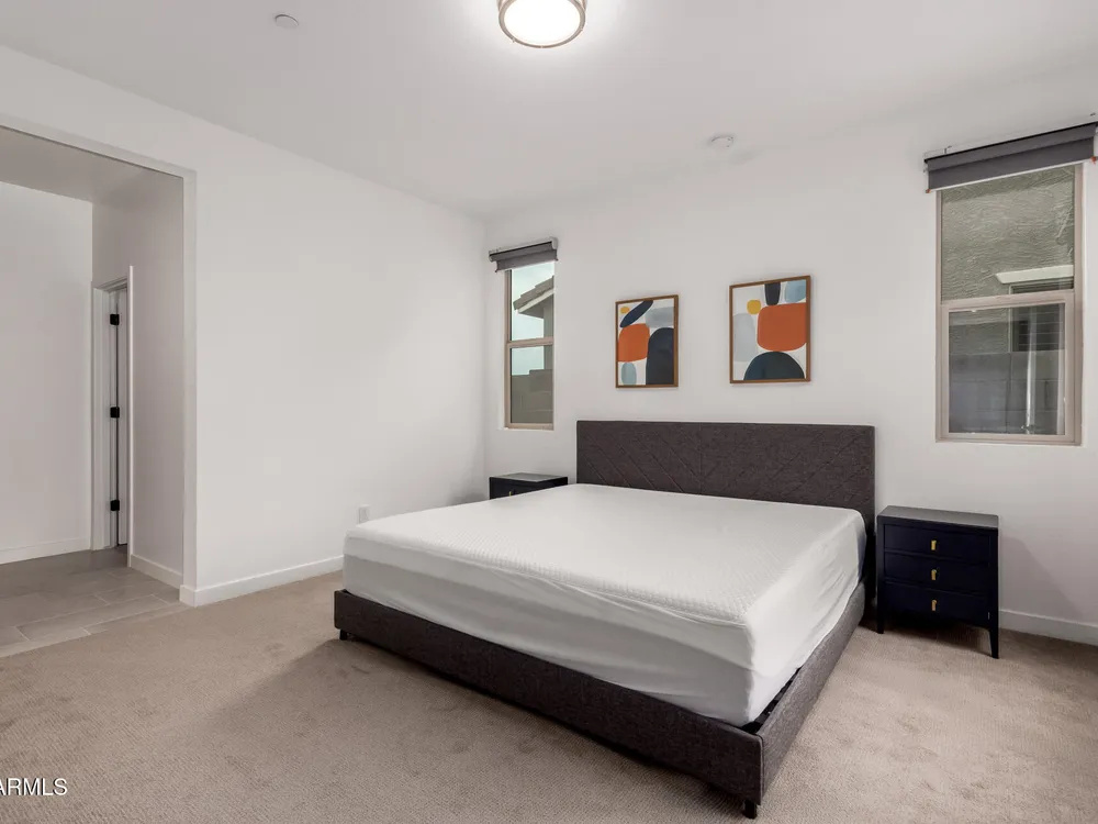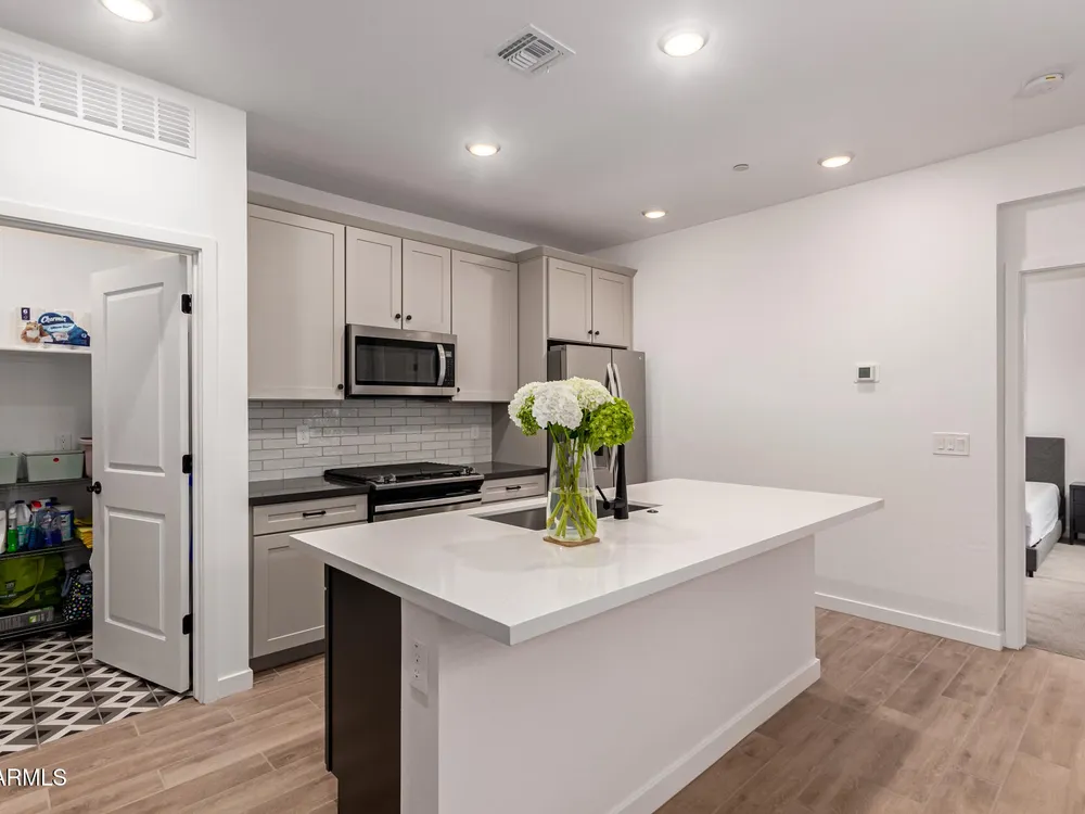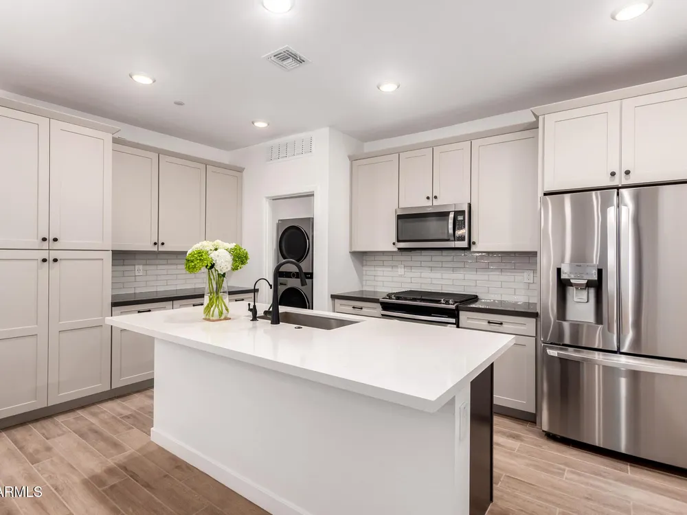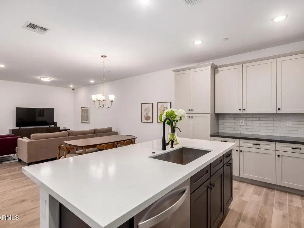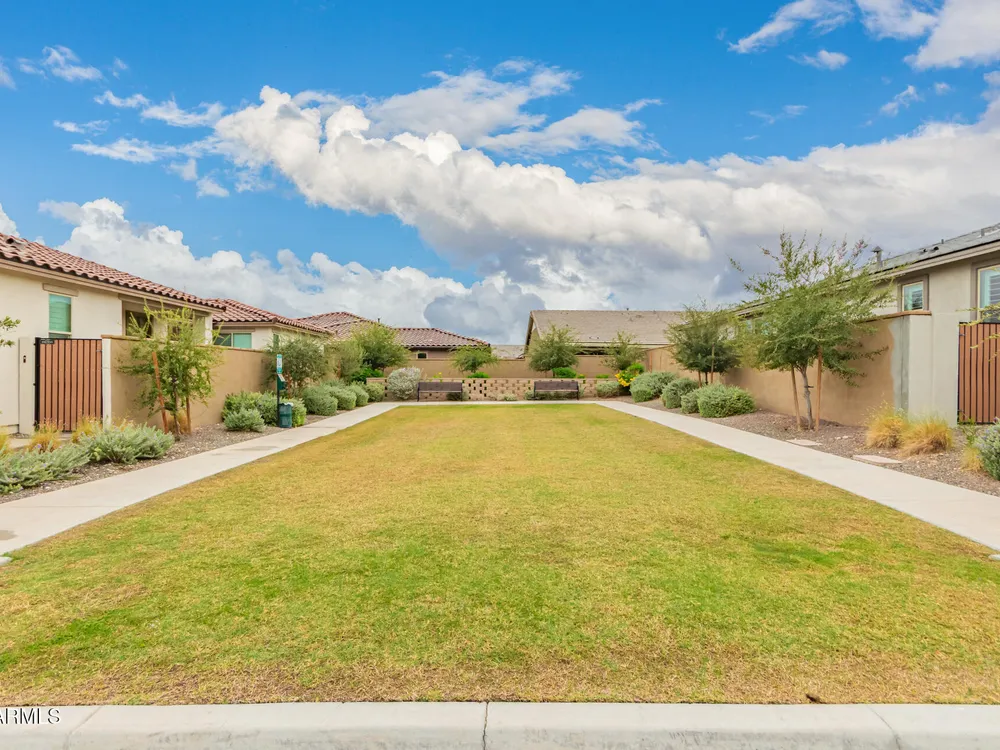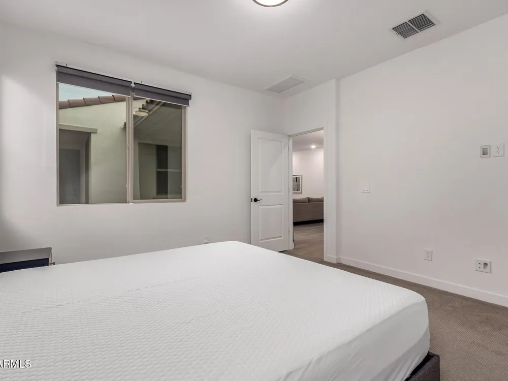 BEAUTIFUL 2 BEDROOM 2.5 BATH TOWNHOME IN VICTORY AT VERRADO! Looking for easy maintenance and resort style living? Look no further! This newer Twin Home built in 2022 boasts a Guest Suite with separate entrance, open concept Kitchen/Great Room, high ceilings, quartz countertops, tile backsplash, stainless steel appliances, plank tile flooring, water softener and R/O system with lifetime warranty, automated shades, Smart Home features, walk-in showers, tankless water heater, and a private, gated courtyard with paver patio. Amazing location in sought-after Verrado, with amenities such as the Victory Club (4 pools, tennis, pickleball, fitness center, spa, restaurant, art studio, etc). Fridge, washer/dryer, & patio umbrella included! Furniture available on a separate bill of sale. Must see!