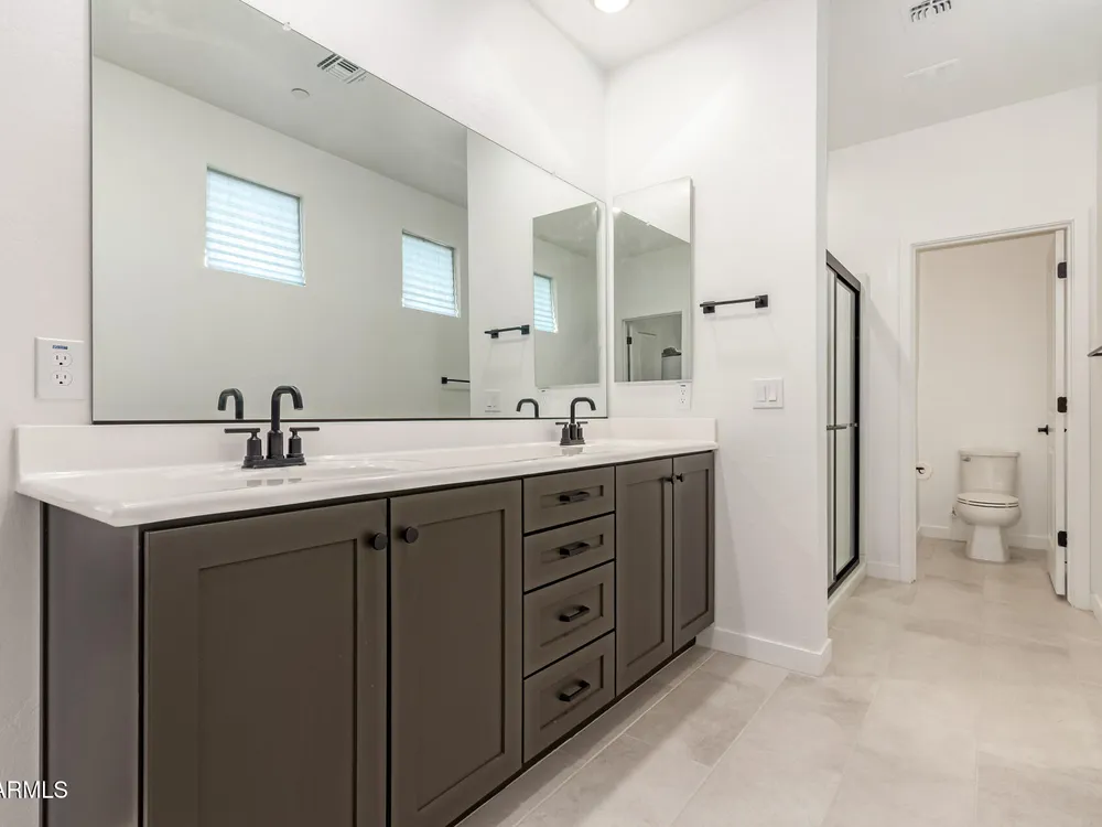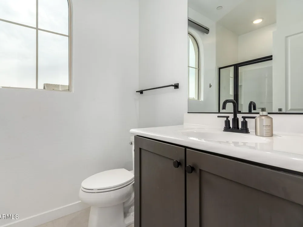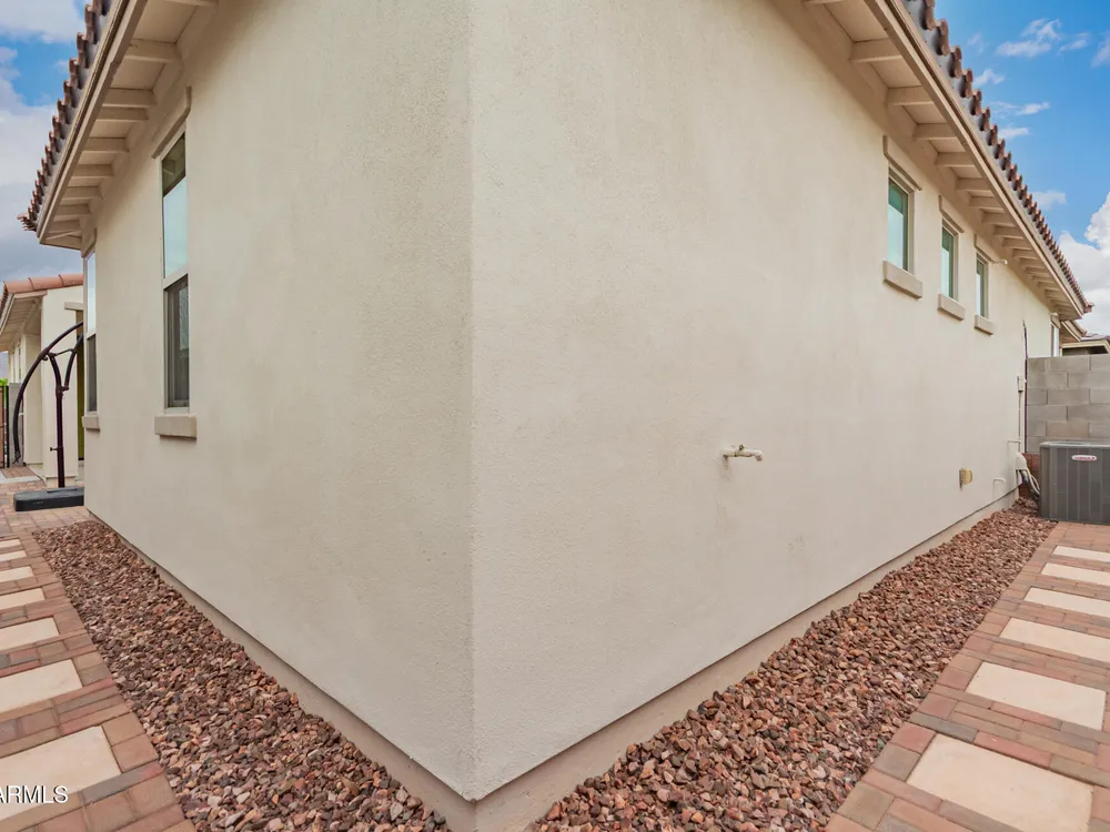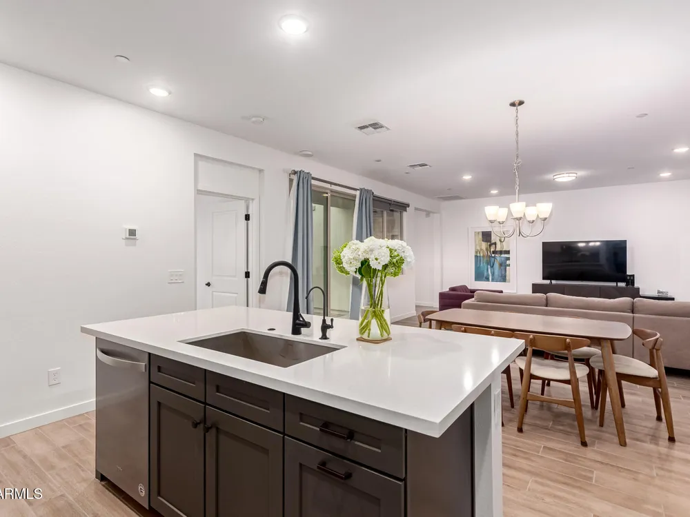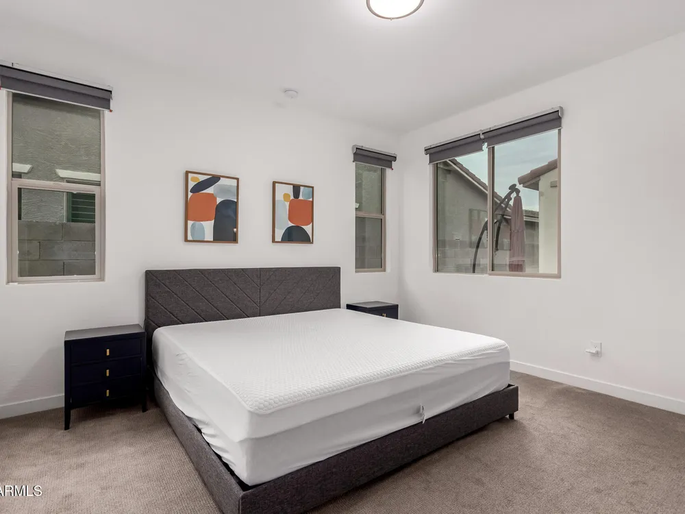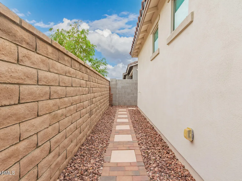BEAUTIFUL 2 BEDROOM 2.5 BATH TOWNHOME IN VICTORY AT VERRADO! Looking for easy maintenance and resort style living? Look no further! This newer Twin Home built in 2022 boasts a Guest Suite with separate entrance, open concept Kitchen/Great Room, high ceilings, quartz countertops, tile backsplash, stainless steel appliances, plank tile flooring, water softener and R/O system with lifetime warranty, automated shades, Smart Home features, walk-in showers, tankless water heater, and a private, gated courtyard with paver patio. Amazing location in sought-after Verrado, with amenities such as the Victory Club (4 pools, tennis, pickleball, fitness center, spa, restaurant, art studio, etc). Fridge, washer/dryer, & patio umbrella included! Furniture available on a separate bill of sale. Must see!