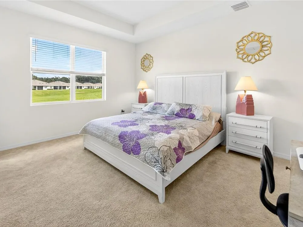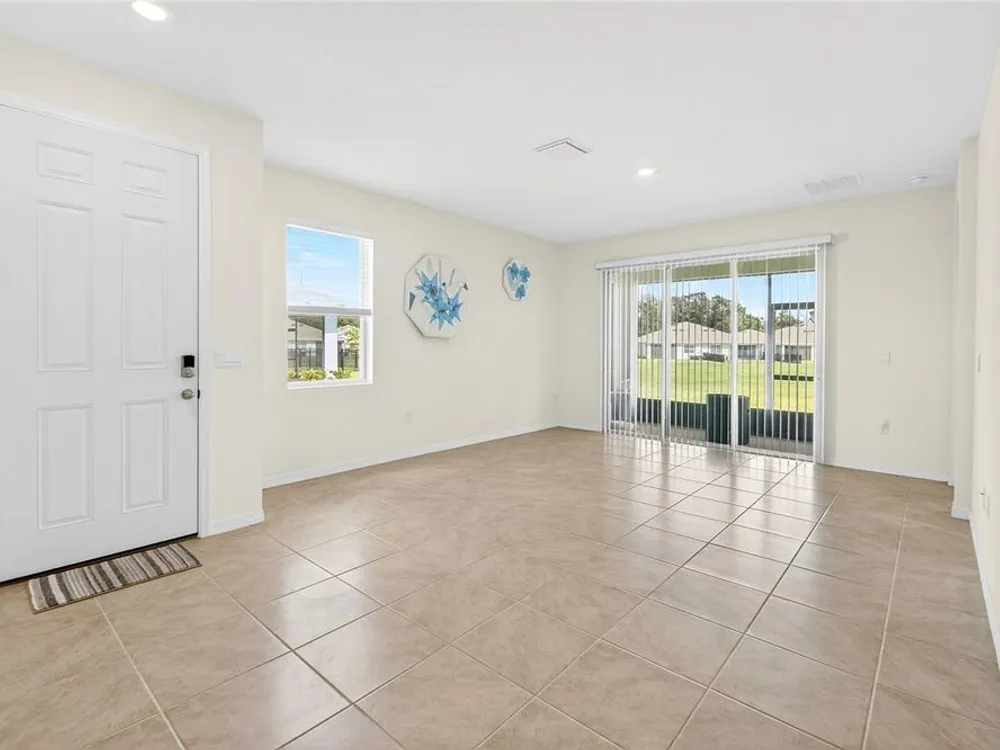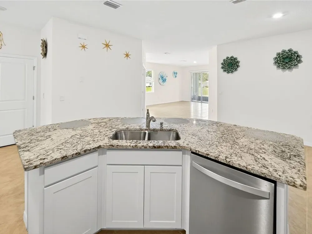 Ocala's Finest Resort-Style Living! Welcome to Ocala Preserve an exclusive, guard and gated community with loads of amenities for those who prefer finer things in life! This Siesta model by DR Horton features maintenance free living (lawn care and exterior maintenance included). Custom paver driveway and sidewalk lead to the end unit with side entry front door, open floor with spacious living room with high ceilings and triple sliding door to screened in lanai., this area leads to primary bedroom with tray ceilings in the far left back of home and primary bath with double vanities, granite countertops and tile surround with solid glass door shower with grab bars and walk in closet. Stepping back across the home you are greeted with dining area and large inviting kitchen with spacious island with room for 4 - 6 bar stools and sink. Granite countertops and stainless steel appliances as well as walk in pantry. The 3rd bedroom/office/den is off of kitchen and would also make a great hobby room with french doors. Heading towards front of home is the laundry closet, 2nd bedroom that shares the 2nd bath with the guests. The garage is a 2 car with garage door opener and is home to the 2023 hot water heater and 2023 Hvac system in ceiling as a space saver, 2023 architectural roof. Enjoy a private oasis with access to Walking/Hiking/Bike Trails, Tennis and Pickleball Courts, Resort Style Pool, On-Site Restaurant, Athletic Center, The Golf Club, Clubhouse, Day Spa and Dog Park. Relax on a kayak and watch the sunrise over our beautiful lake. Unwind at the end of your day with a glass of wine on the expansive Veranda, or enjoy a Chef inspired meal at Salt and Brick restaurant. All very close to the world equestrian center, hits and rainbow springs!