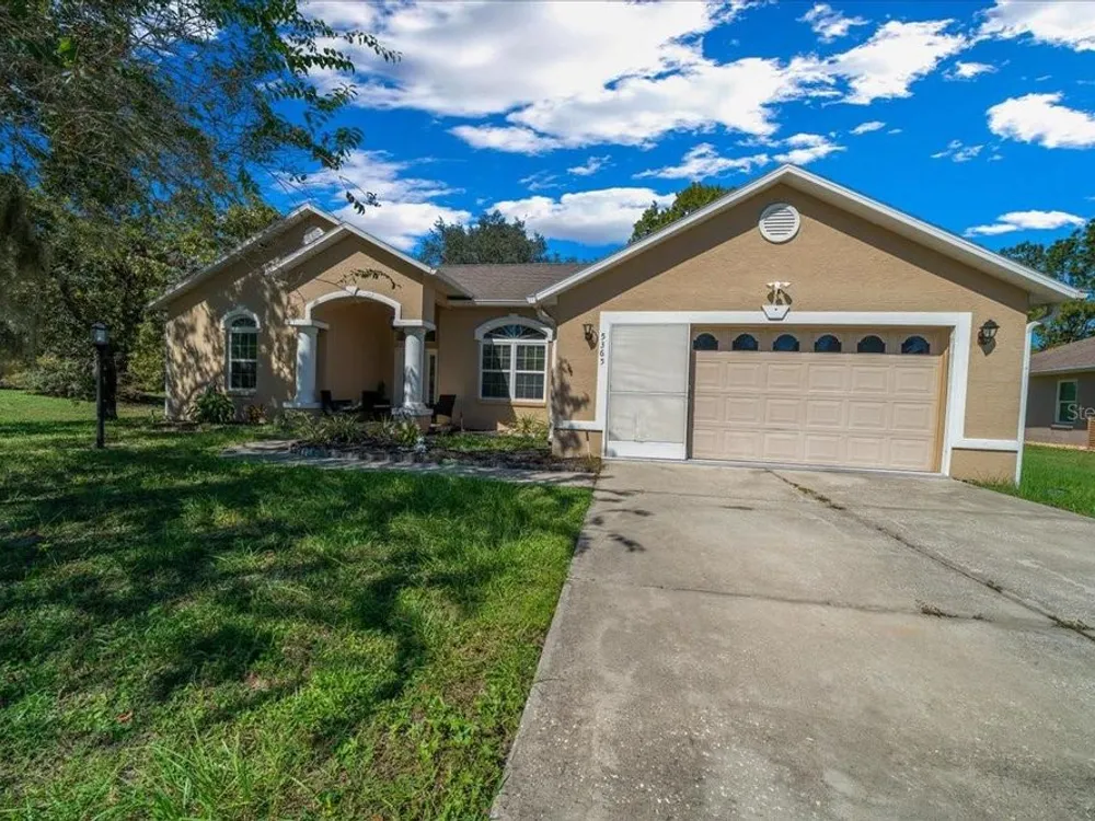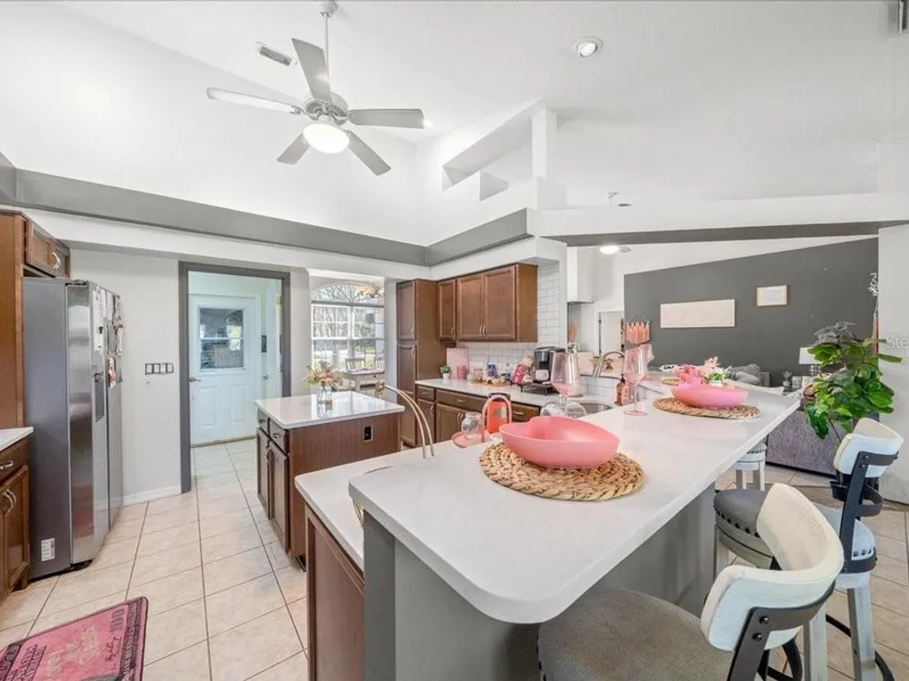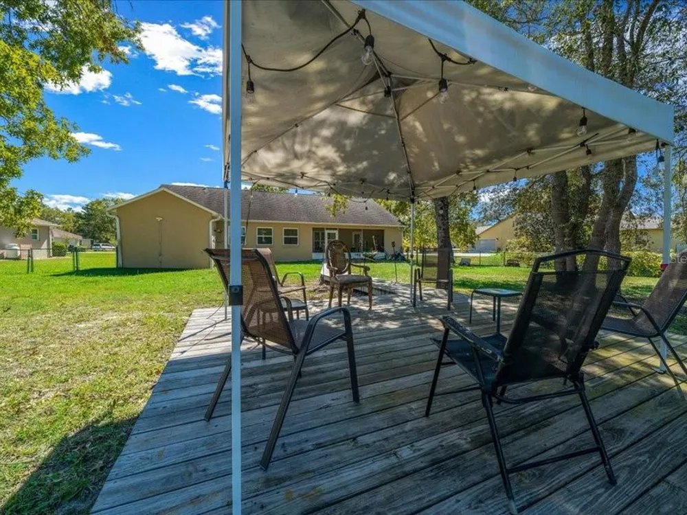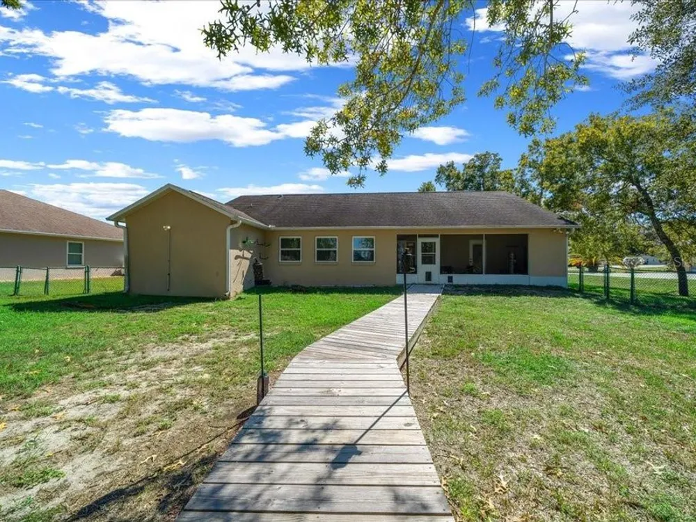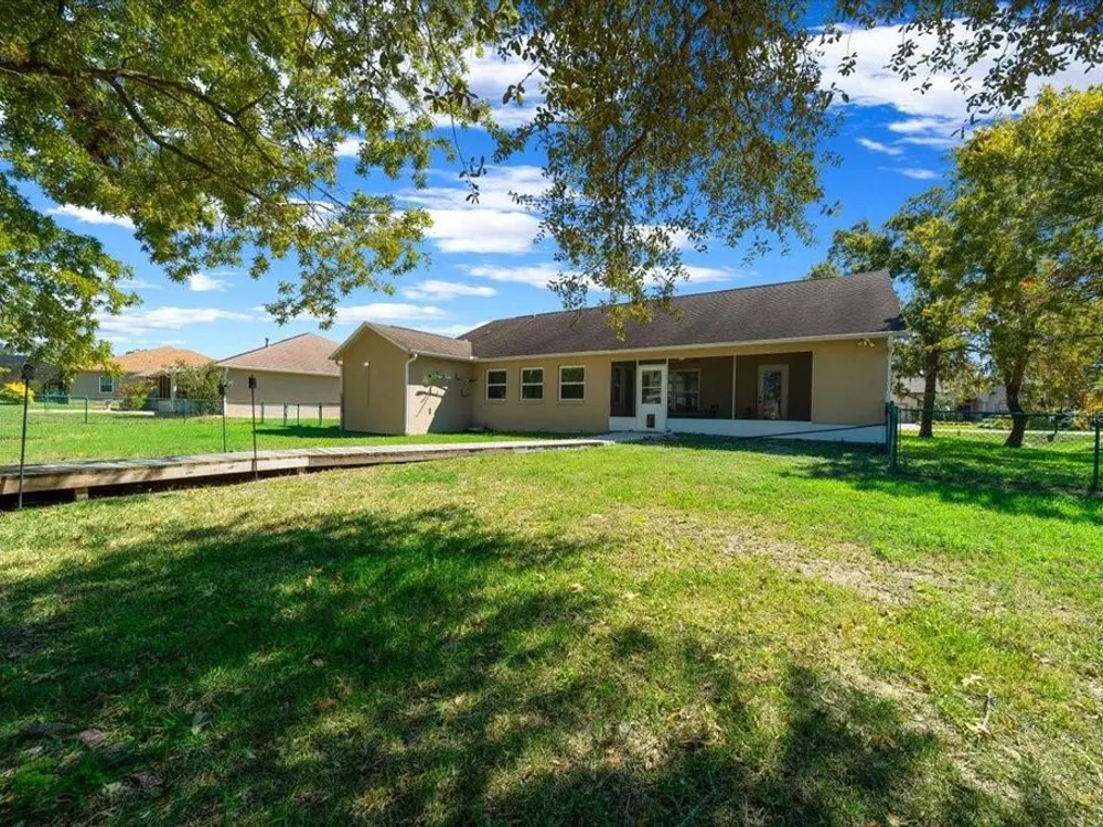 Welcome to 5365 SW 111th Lane Rd in Ocala, FL, a 3-bedroom, 2-bathroom home located in the desirable Marco Polo Village II community. Built in 2003, this home offers just under 1,900 square feet of comfortable living space on nearly half an acre. From the moment you walk in, you’ll notice the bright and open layout featuring cathedral ceilings and plenty of natural light. The spacious living area flows seamlessly into the large eat-in kitchen, which offers ample cabinet space, a breakfast nook, and room for entertaining family and friends. The split-bedroom floor plan provides privacy for the primary suite, complete with dual vanities, a soaking tub, a separate shower, and private access to the screened-in porch — the perfect spot to relax and enjoy your morning coffee. The home also features tile and laminate flooring throughout, an indoor laundry room, and a roomy two-car garage for added convenience. Outside, you’ll find a large, fenced backyard with plenty of space for pets, gardening, or simply enjoying Florida’s beautiful weather. The backyard also includes a deck, perfect for gatherings, barbecues, or outdoor entertaining. The screened porch overlooks the backyard and offers a peaceful place to unwind. With low HOA fees, this property provides a relaxed lifestyle while still being close to shopping, restaurants, I-75, and outdoor recreation like the Florida Greenway trails. This Ocala gem truly combines comfort, value, and location — making it the perfect place to call home. Schedule your private showing today!