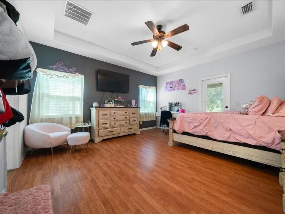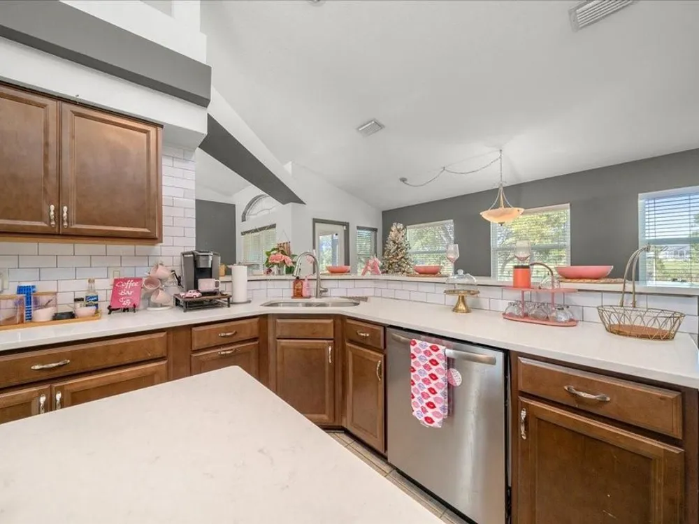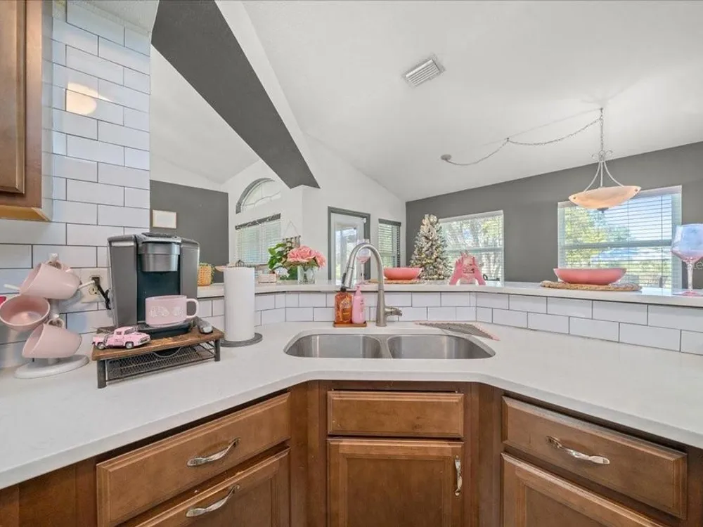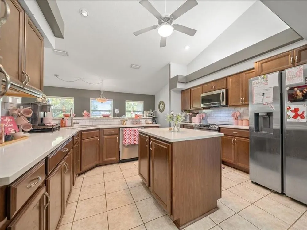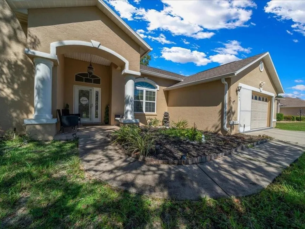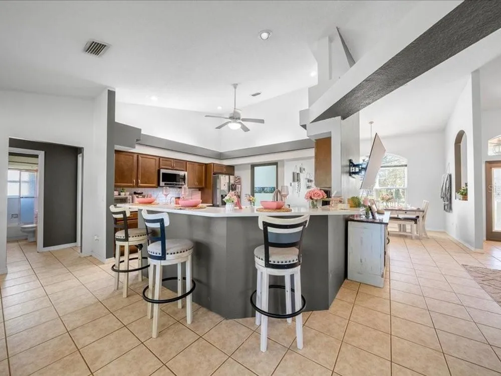 Welcome to 5365 SW 111th Lane Rd in Ocala, FL, a 3-bedroom, 2-bathroom home located in the desirable Marco Polo Village II community. Built in 2003, this home offers just under 1,900 square feet of comfortable living space on nearly half an acre. From the moment you walk in, you’ll notice the bright and open layout featuring cathedral ceilings and plenty of natural light. The spacious living area flows seamlessly into the large eat-in kitchen, which offers ample cabinet space, a breakfast nook, and room for entertaining family and friends. The split-bedroom floor plan provides privacy for the primary suite, complete with dual vanities, a soaking tub, a separate shower, and private access to the screened-in porch — the perfect spot to relax and enjoy your morning coffee. The home also features tile and laminate flooring throughout, an indoor laundry room, and a roomy two-car garage for added convenience. Outside, you’ll find a large, fenced backyard with plenty of space for pets, gardening, or simply enjoying Florida’s beautiful weather. The backyard also includes a deck, perfect for gatherings, barbecues, or outdoor entertaining. The screened porch overlooks the backyard and offers a peaceful place to unwind. With low HOA fees, this property provides a relaxed lifestyle while still being close to shopping, restaurants, I-75, and outdoor recreation like the Florida Greenway trails. This Ocala gem truly combines comfort, value, and location — making it the perfect place to call home. Schedule your private showing today!