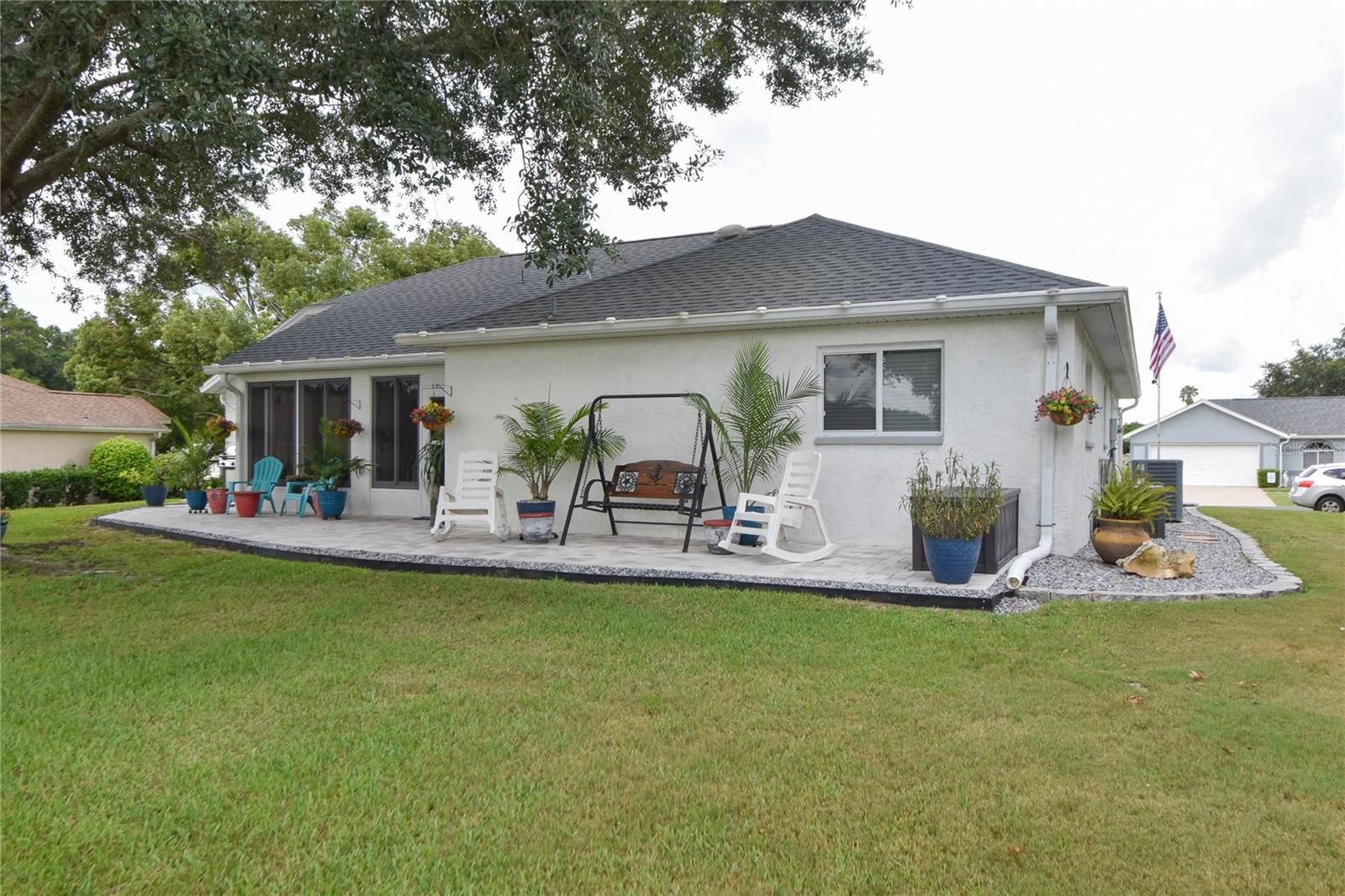 MILLION DOLLAR UNOBSTRUCTED VIEW DOWN THE FAIRWAY!!! This beautiful house has been recently remodeled with new landscaping and with grey stones. There are three windows in the living room for plenty of light and the living room has a cathedral ceiling and ceiling fan with a light. The dining room is off of the living room and has a great views of the kitchen and Florida room. The kitchen has plenty of counterspace and has a view of the Family and Florida rooms. The Family room has a ceiling fan with light and has sliding glass door leading to the Florida room. The Master bedroom has a tray ceiling and has two separate closets. The Master bathroom has a walk-in shower, soaking tub and a double sink vanity with plenty of storage. The guest bedroom has a full-length closet, tray ceiling and a fan with a light. The guest bathroom has a walk-in shower and single sink vanity with storage. There is a large closet between the 2nd bedroom and the guest bathroom. The Florida room has an outstanding view of the back yard with the unobstructed view of the golf course. This house is located on an over-sized lot. The oversized patio has a tile flooring surrounding it so you can enjoying the Million Dollar View! For more details on golf please visit: https://ocalapalmsgolf.com. View Community Amenities at: https://www.ocalapalmsresidents.com. All measurements are approximate. GREAT LOCATION: Close to Shopping across the Street at Publix, Walgreens Various Banks, Restaurants, Liquor Store, Gold's Gym, etc. 1 1/2 miles East of the World Equestrian Center. 1 1/2 Hours from Orlando and all the Attractions including Disney World, Universal Studios, Legoland, Sea World, Epcot, the Airport, etc. 1 1/2 Hours from Both Coasts. Ocala Palms offers a pristine golf course, indoor and outdoor pools, and fitness center. Embrace the vibrant lifestyle that Ocala Palms has to offer in this exceptional home.