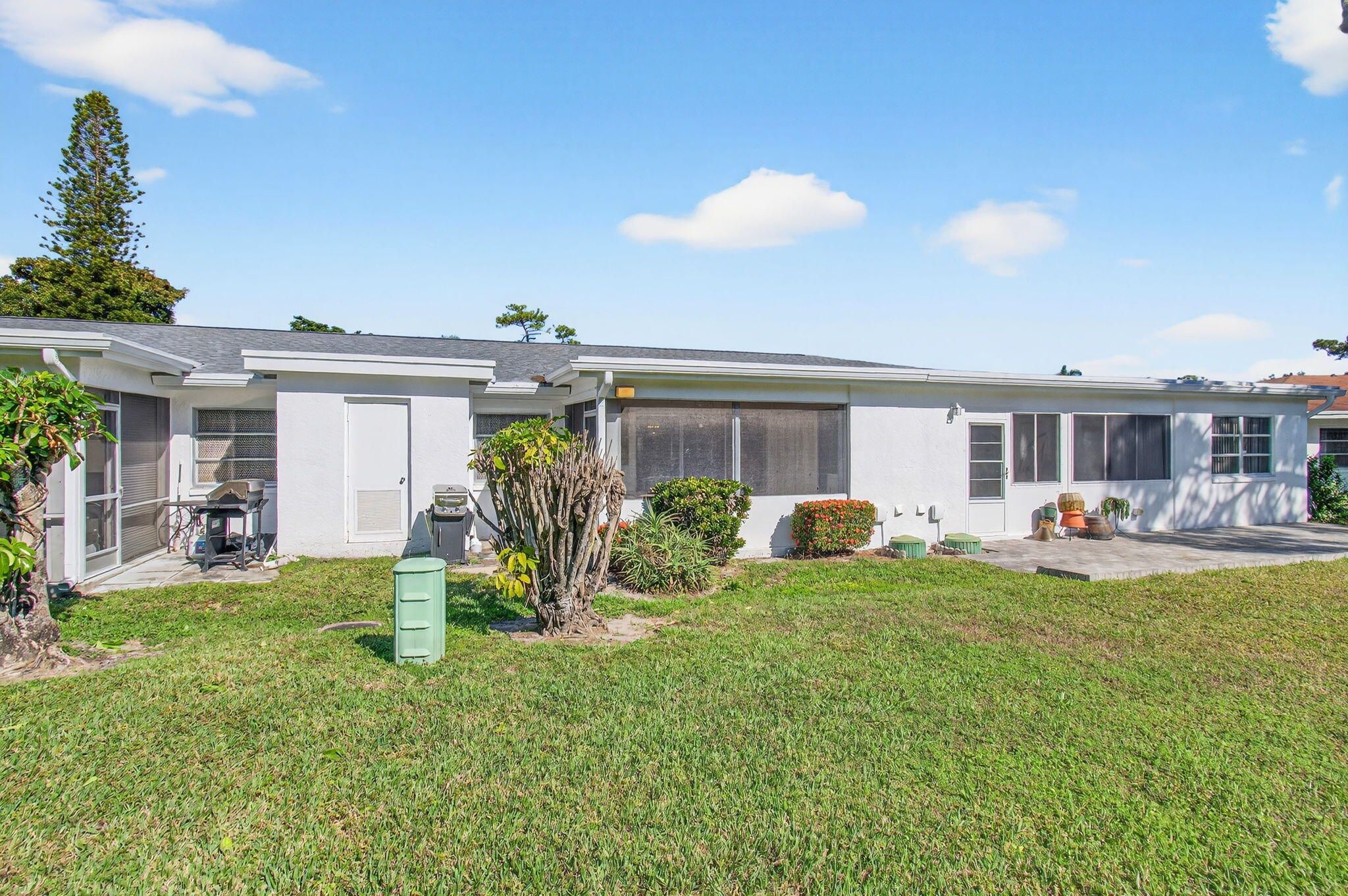 Welcome to this beautiful fully furnished 2-bedroom, 2-bath condo offering approximately 1050 square feet of comfortable living space,plus a covered patio overlooking a private,peaceful backyard—perfect for relaxing or entertaining.This inviting home features a washer and dryer inside the unit,a functional layout, and a wonderful sense of privacy rarely found.Enjoy the convenience of grills allowed, making outdoor gatherings easy and enjoyable.Bridgeview is a vibrant 55+ villa community offering fantastic amenities including a clubhouse,tennis,pickleball,and shuffleboard.The low-maintenance lifestyle includes roof coverage,water, building insurance,and lawn care—giving you more time to enjoy South Florida living.Whether you're seeking a full-time residence or a seasonal retreat this is it
